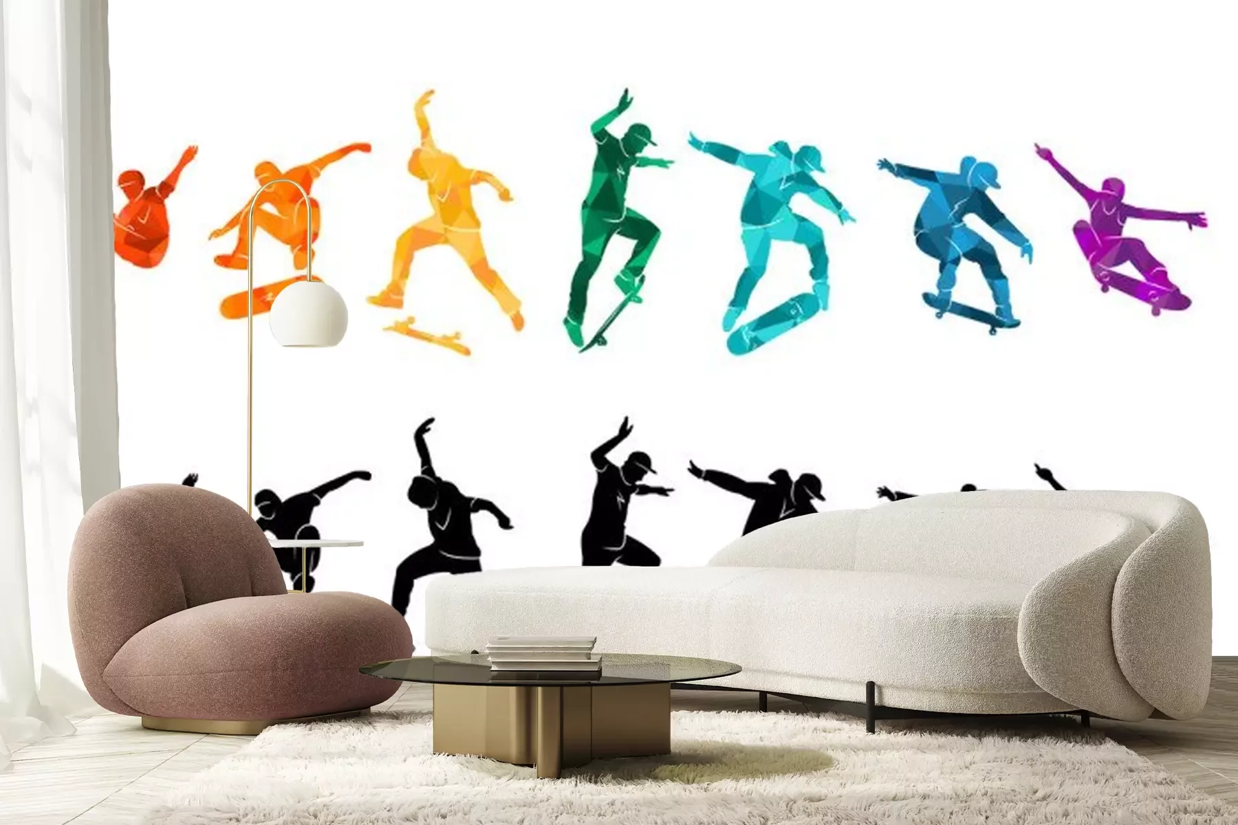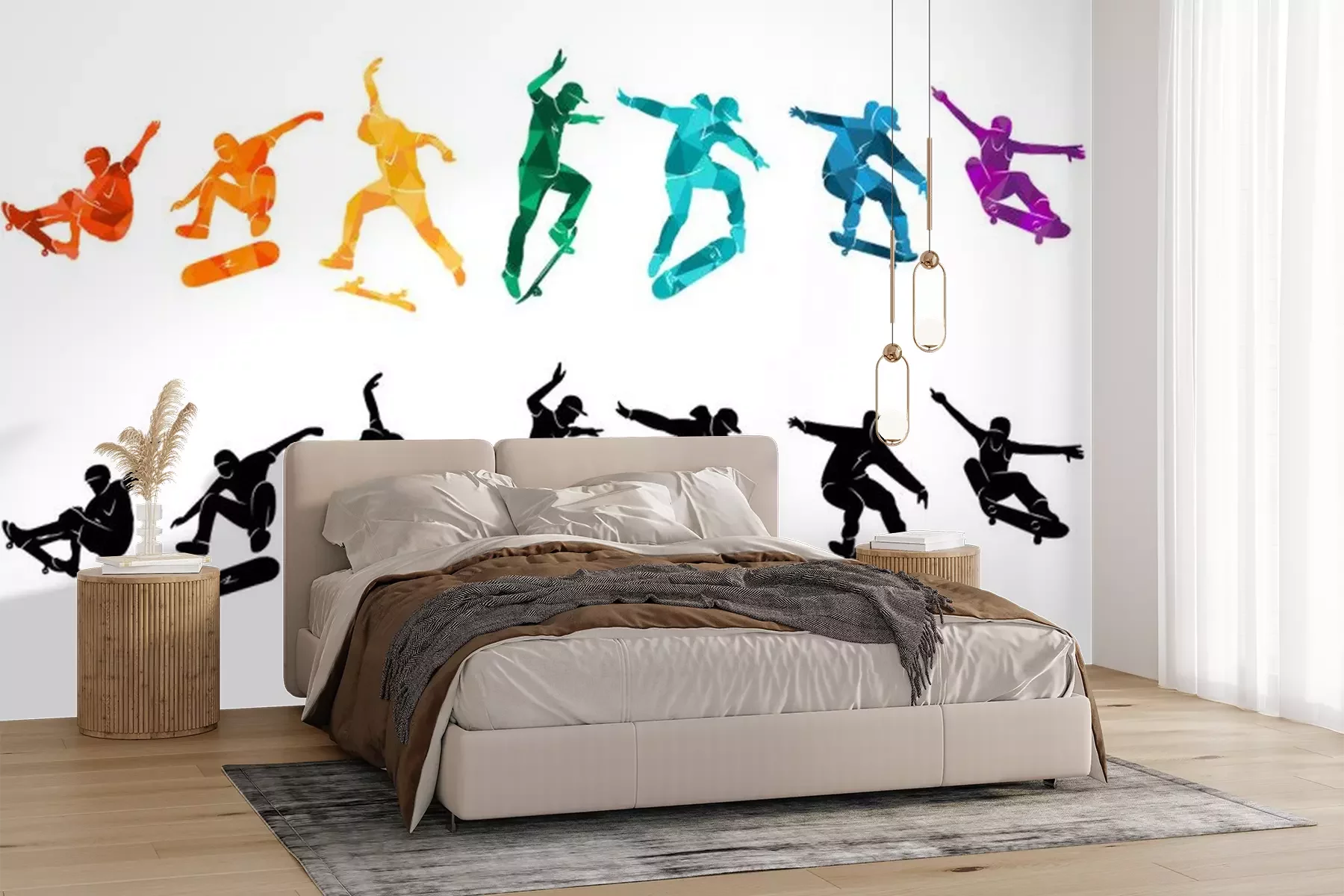 Sticker Skate people silhouettes skateboarders colorful vector illustration background extreme skateboard, skateboarding