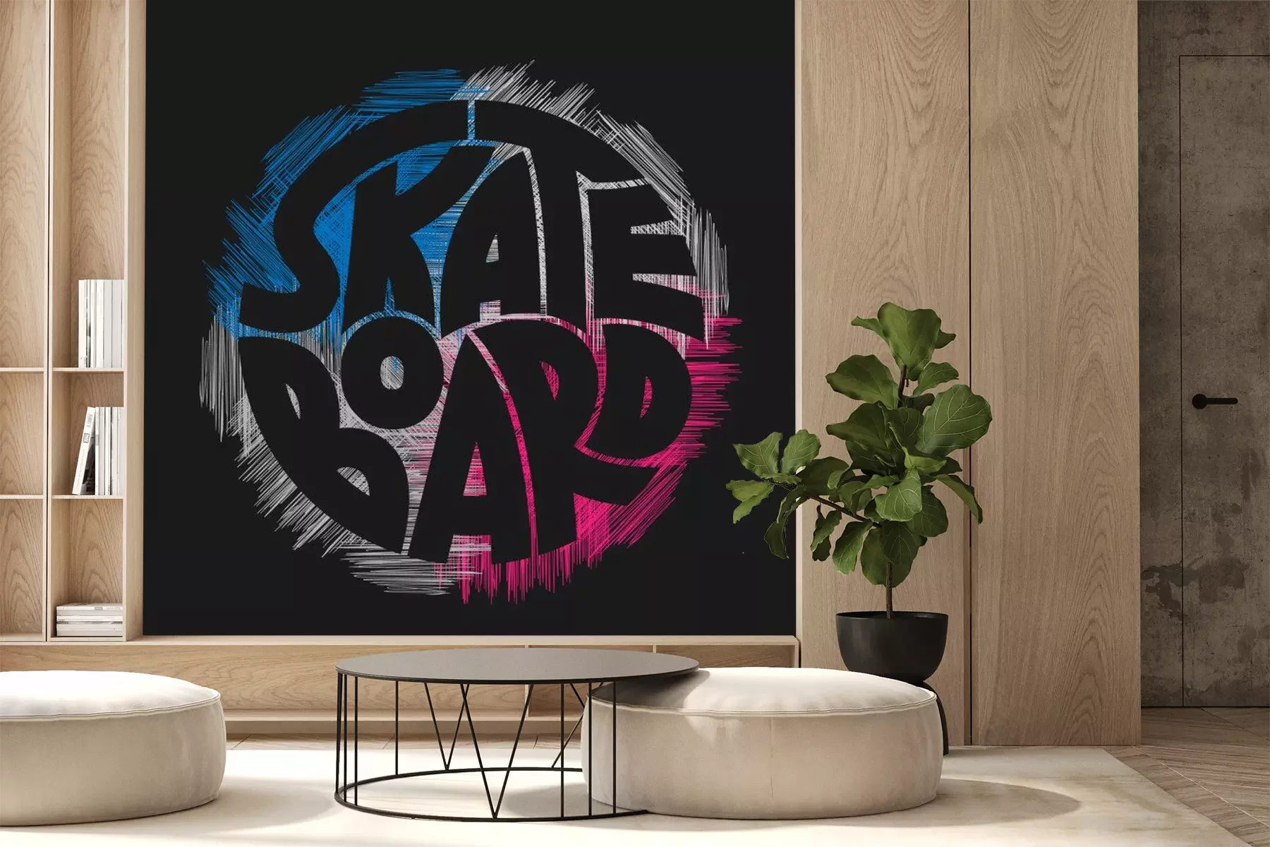 Sticker Skateboard typography graphics. Concept in grunge style for print production. T-shirt fashion Design.