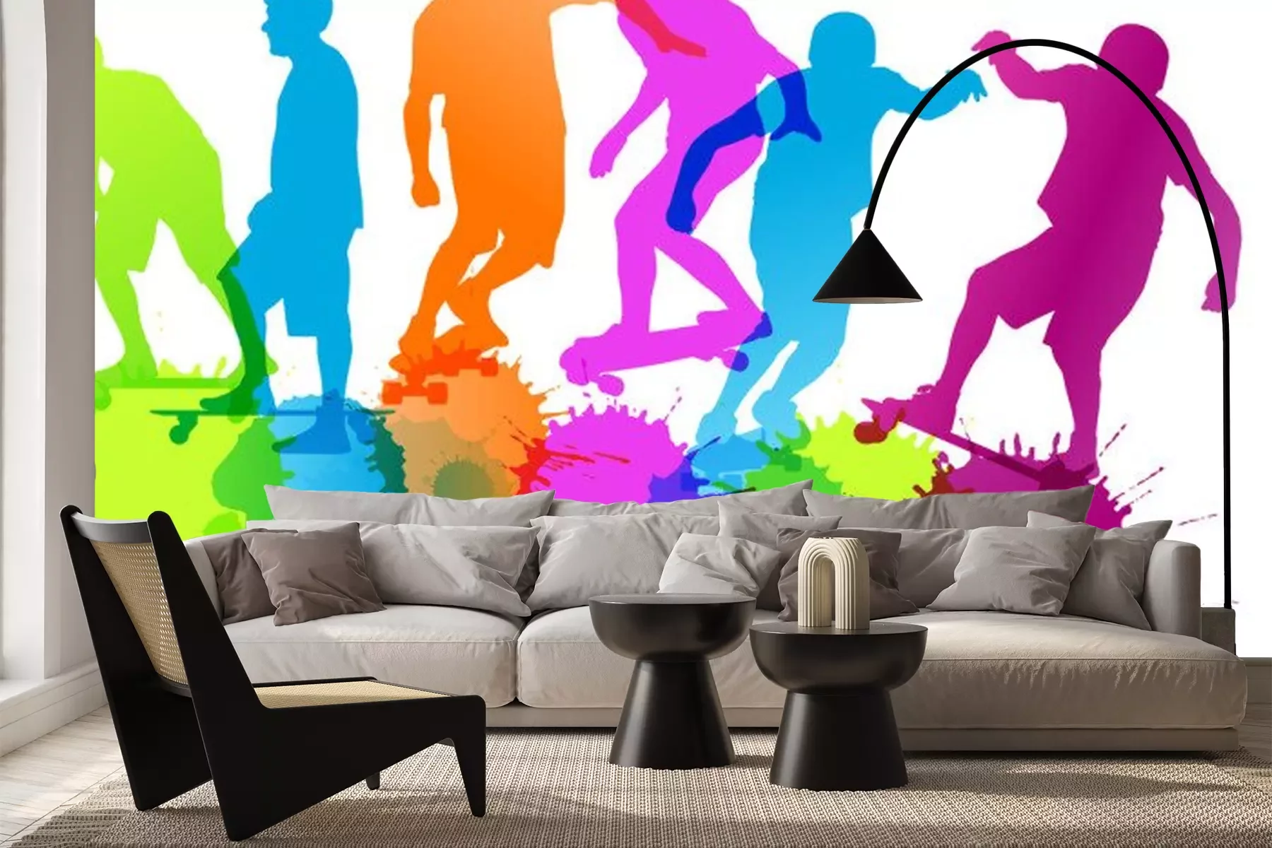 Sticker Skateboarder detaillierte Silhouetten Vektor Hintergrund Konzept wit