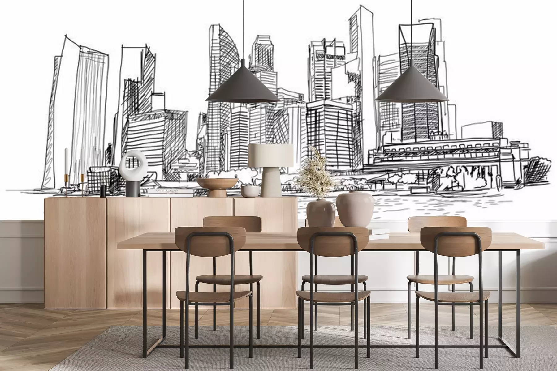 Sticker Skizze von Singapur Marina Bay im Vektor.