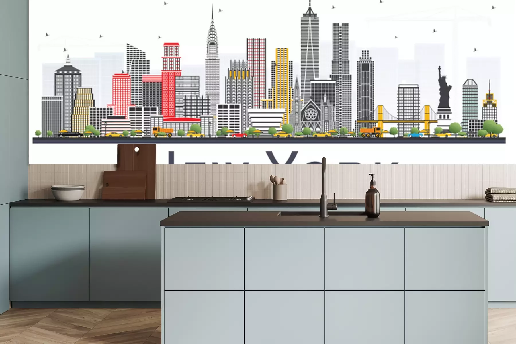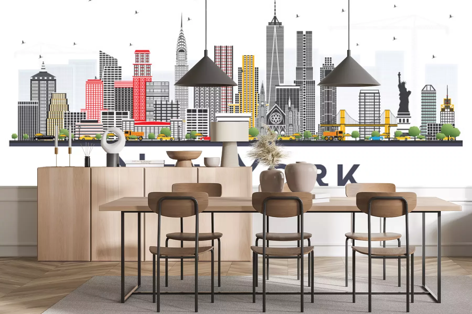 Sticker Skyline New York USA mit den grauen Wolkenkratzern lokalisiert auf weißem Hintergrund.