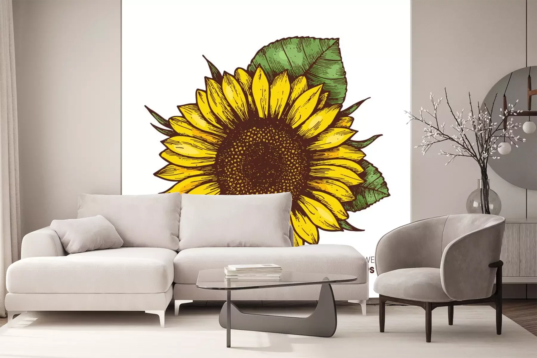 Sticker Sonnenblume auf einer Vintage-Zeichnung