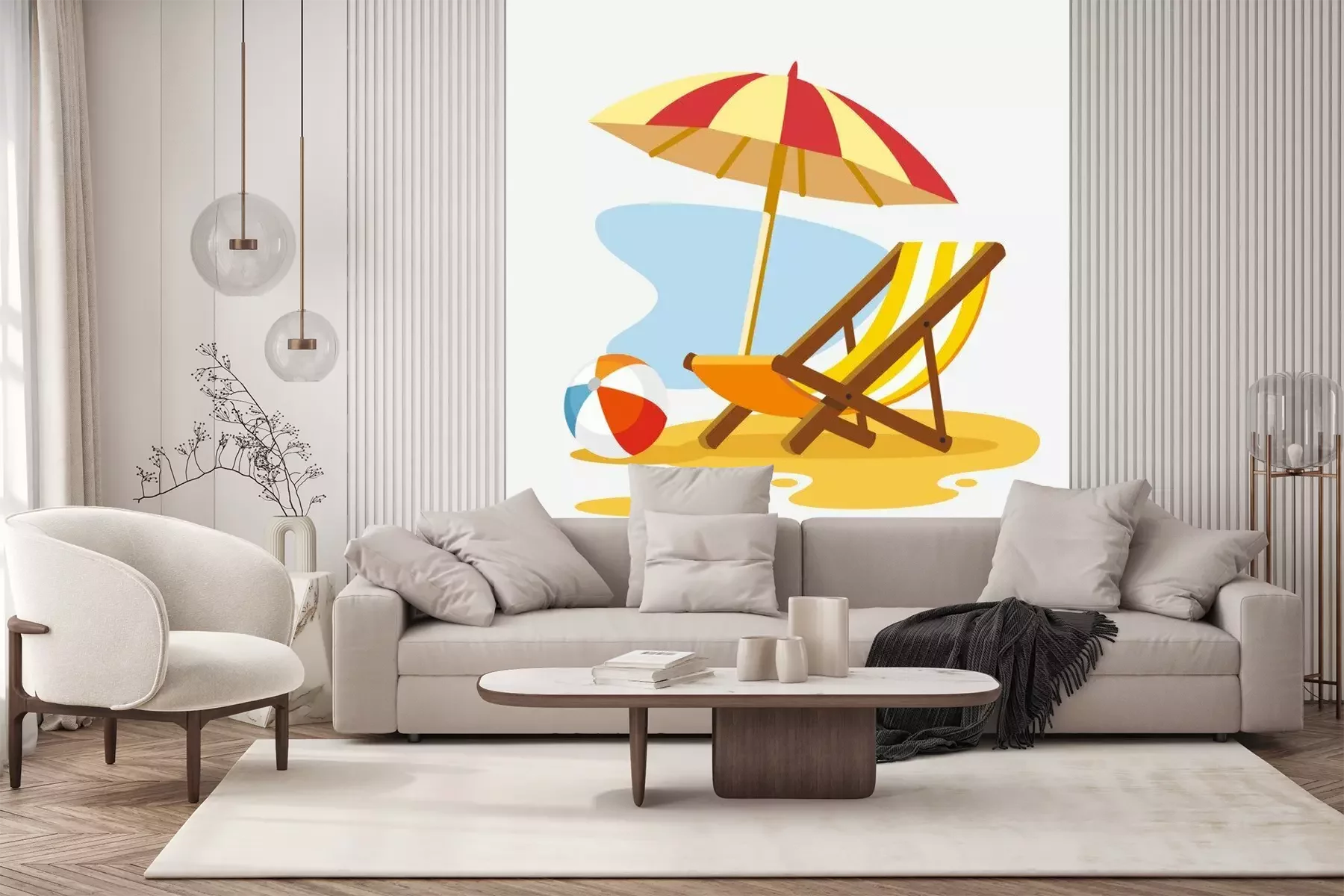 Sticker Sonnenschirm und Sonnenliege am Strand.