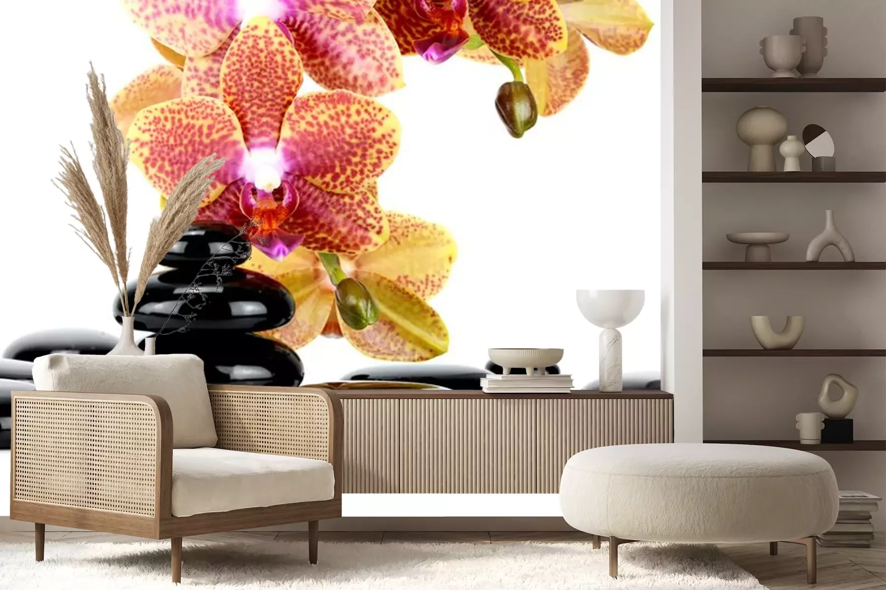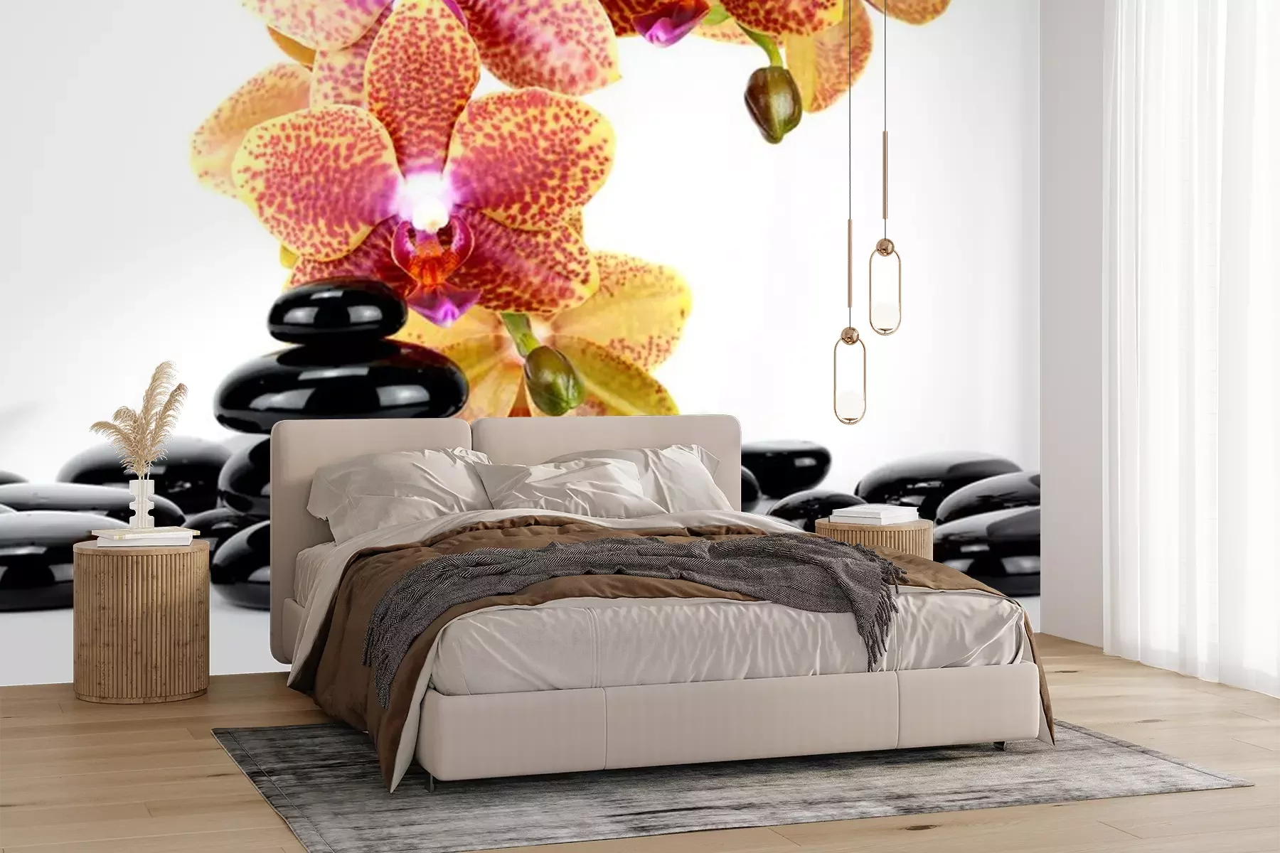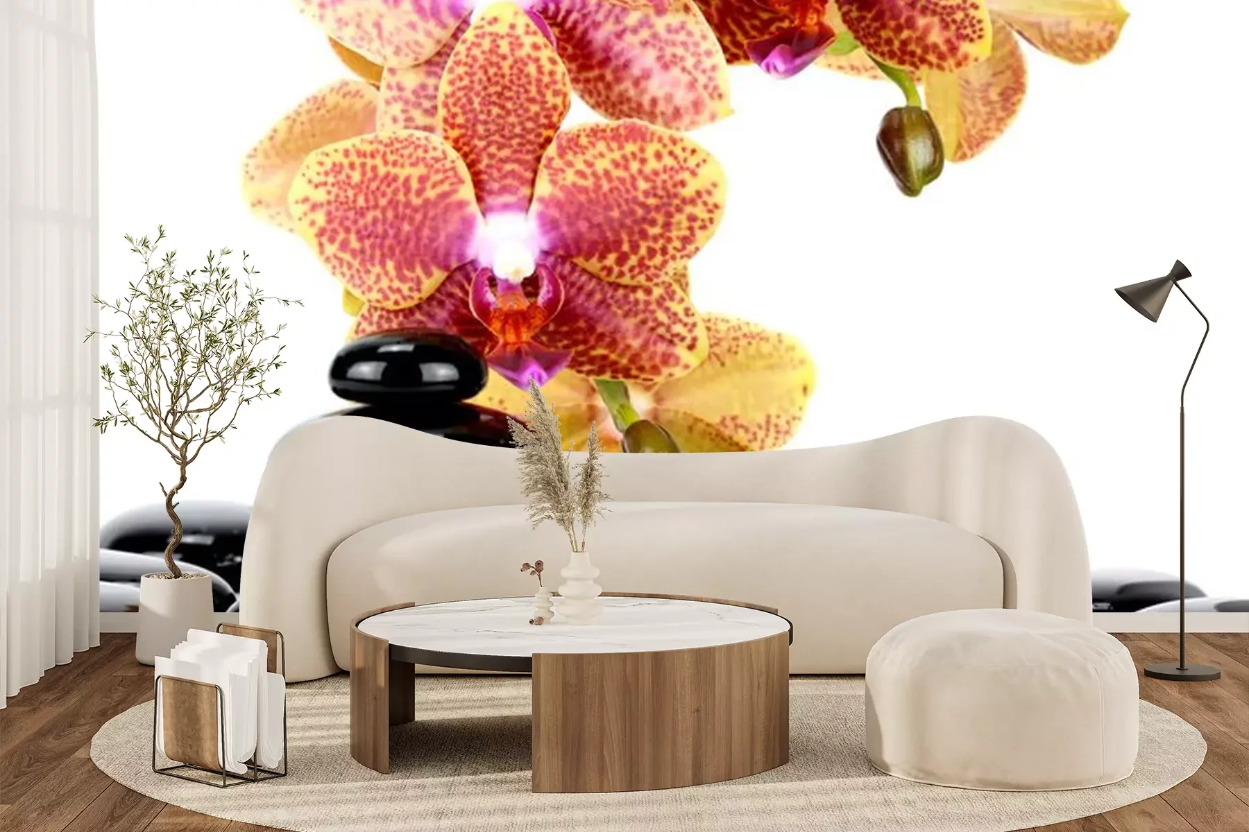 Sticker Spa Stones und Orchid Blumen auf weißem ...