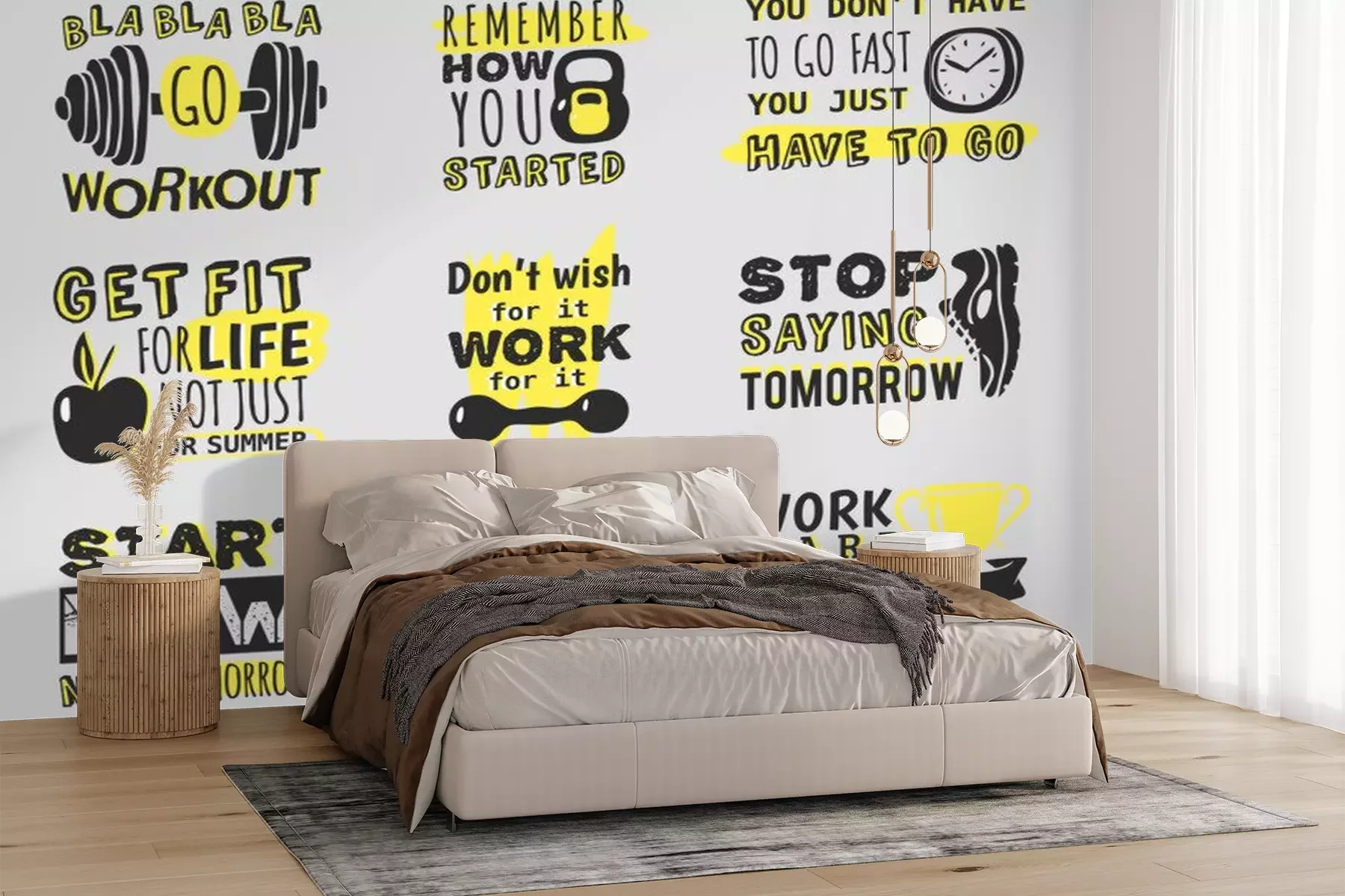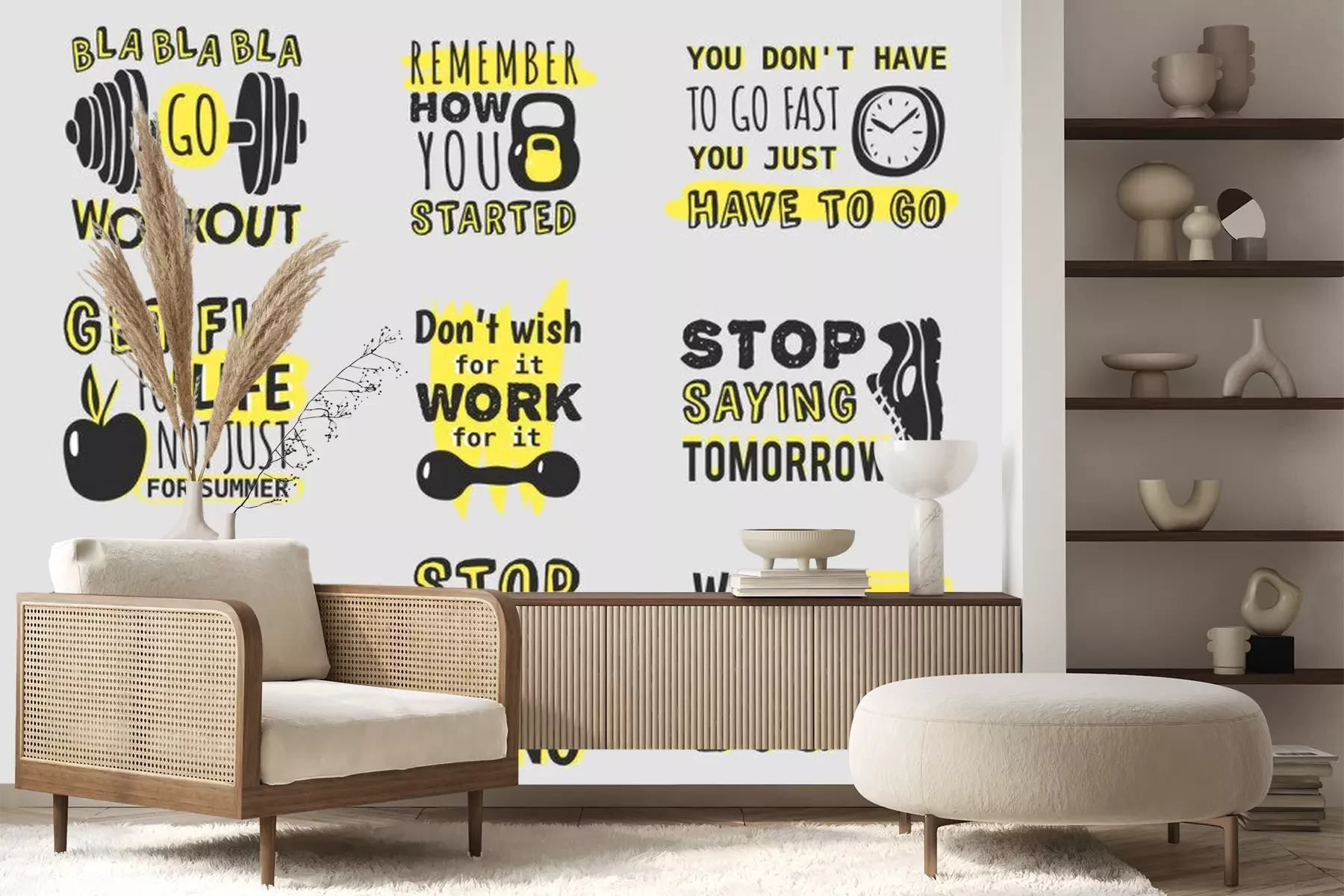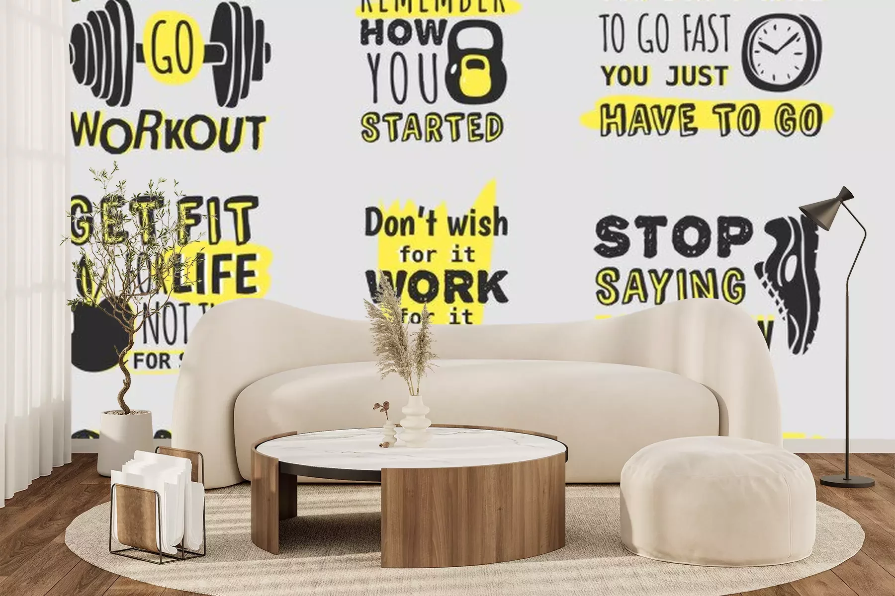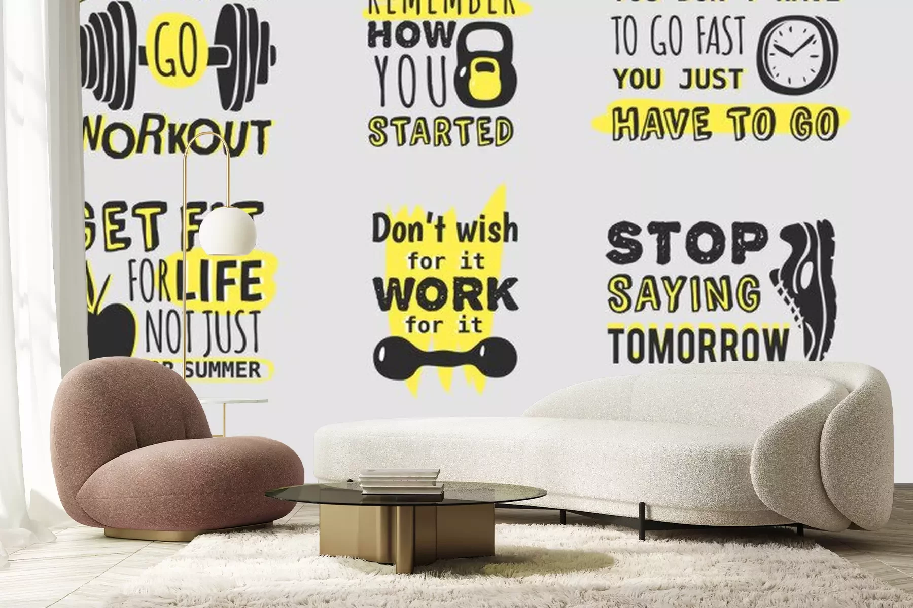 Sticker Sport motivational logo vector design hand drawn element banner gym crossfit trainings motivation text lettering illustration.