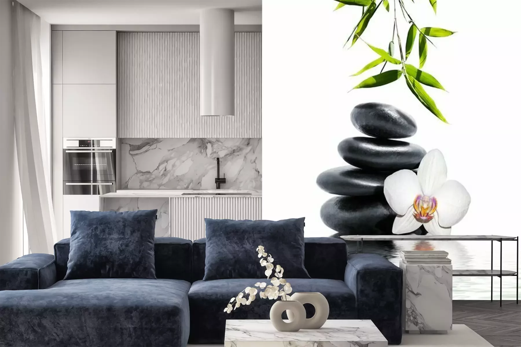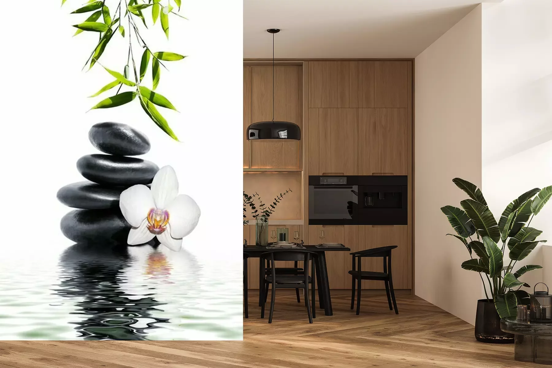 Komposition von Orchidee Steinen und BambusFototapete