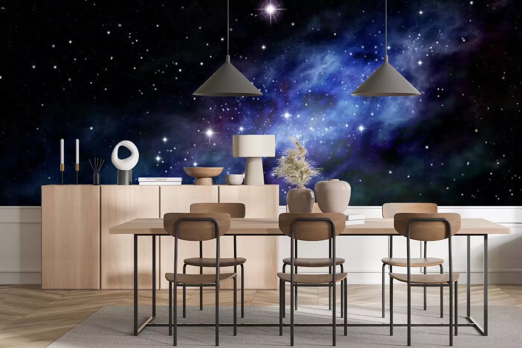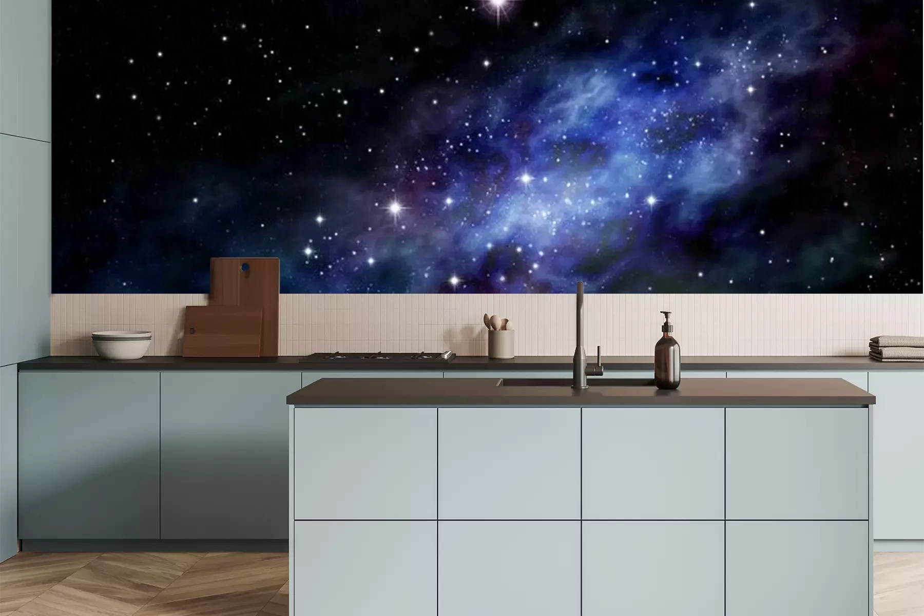 Dunkelblaue Galaxie mit SternenFototapete