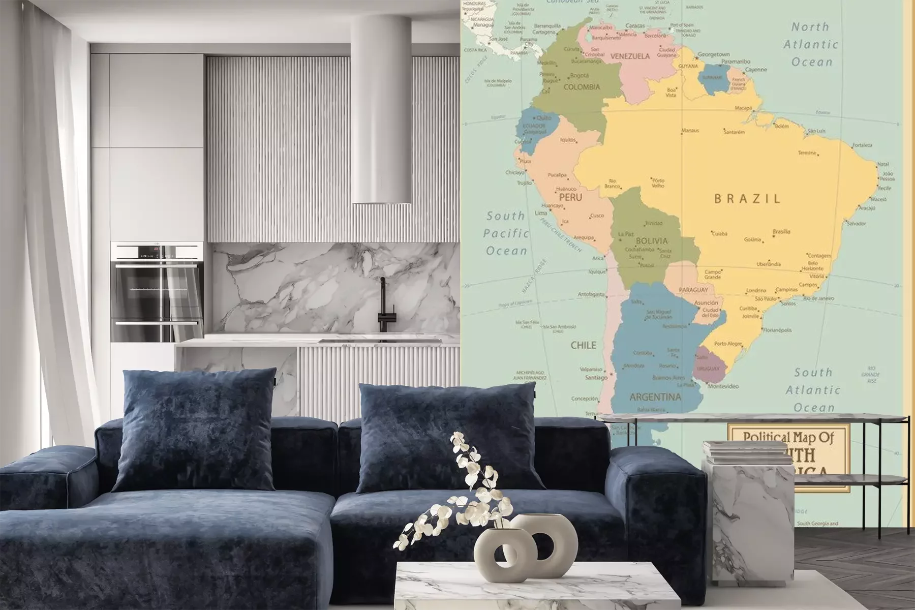 Sticker Südamerika-sehr detaillierte Karte. Verwendete Schichten