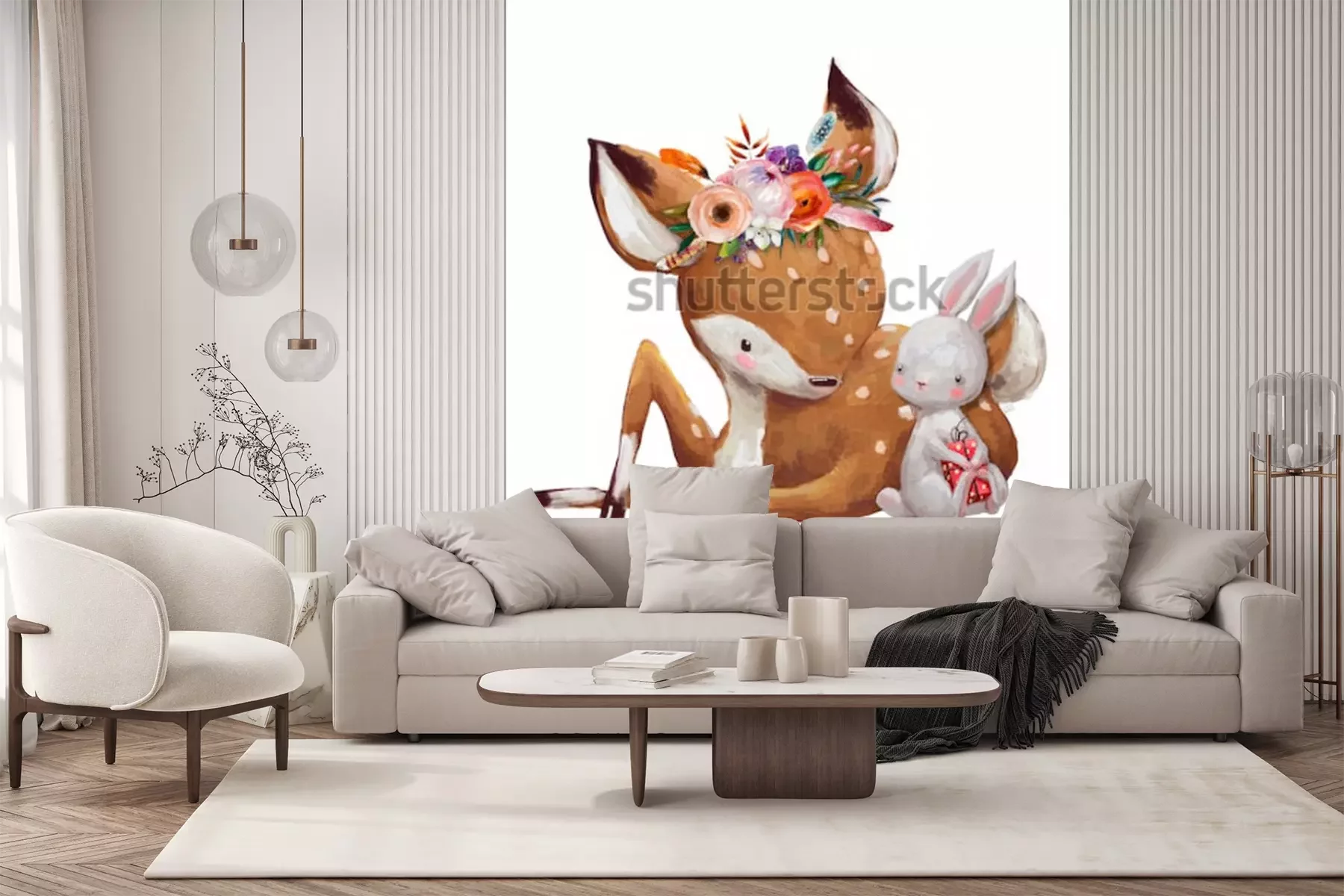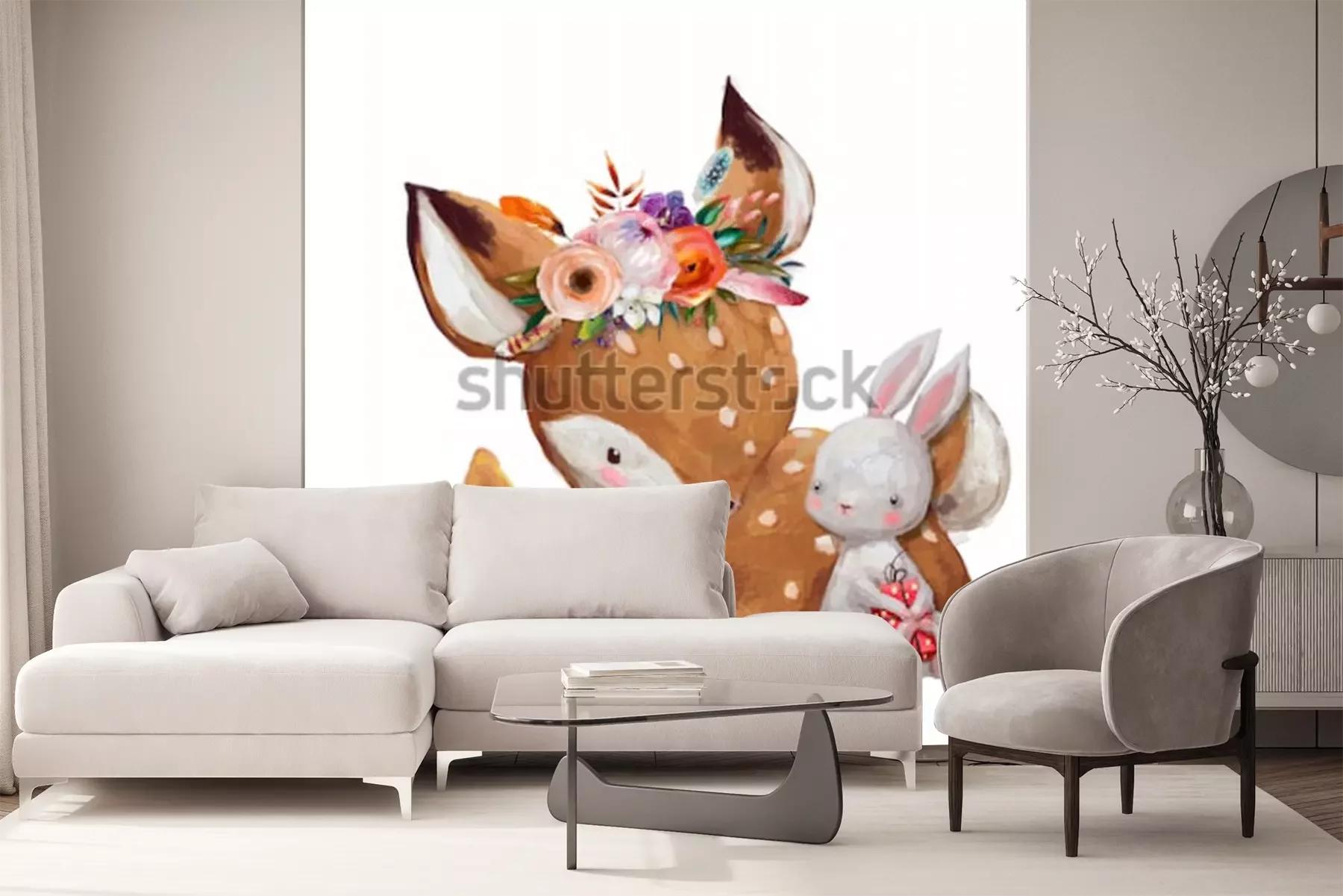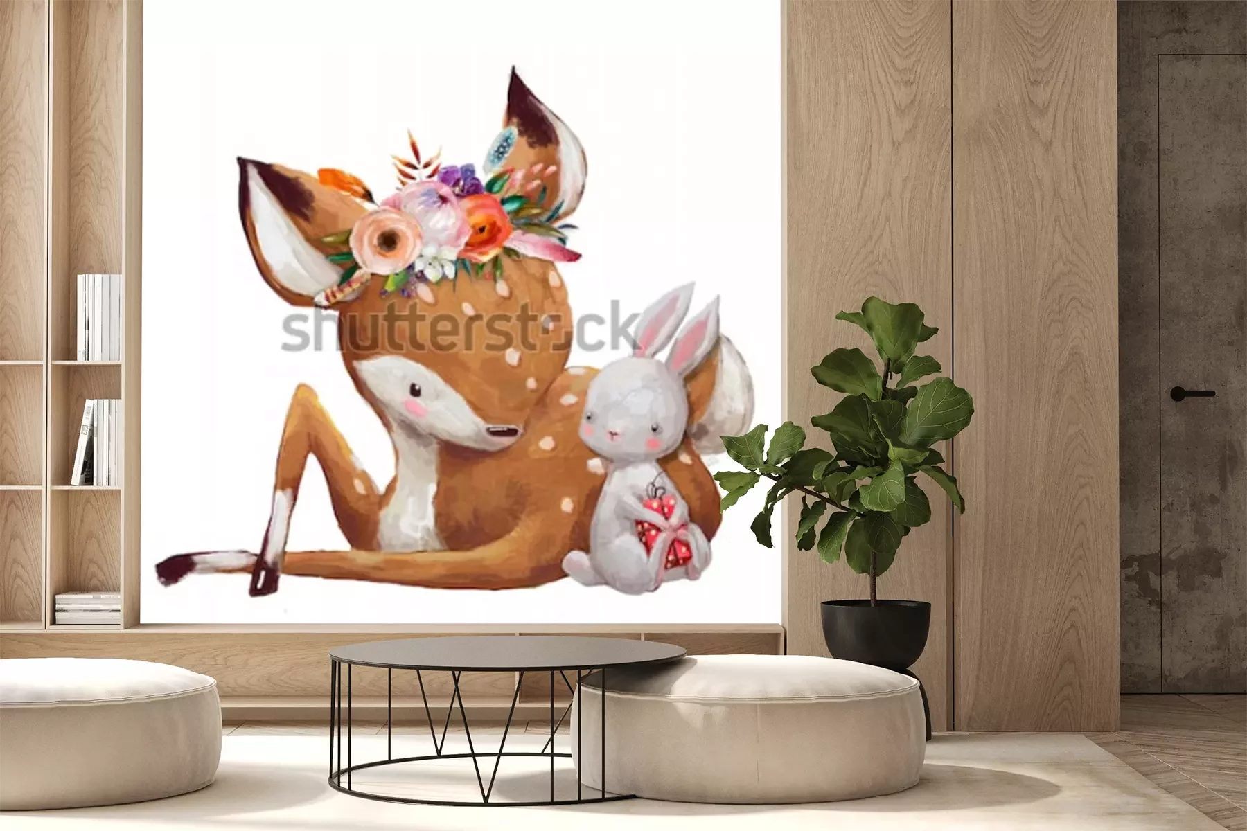Sticker süßer kleiner Hase mit kleinem Hirsch