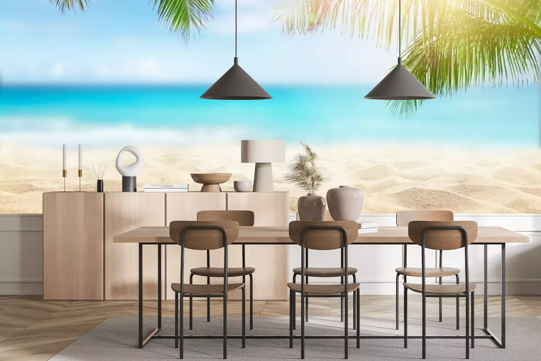 Strandpanorama mit LiegestühlenProblemlose Lieferung durch vertrauenswürdige Spediteure