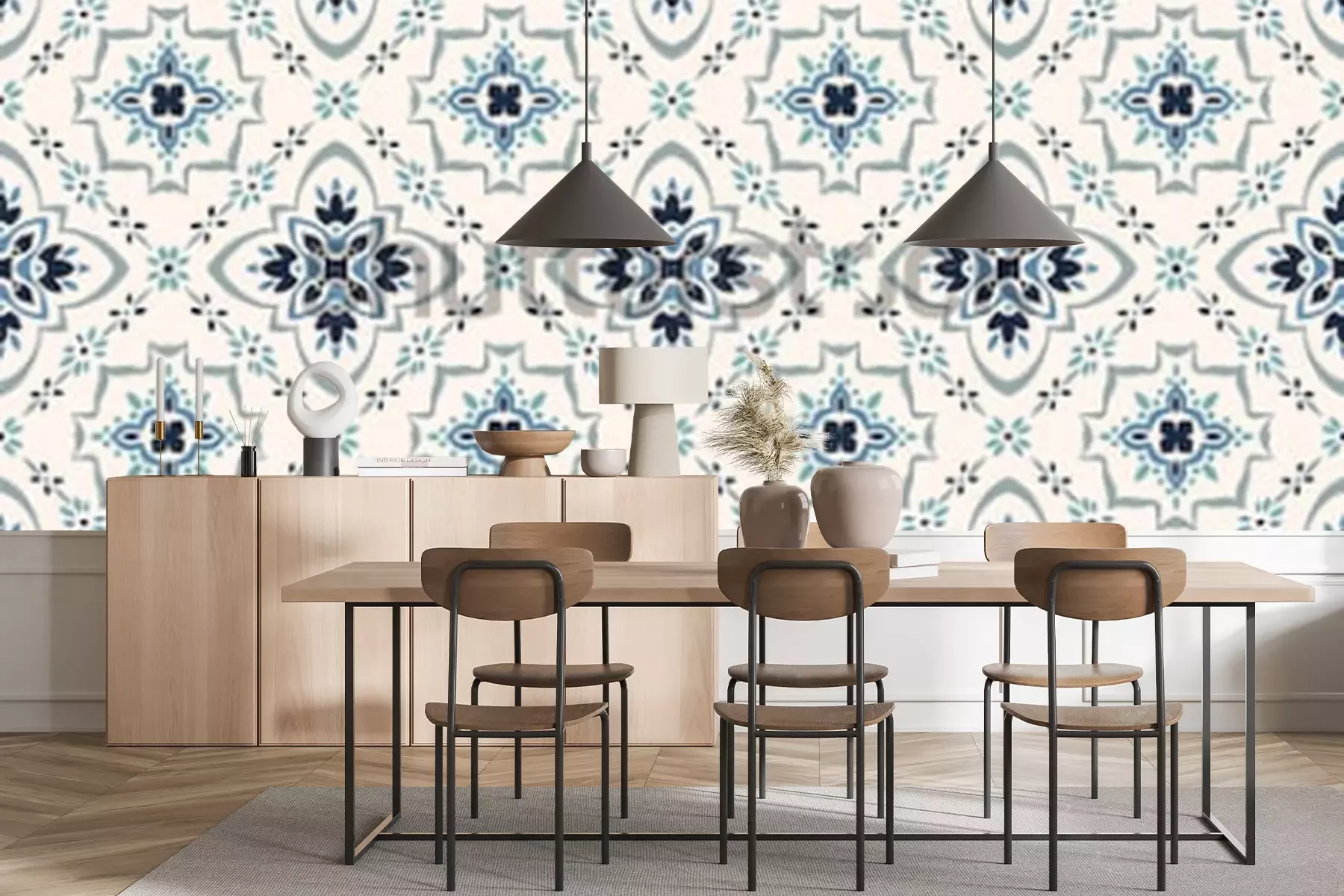 Sticker Talavera-Muster Azulejos Portugal. Türkische Verzierung Marokkanisches Fliesenmosaik. Spanisches Porzellan. Keramikgeschirr, Folk-Print. Spanische Keramik Ethnischer Hintergrund. Mediterrane nahtlose