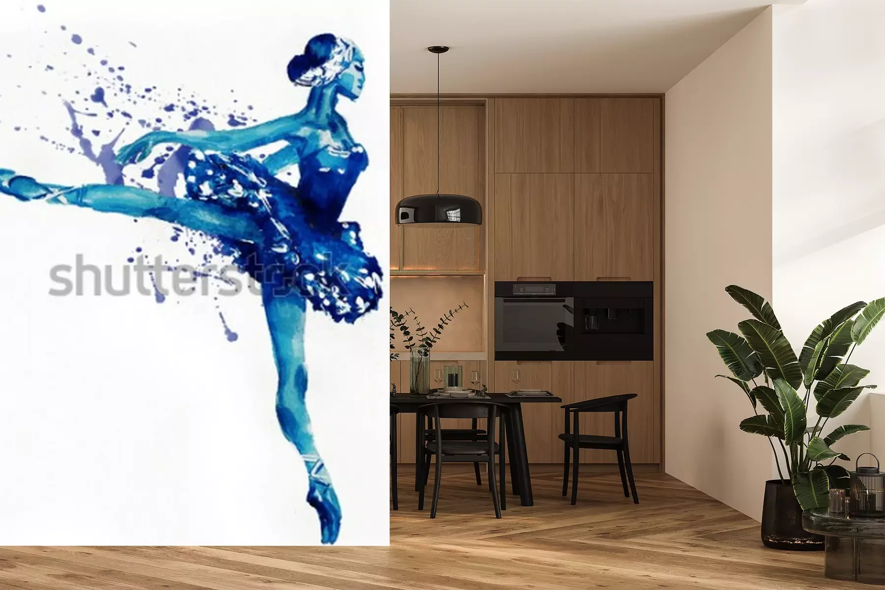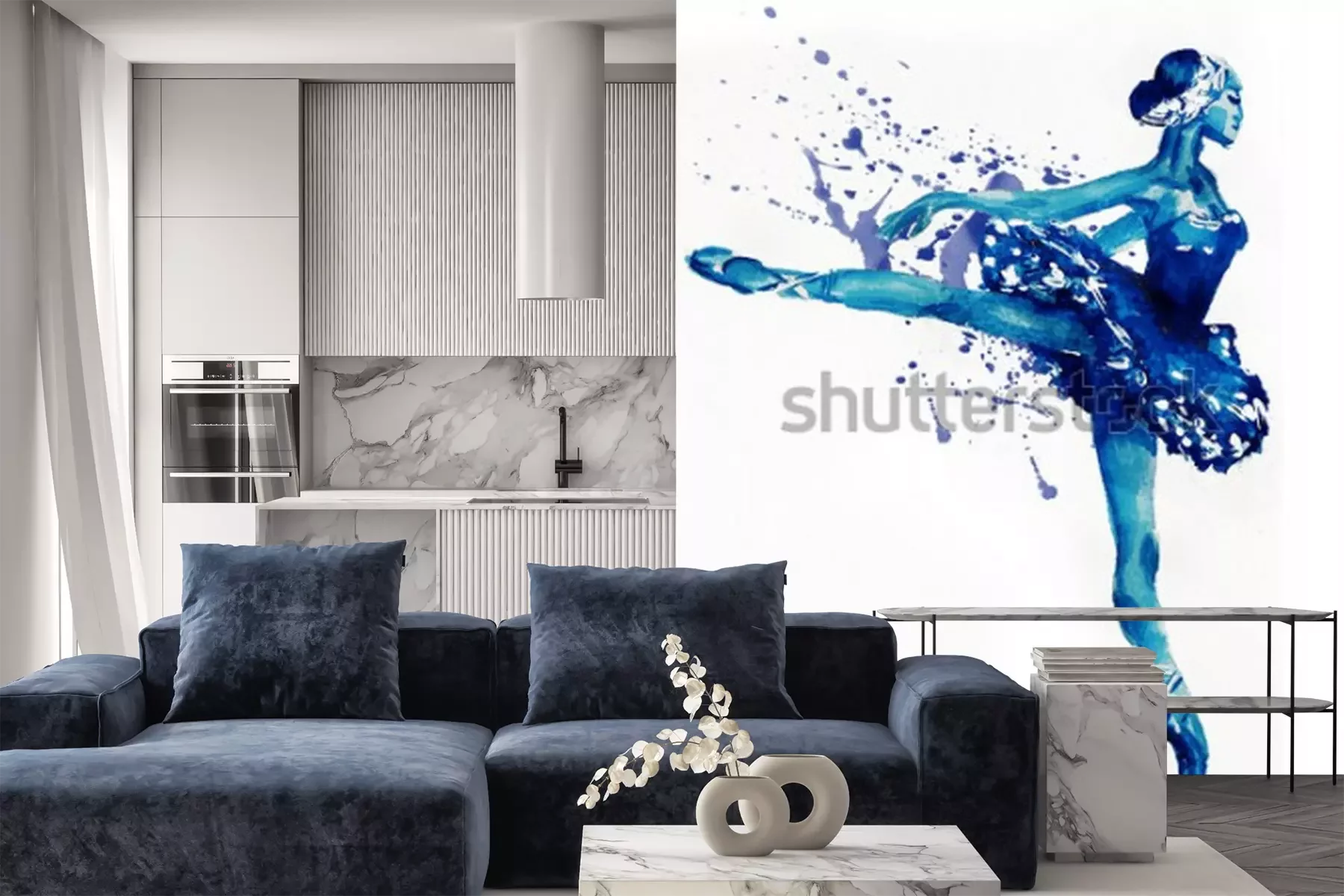 Sticker Tanzende Ballerina in Blau. Aquarellillustration