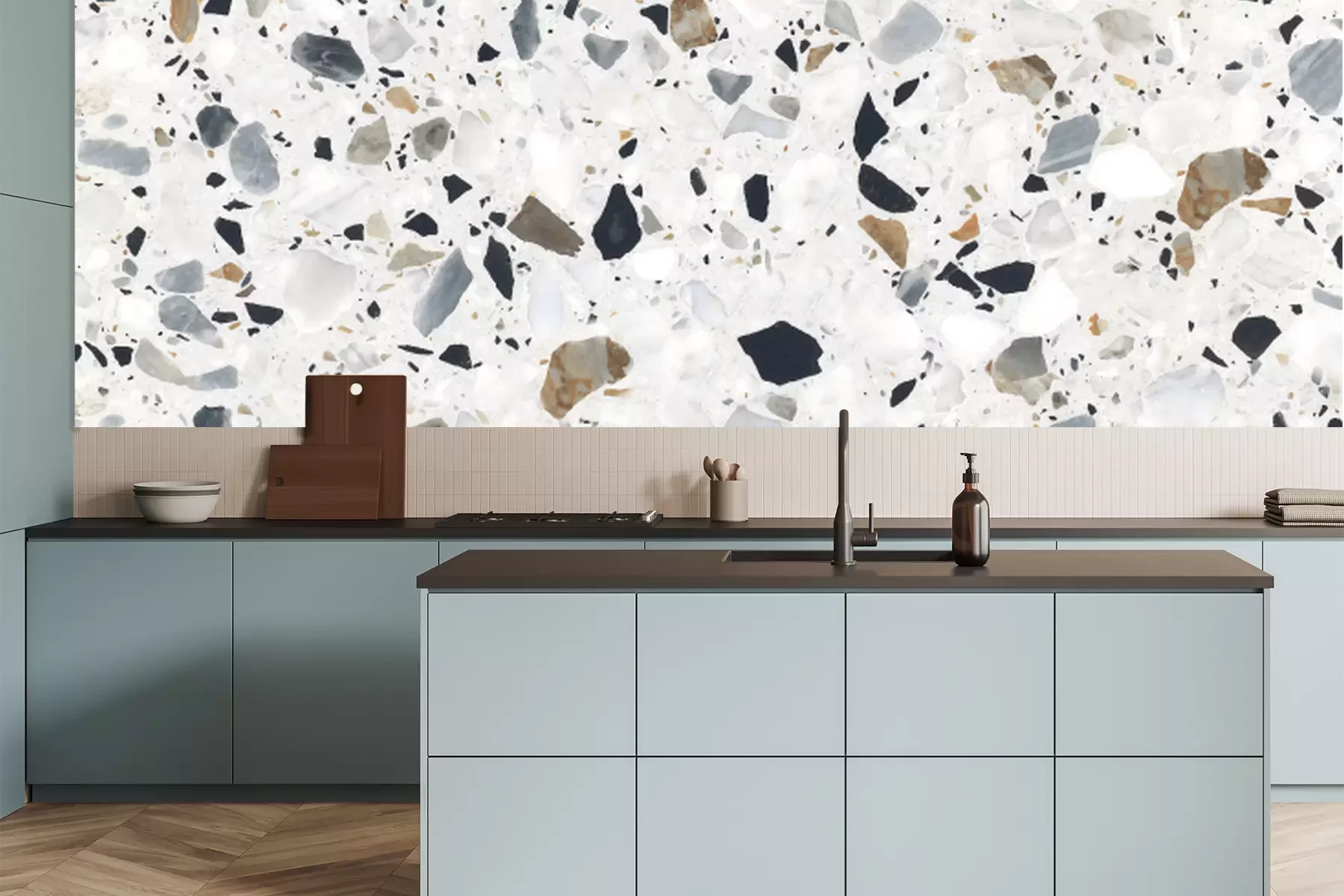 Super schöne Küchentapete, genau nach Maß, passt perfekt.