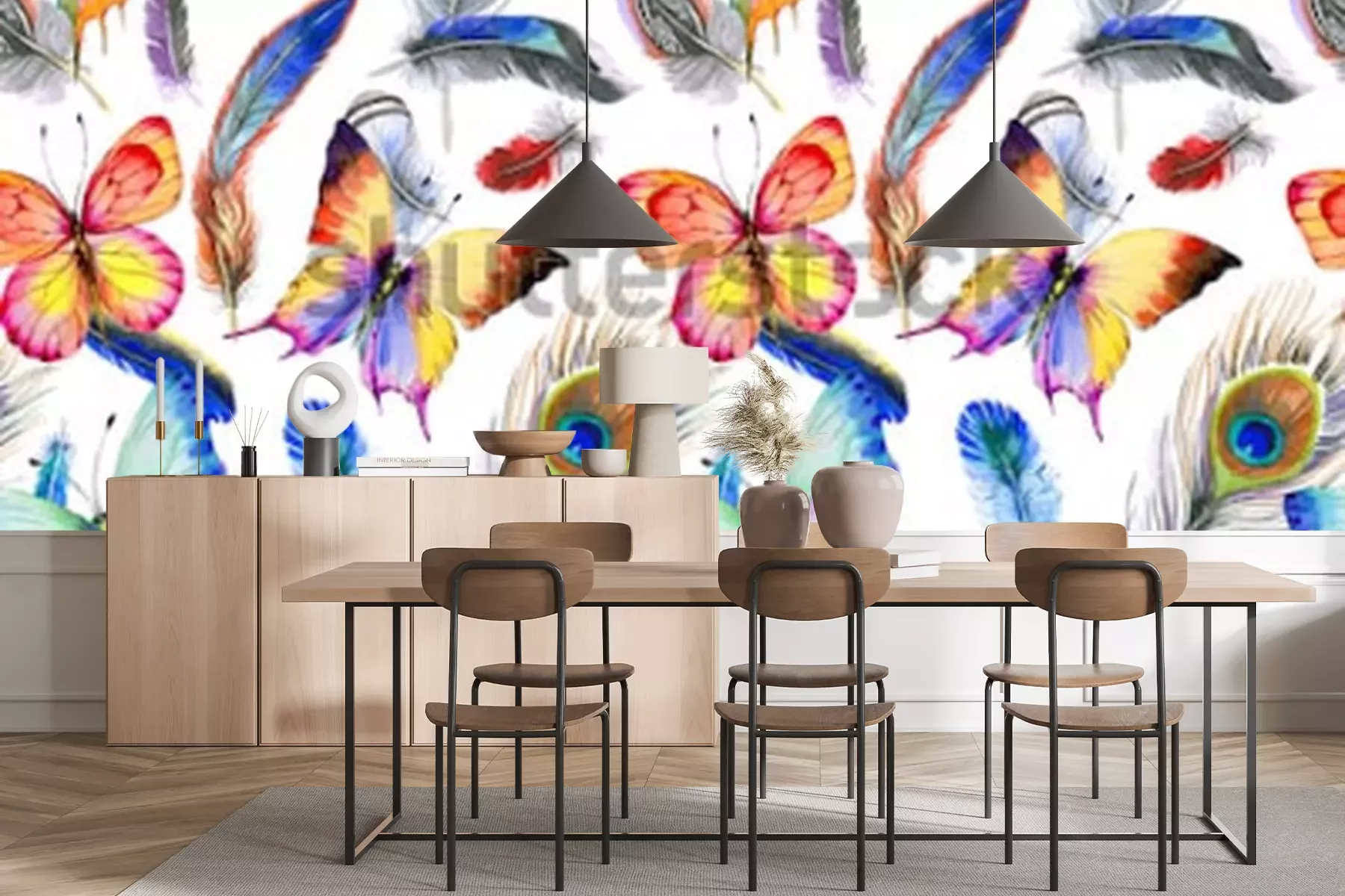 Sticker Tiere, bunte Schmetterlinge und Pfauenfedern