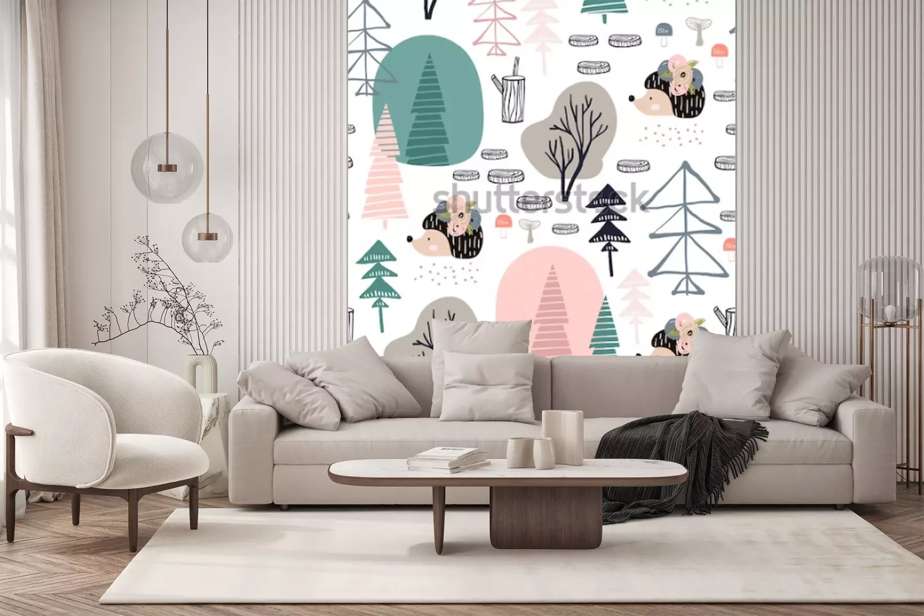 Sticker Tiere für Kinder Grafik mit Igeln und Bäumen