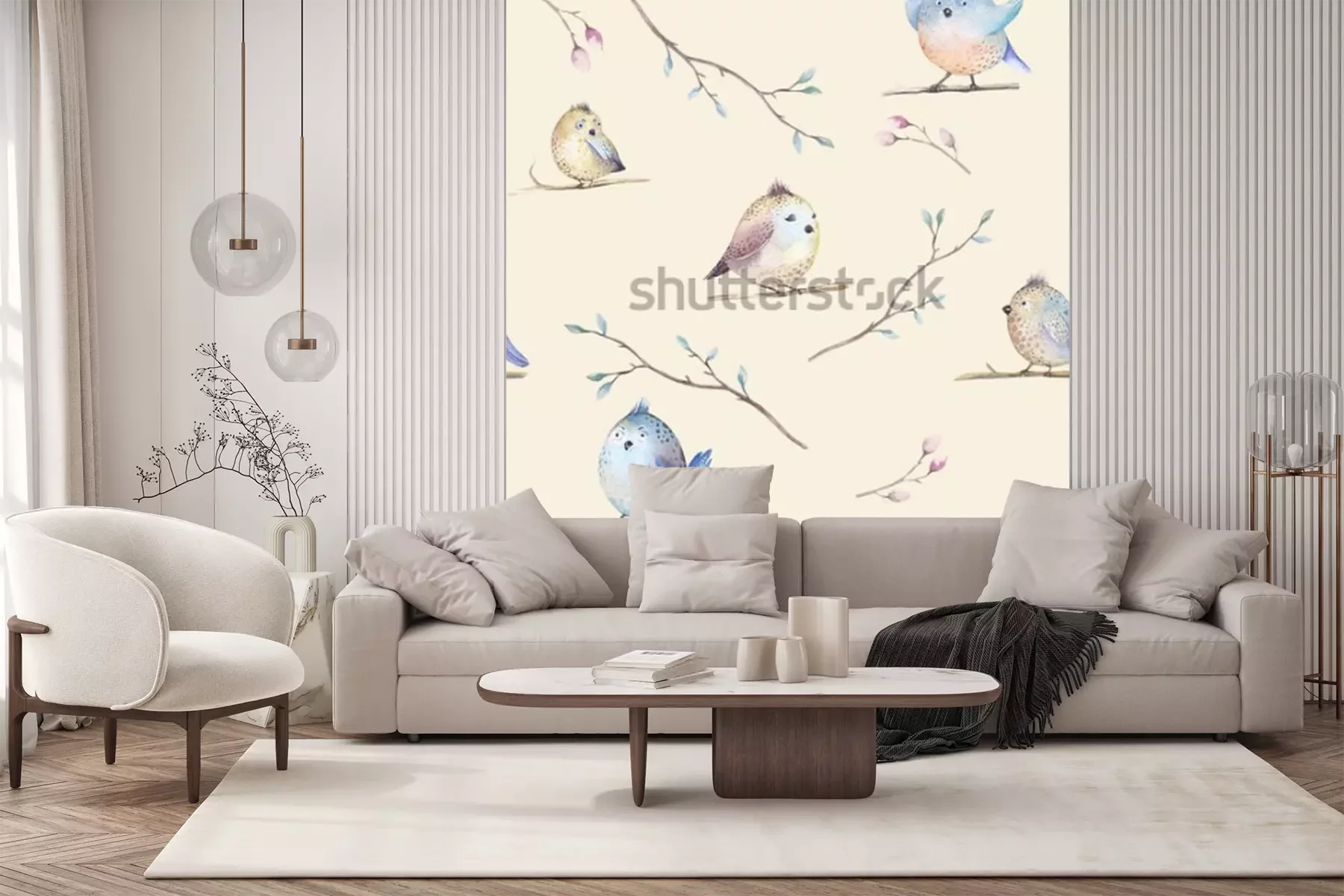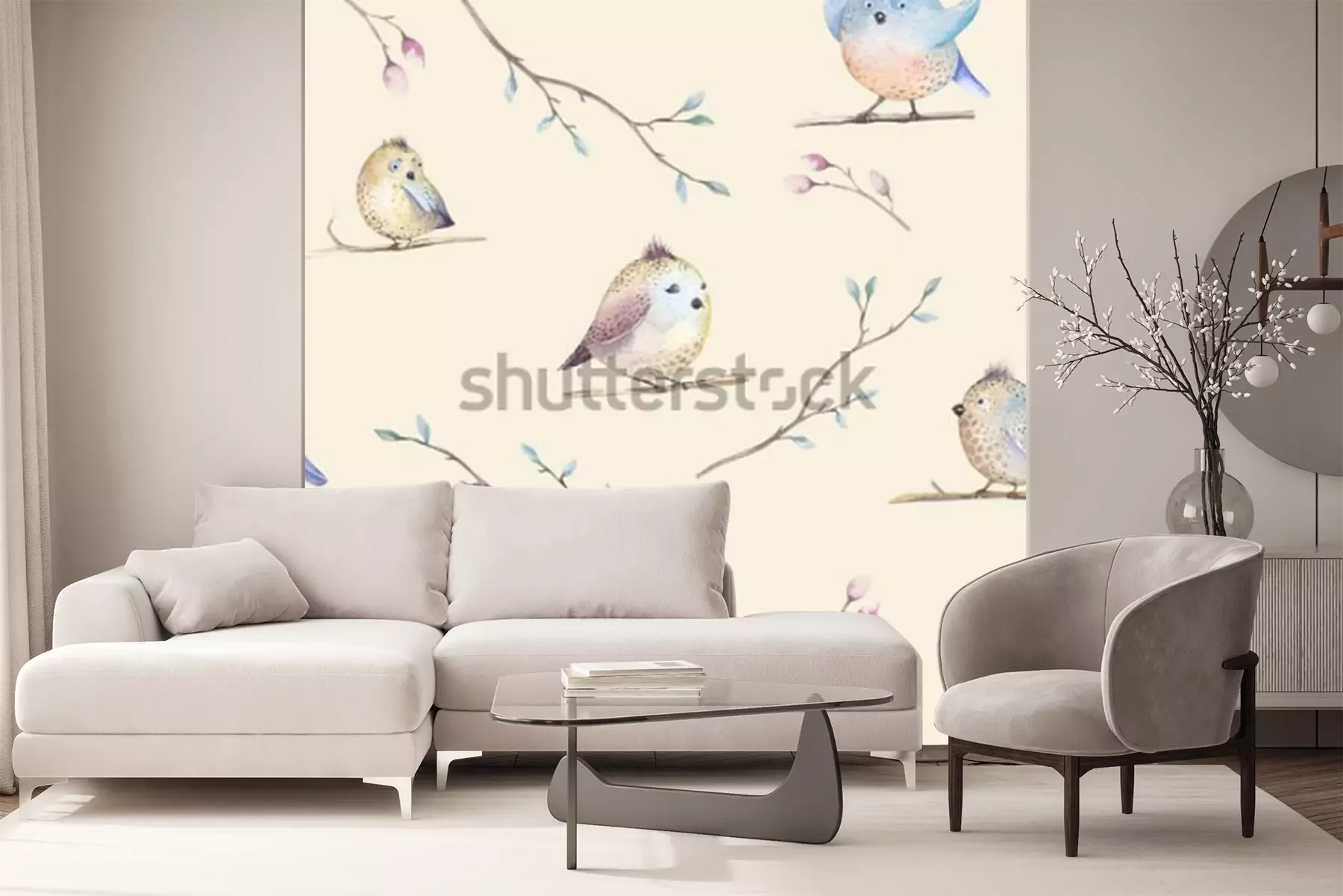Sticker Tiere Pastell-Vögel auf Zweigen