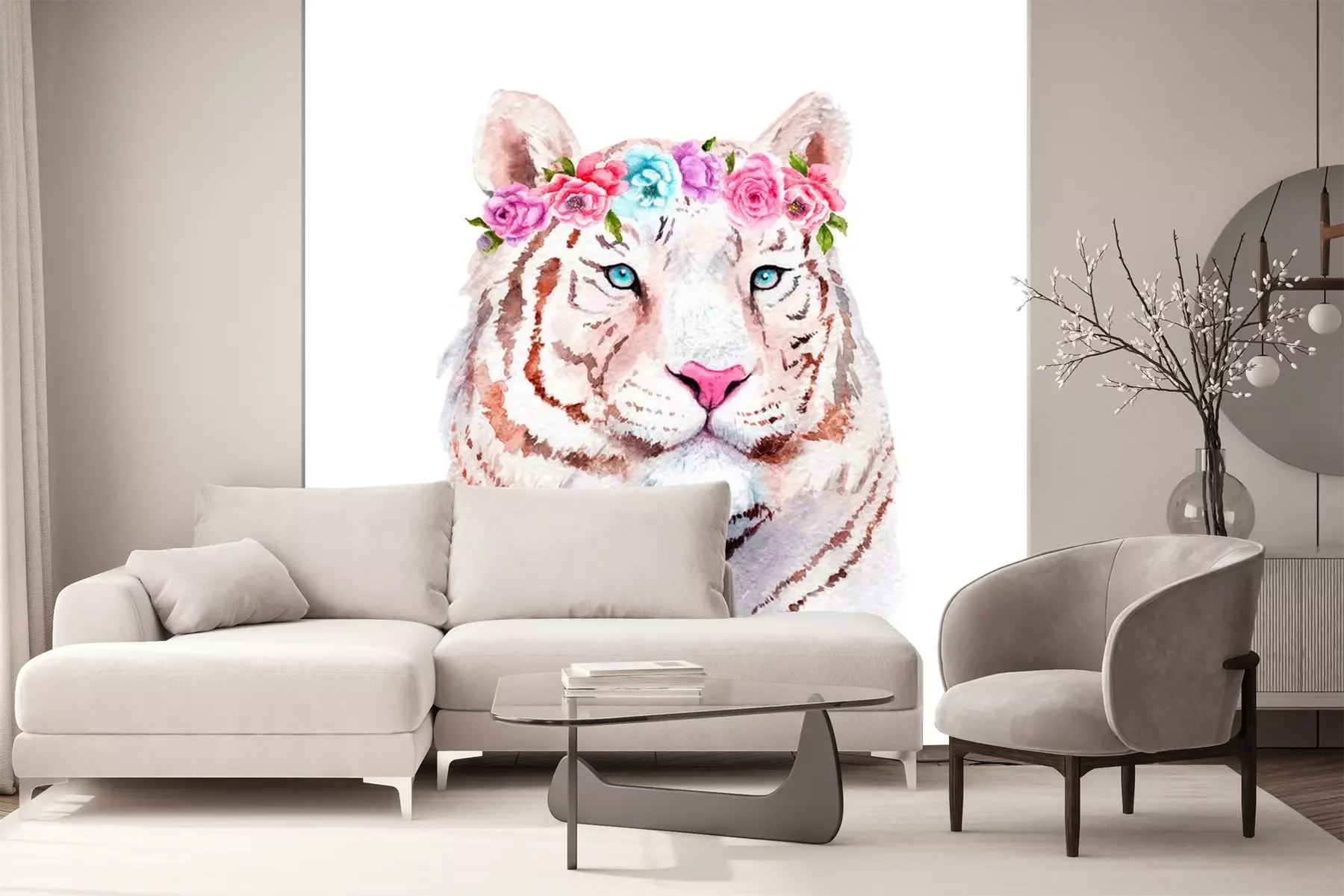 Weißer Tiger und PastellblumenProblemlose Lieferung durch vertrauenswürdige Spediteure