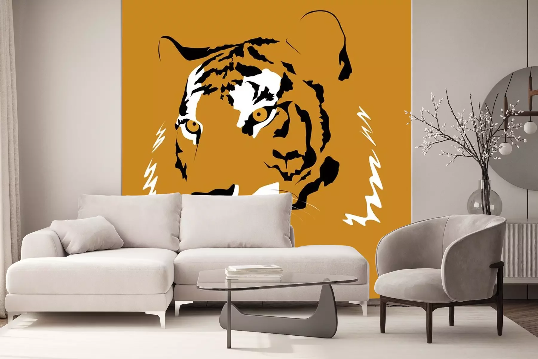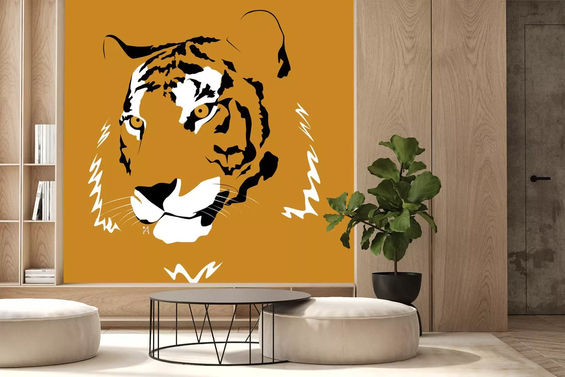 Sticker Tiger Kopf schwarz-weiße Konturen