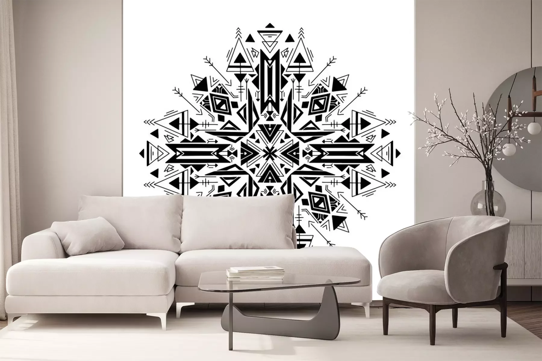 Sticker Tribal geometric mandala. Black native ornament on a white background. Mystical pattern. Vector folk pattern for cards, stickers, scrapbooking decoration and your creativity.