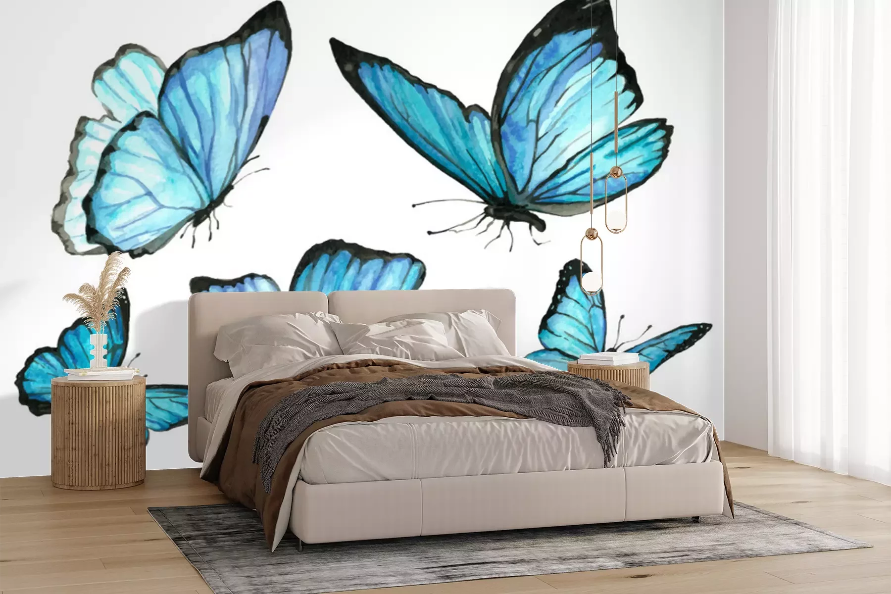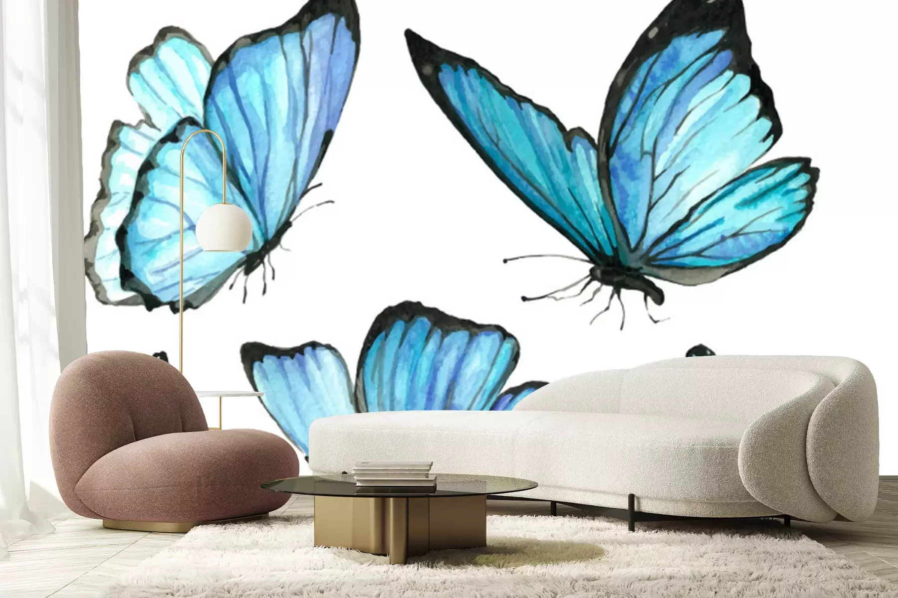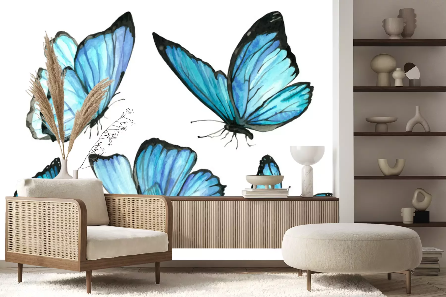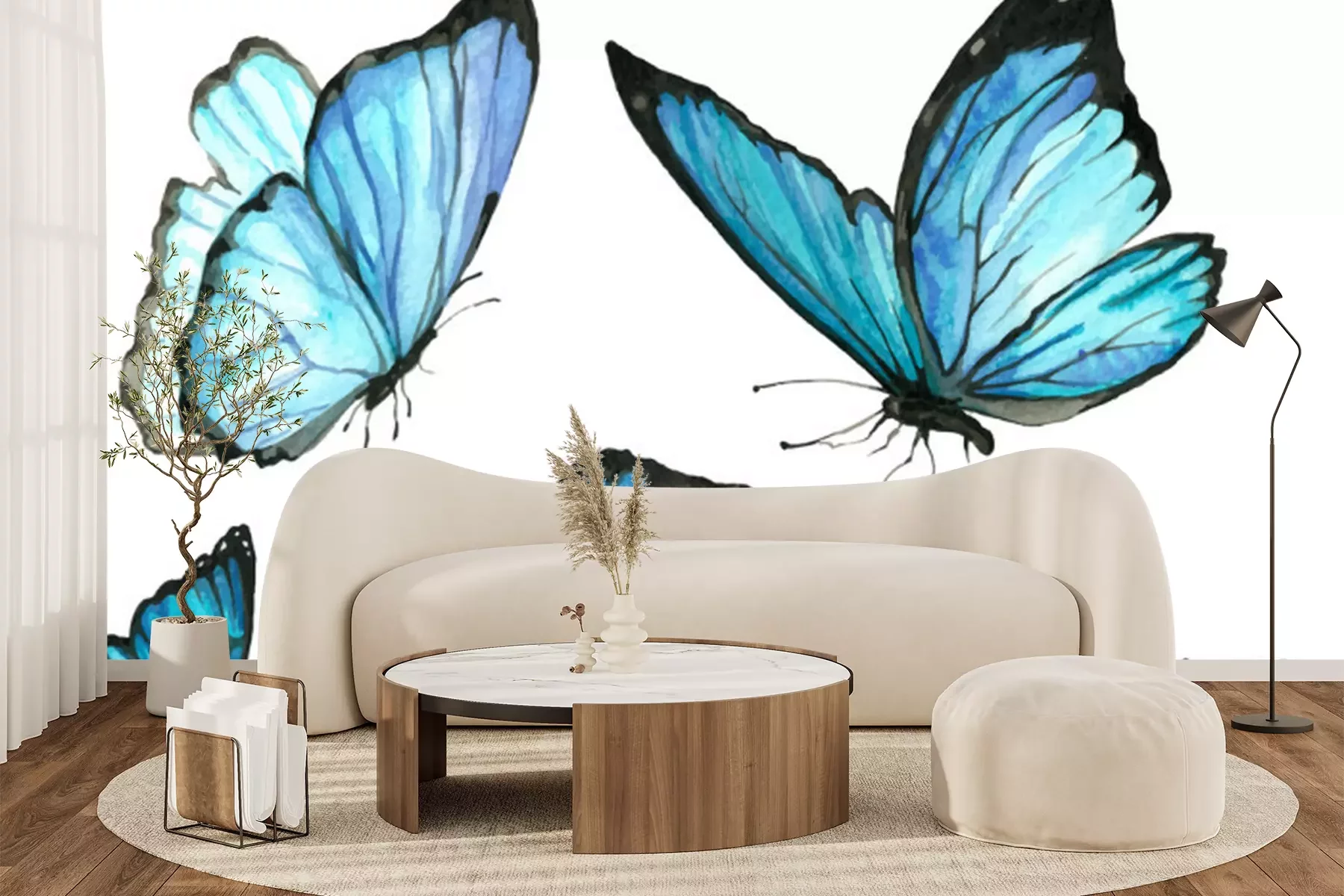 Sticker Tropische Schmetterlinge mit hellblauen Flügeln