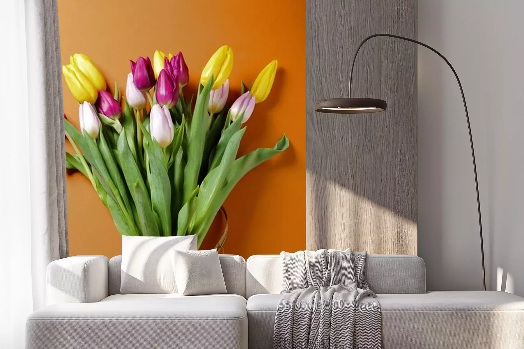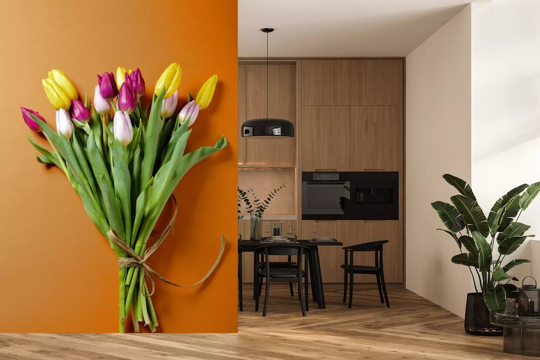 Gelbe Tulpen mit Schnur gebundenProblemlose Lieferung durch vertrauenswürdige Spediteure
