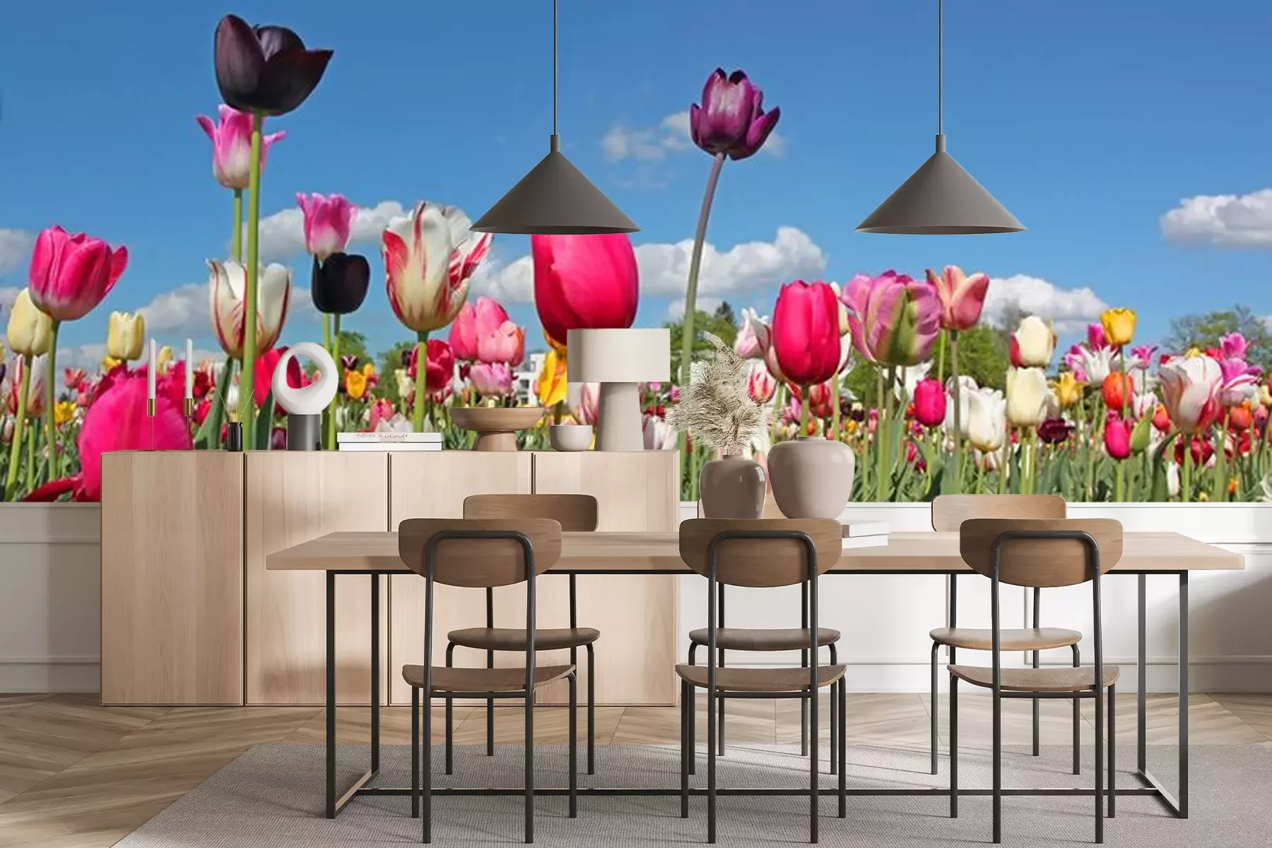 Ein Tulpenfeld in der SonneProblemlose Lieferung durch vertrauenswürdige Spediteure