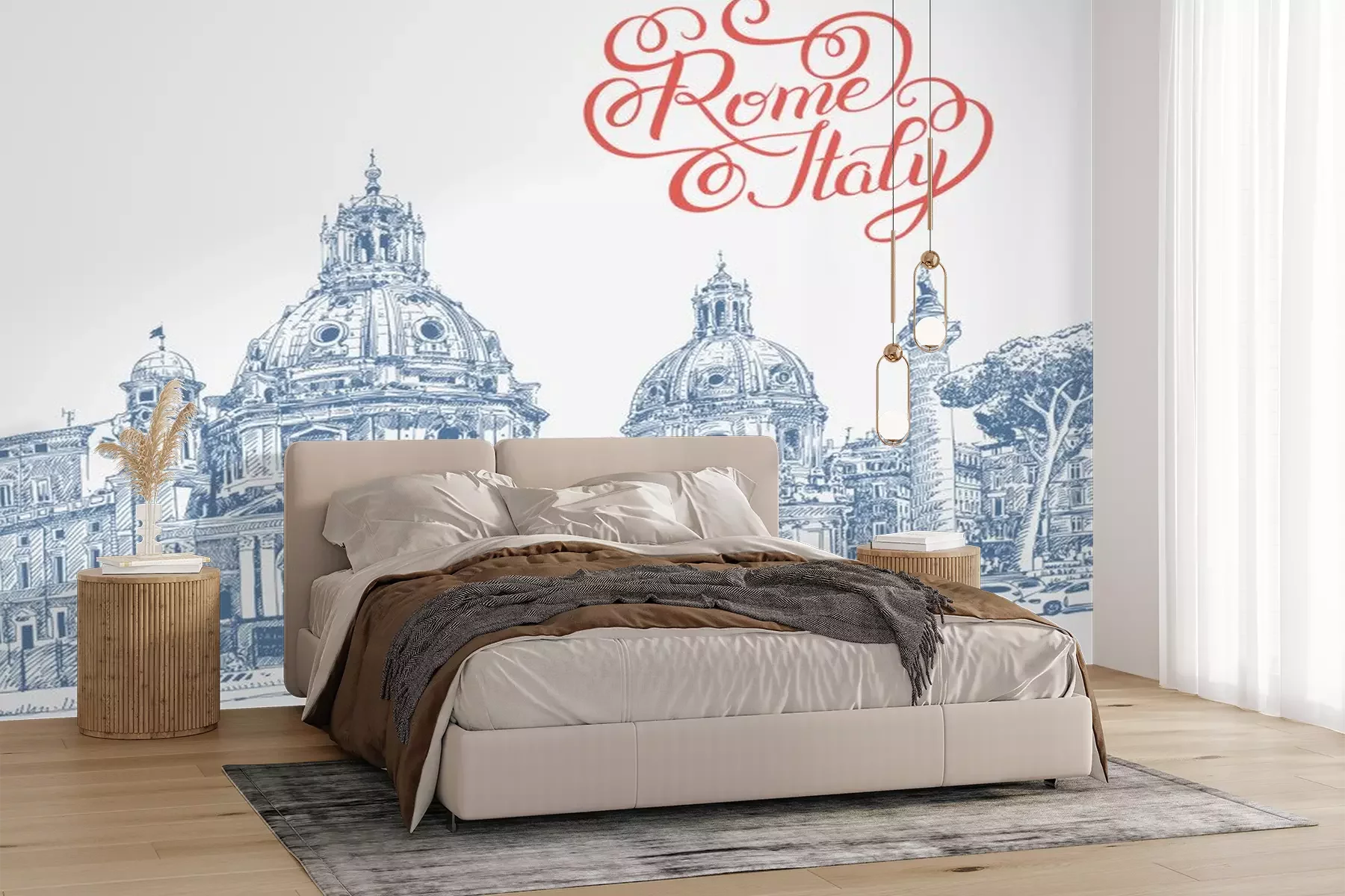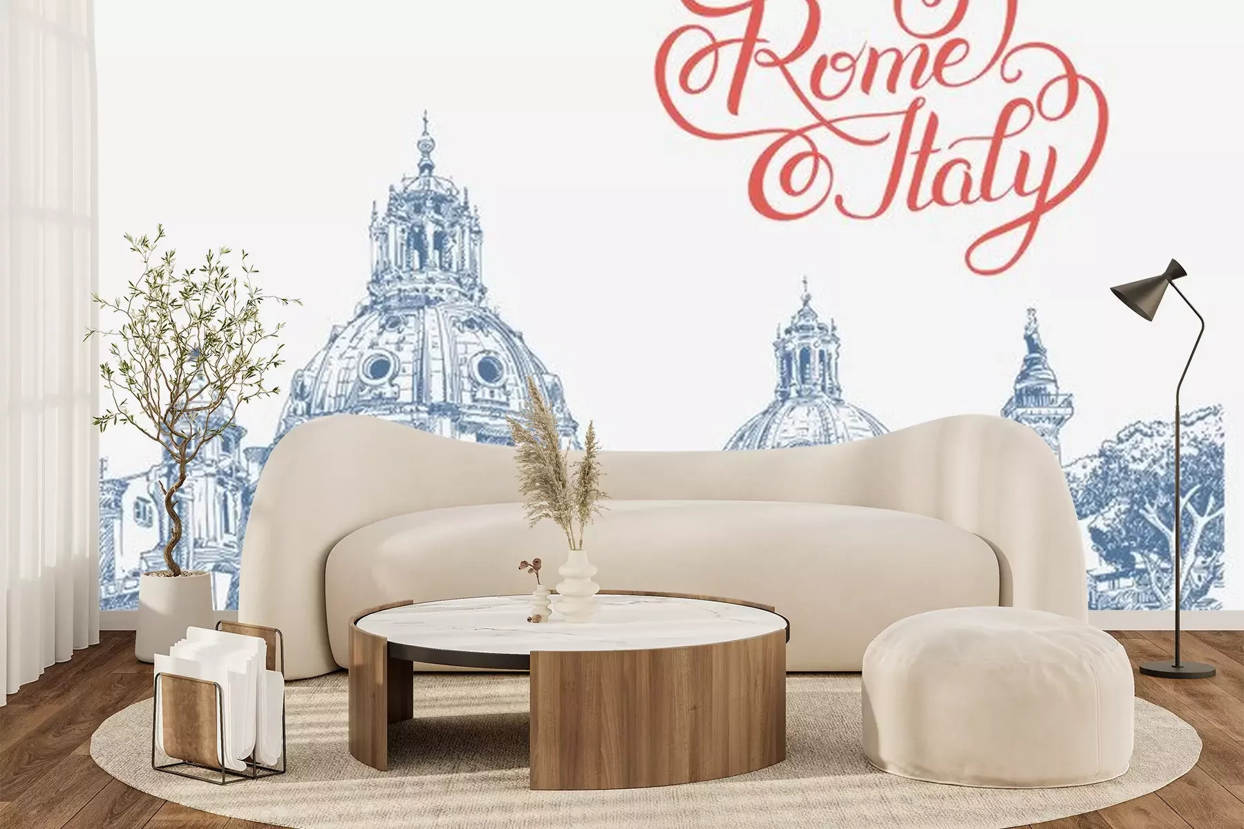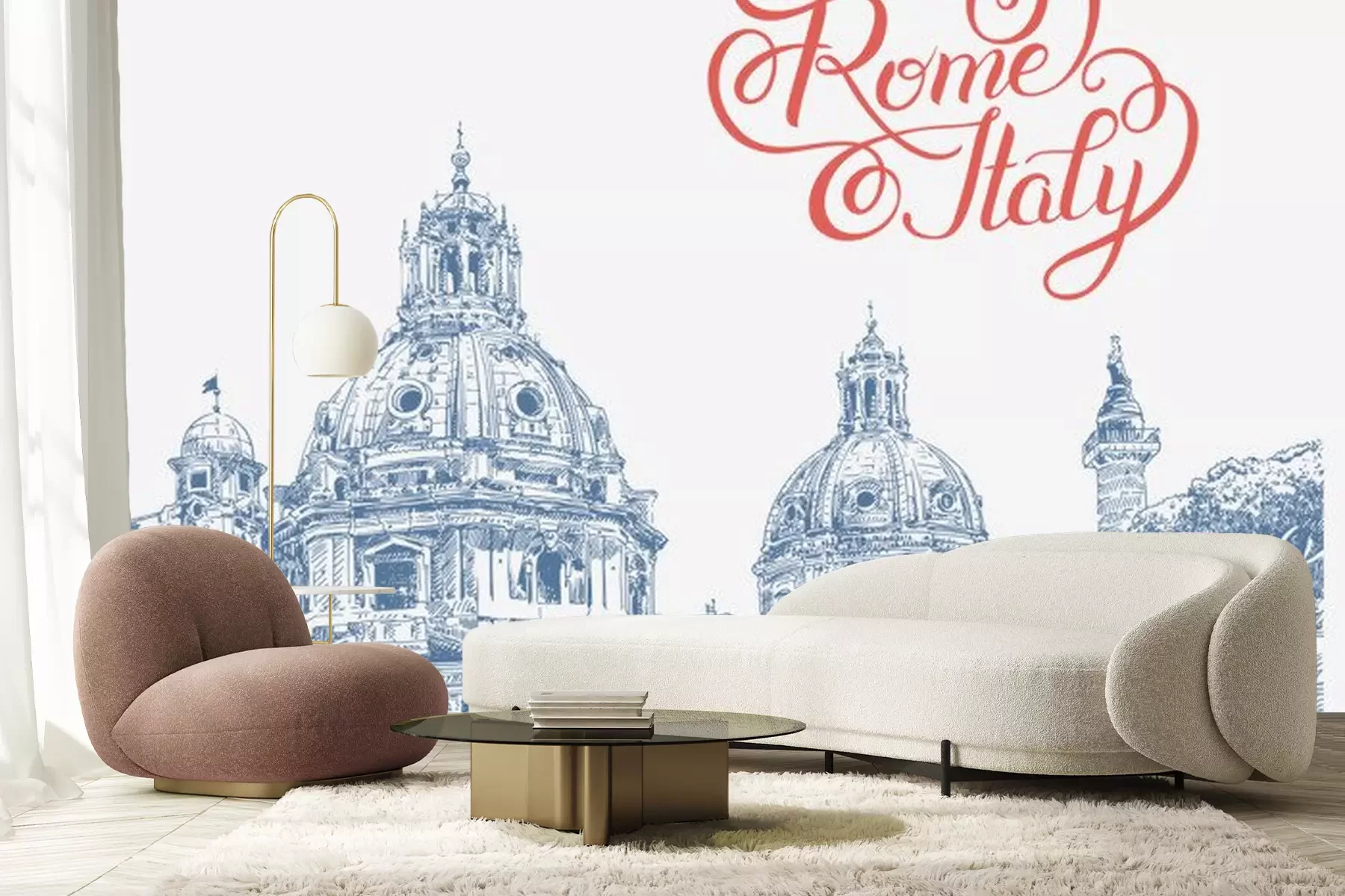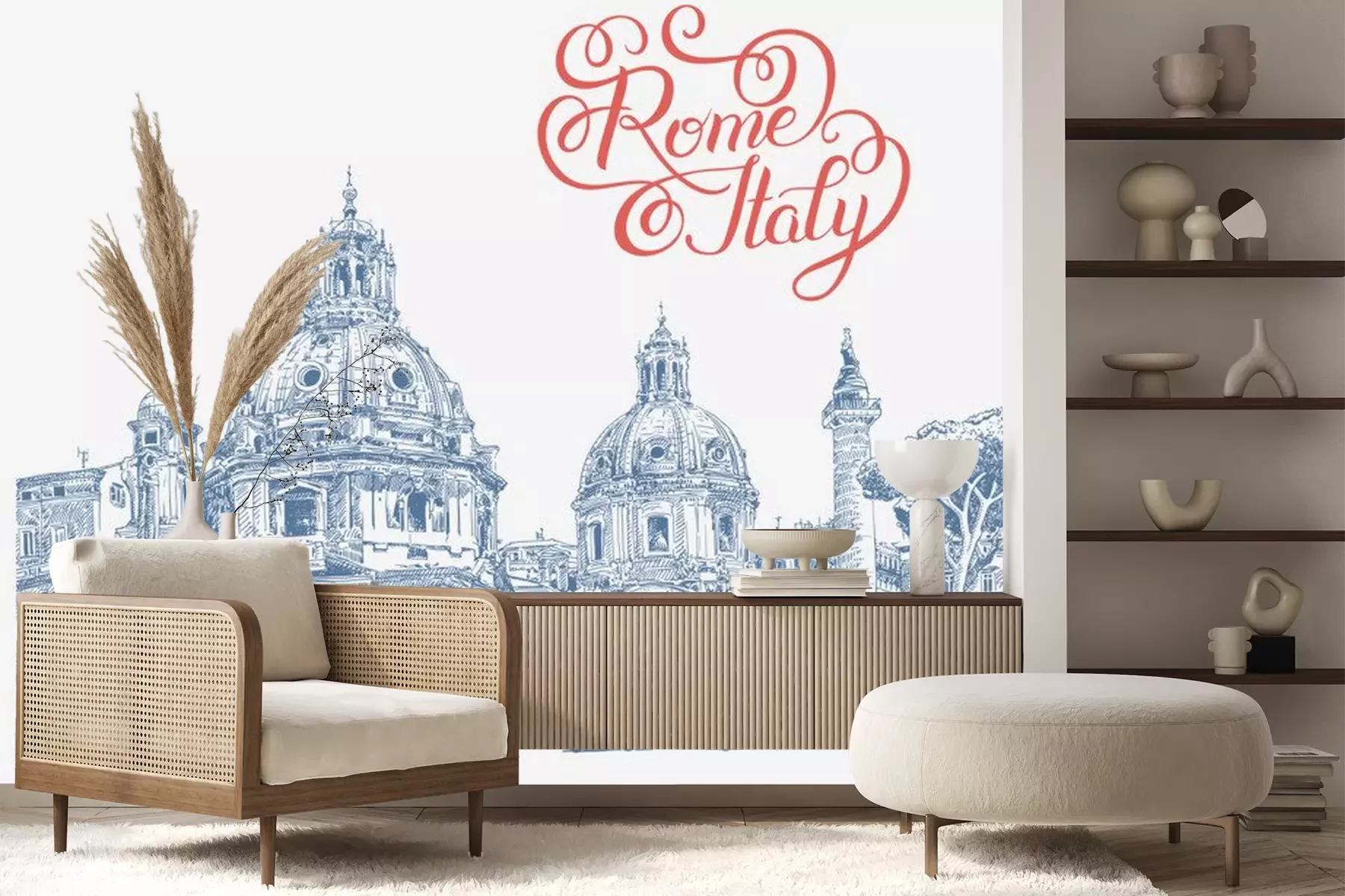 Sticker Ursprüngliche digitale Zeichnung von Rom Italien-Stadtbild mit Beschriftung