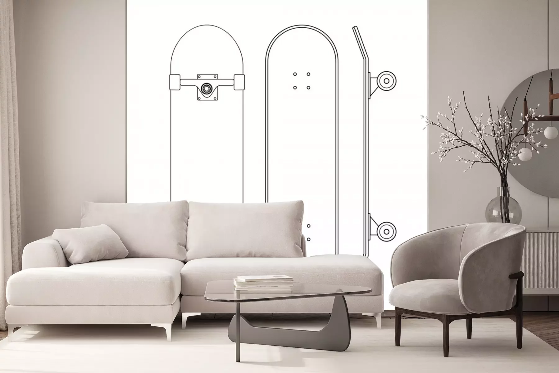 Sticker Vector flat cartoon line set of skateboard different sides isolated on white background