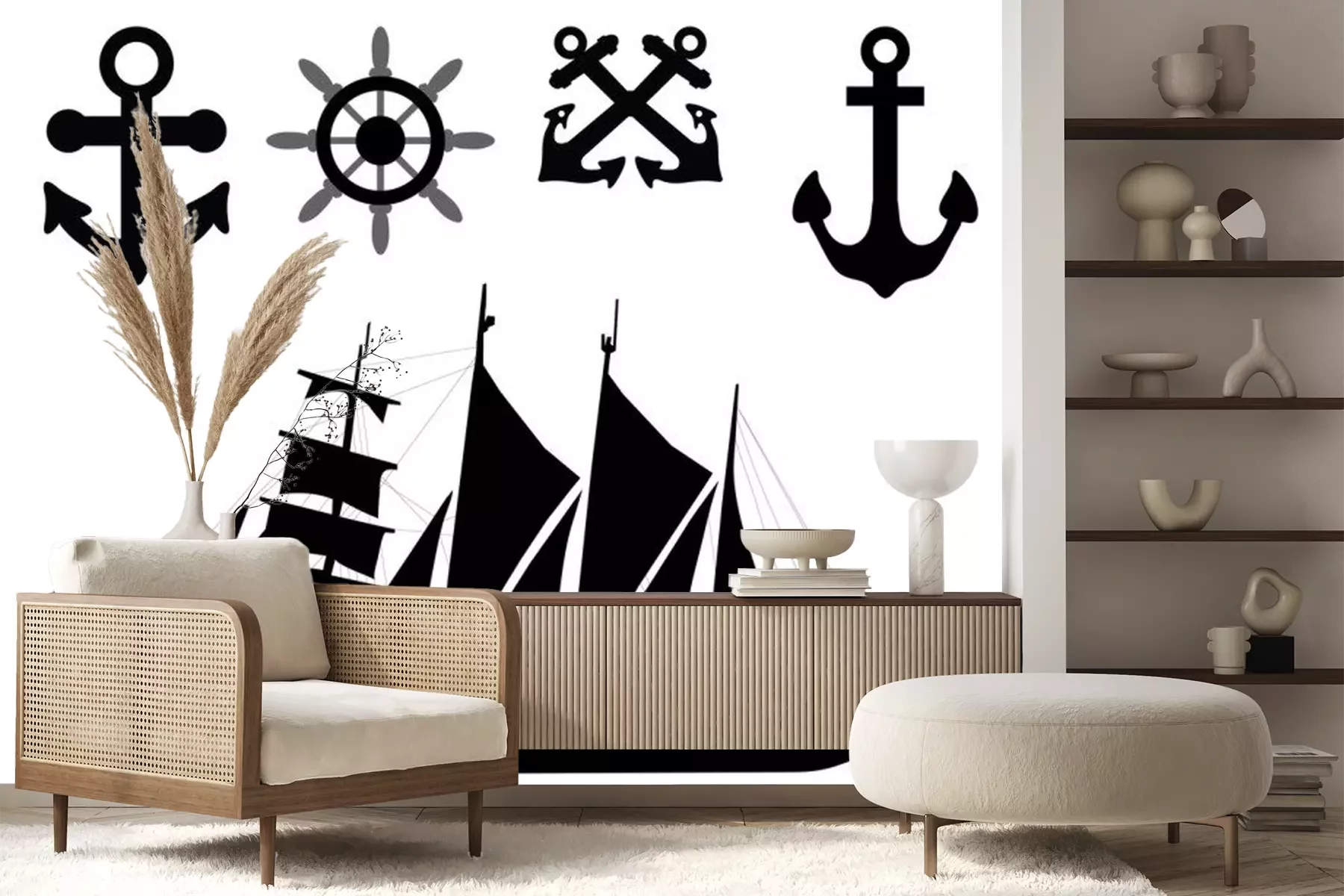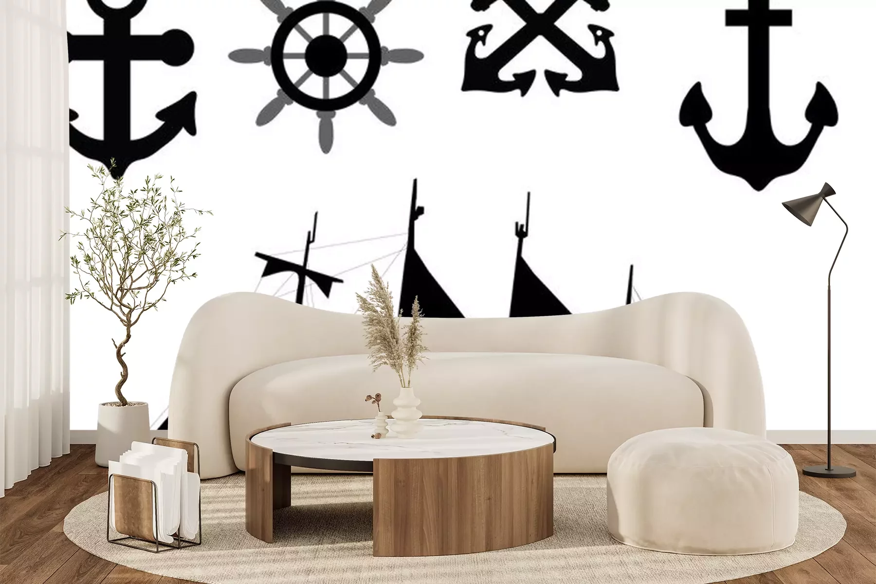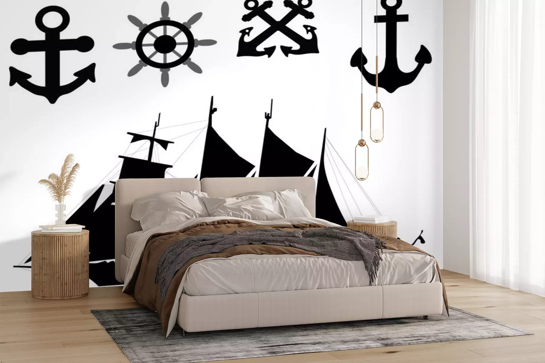 Sticker Vektor-Illustration der Anker, Ruder und Segelboot