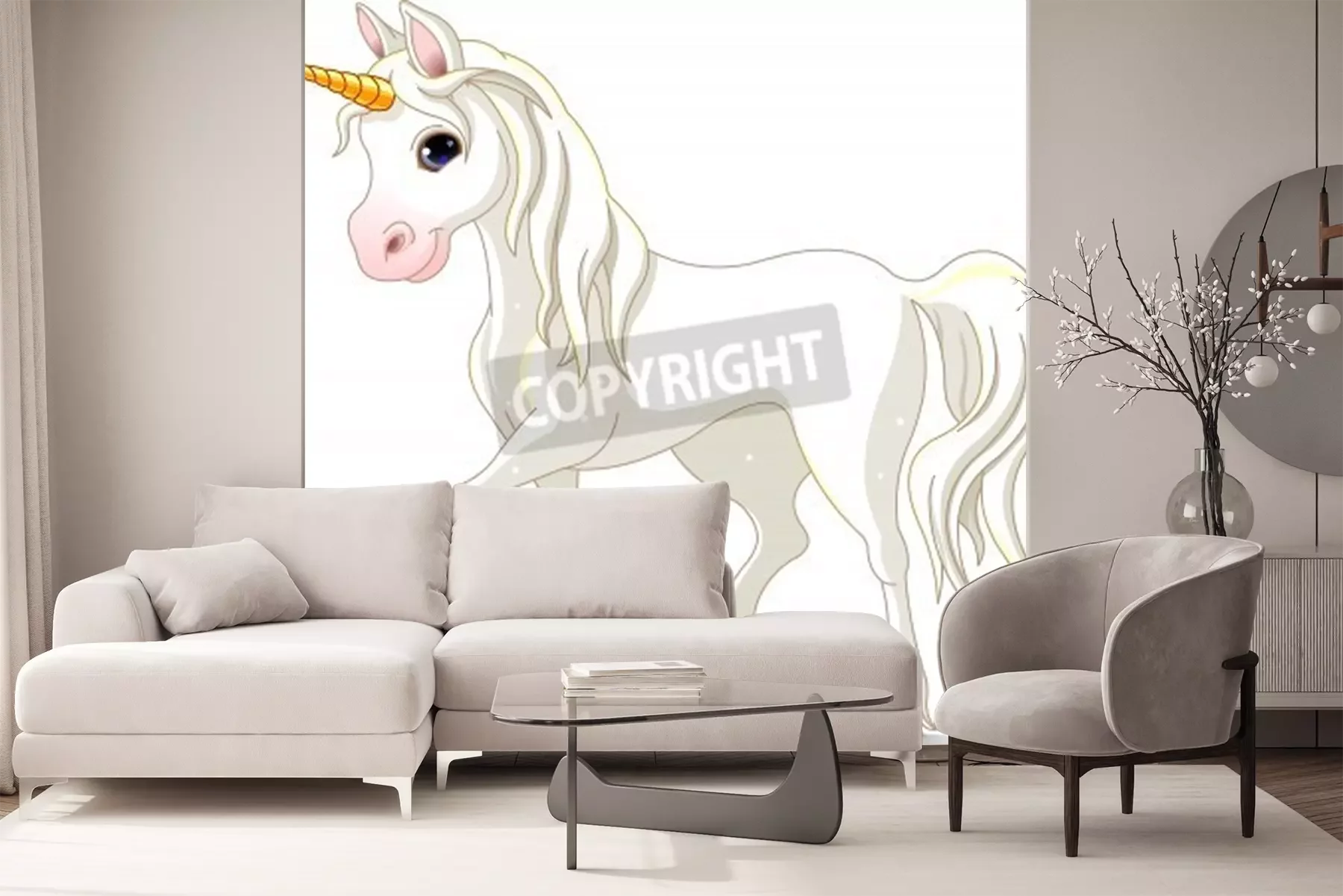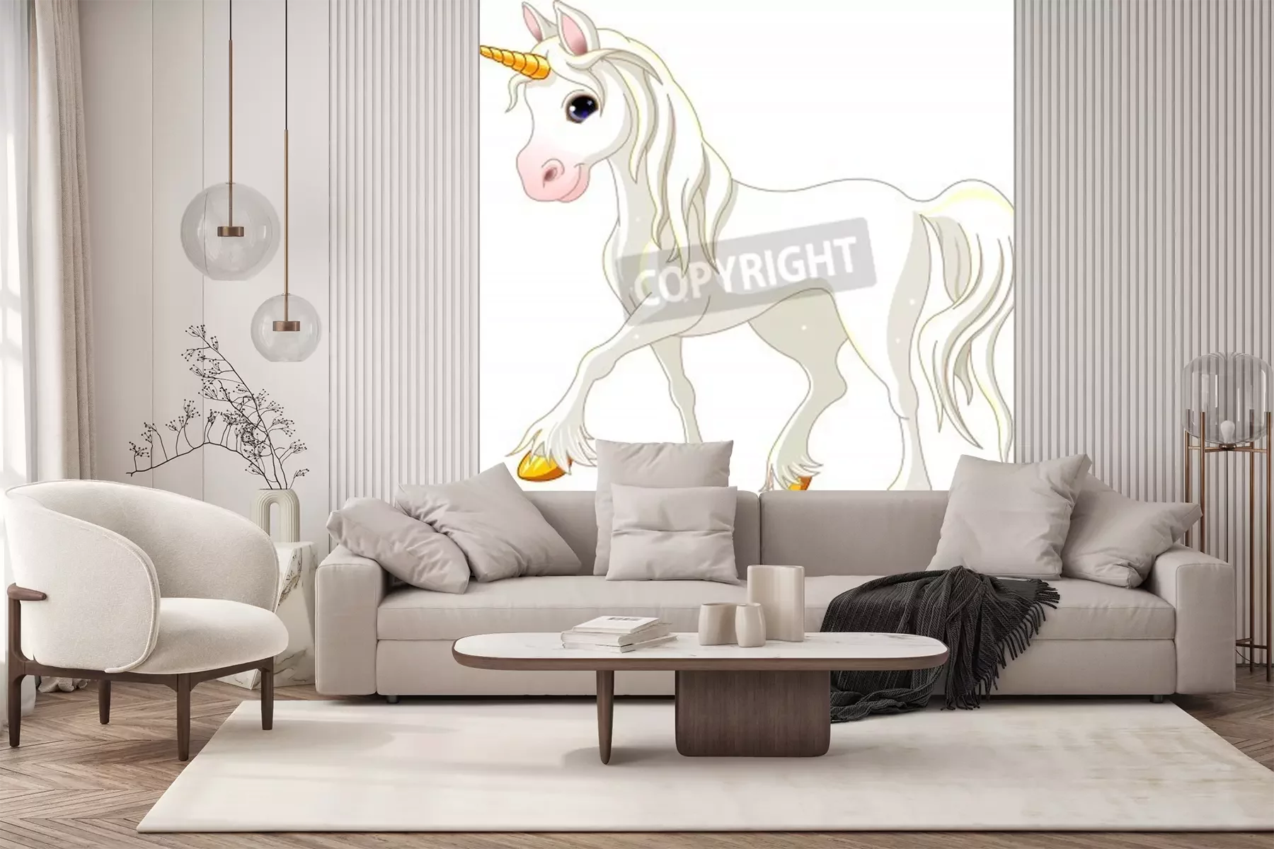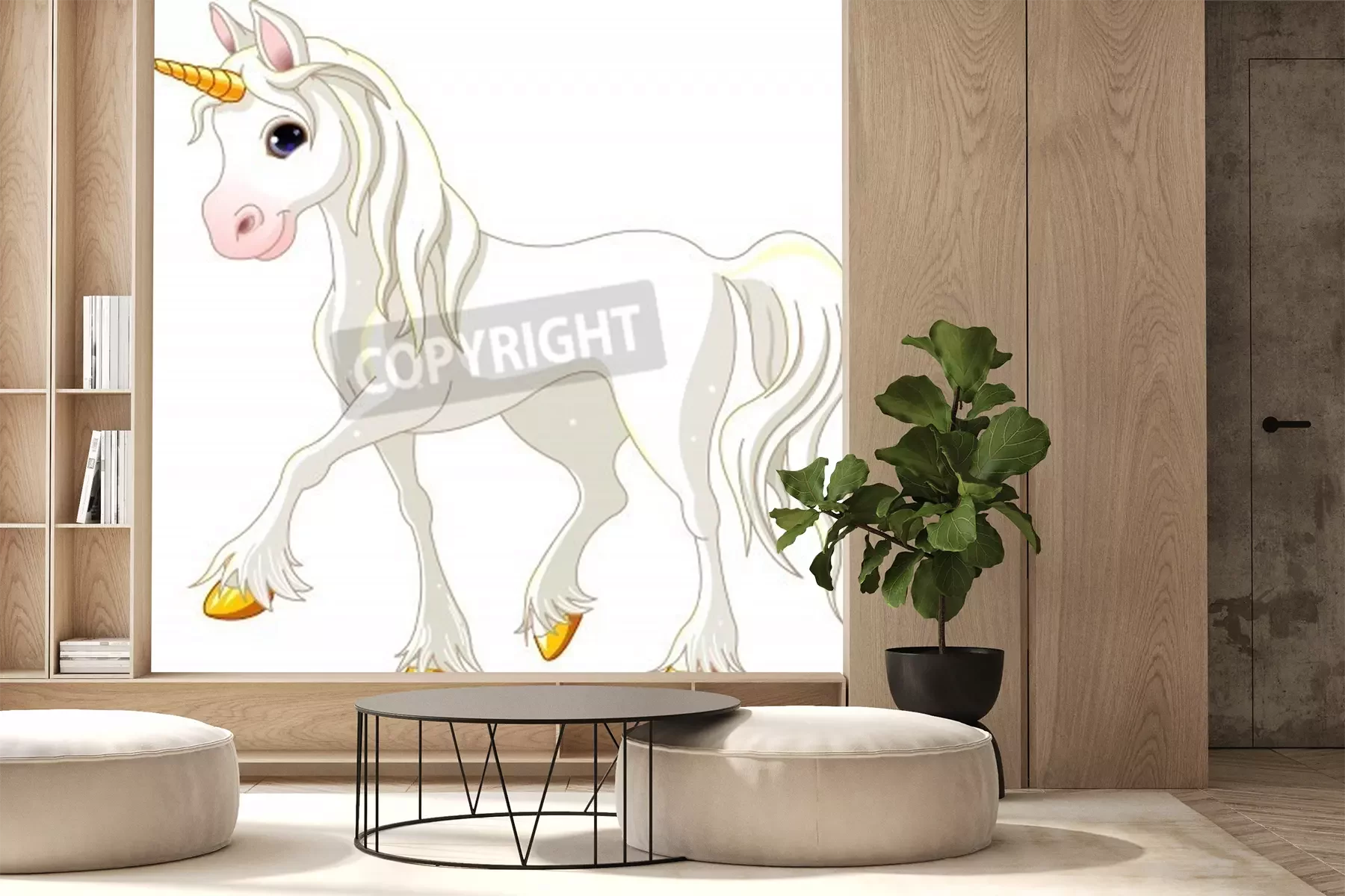 Sticker Vektor-Illustration des Gehens des schönen weißen Einhorns