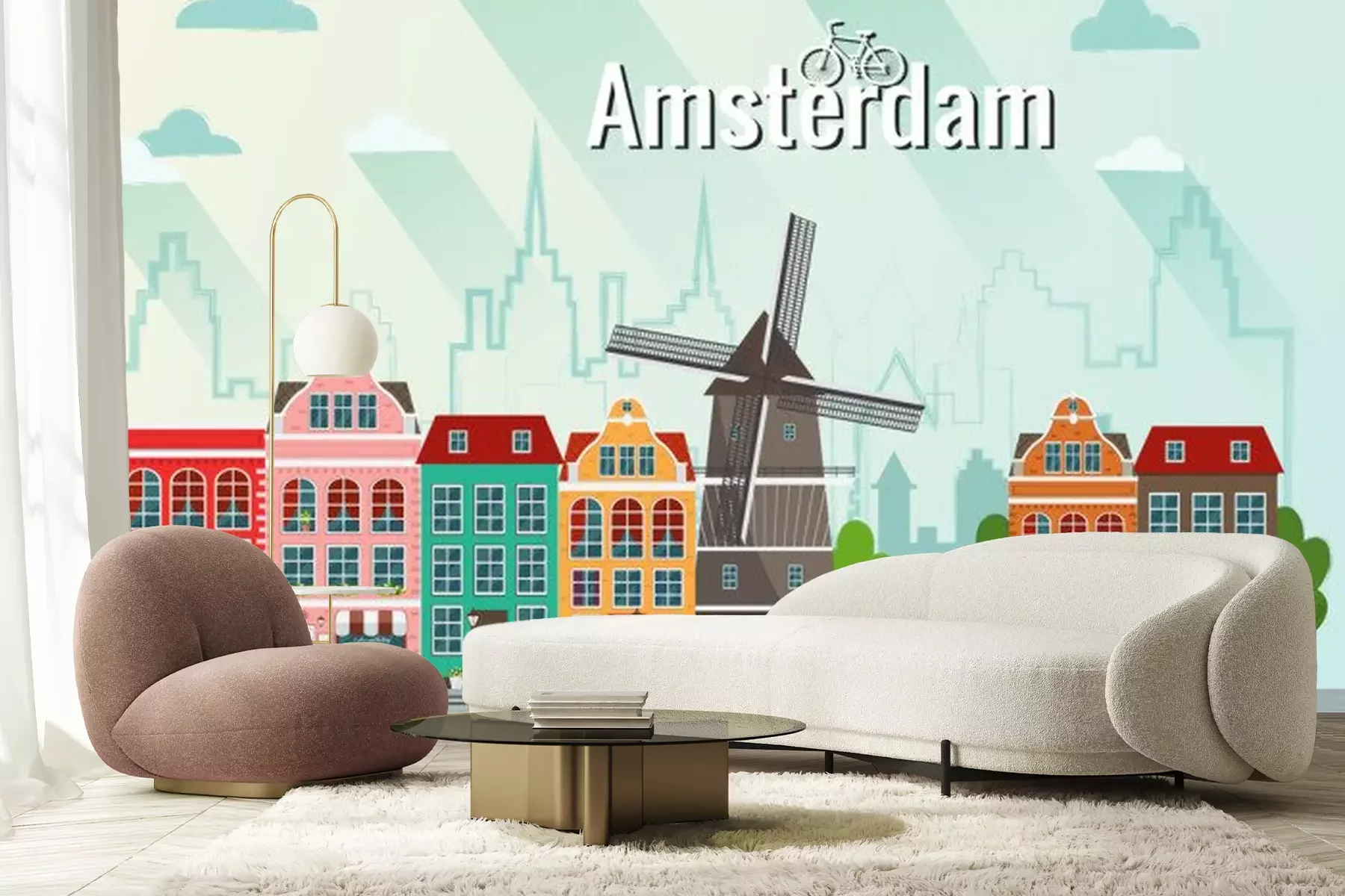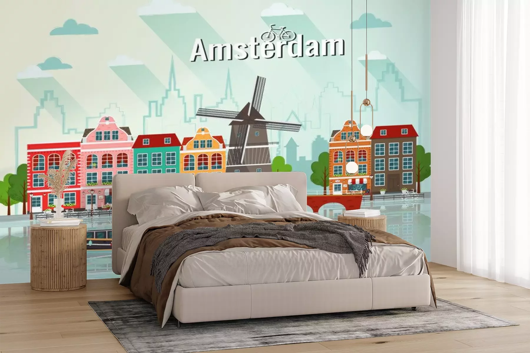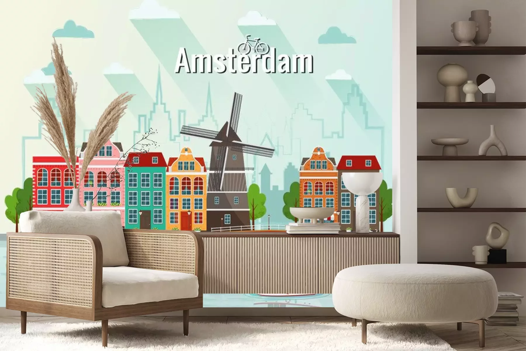 Sticker Vektor-Illustration von Amsterdam. Alte europäische Stadt.