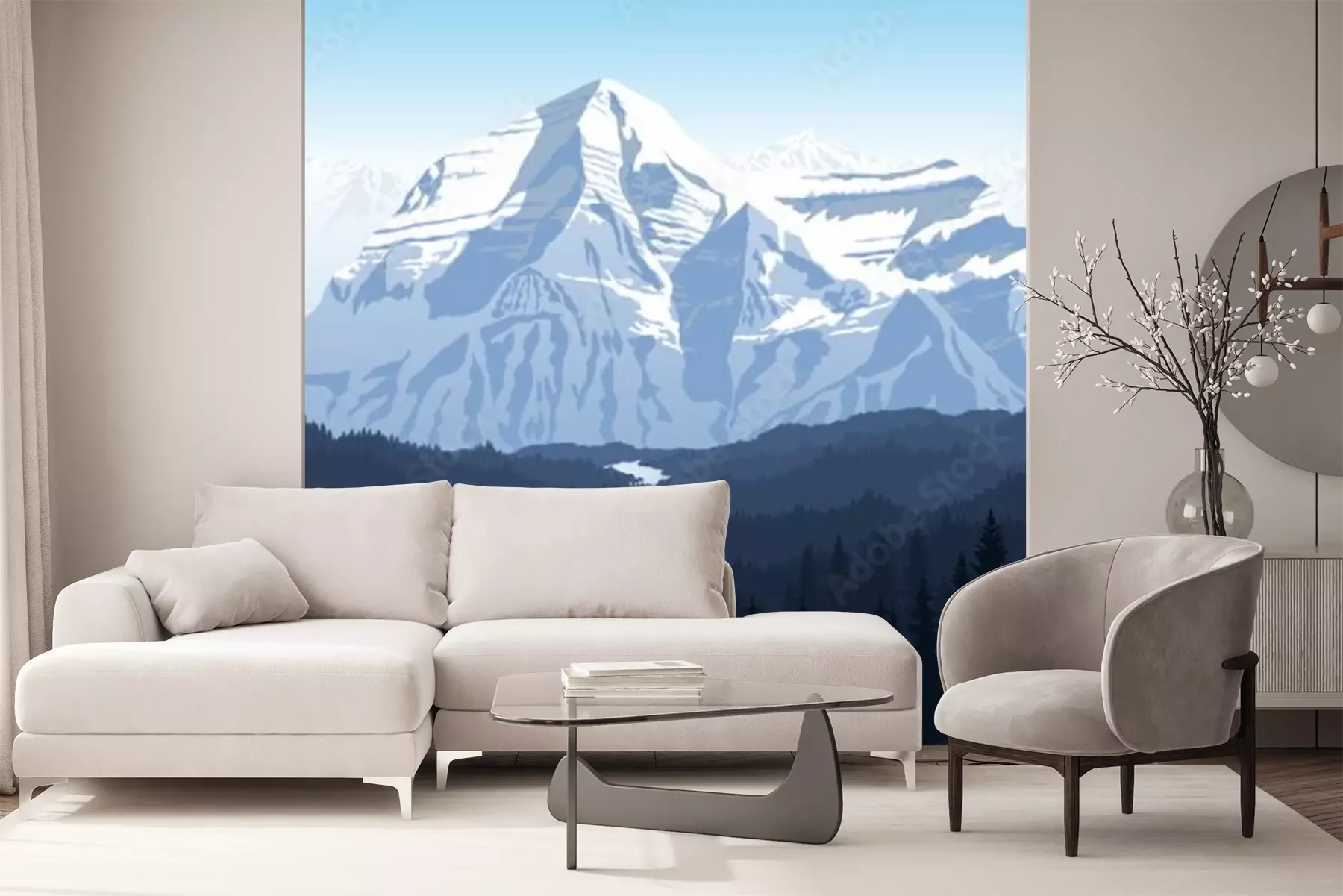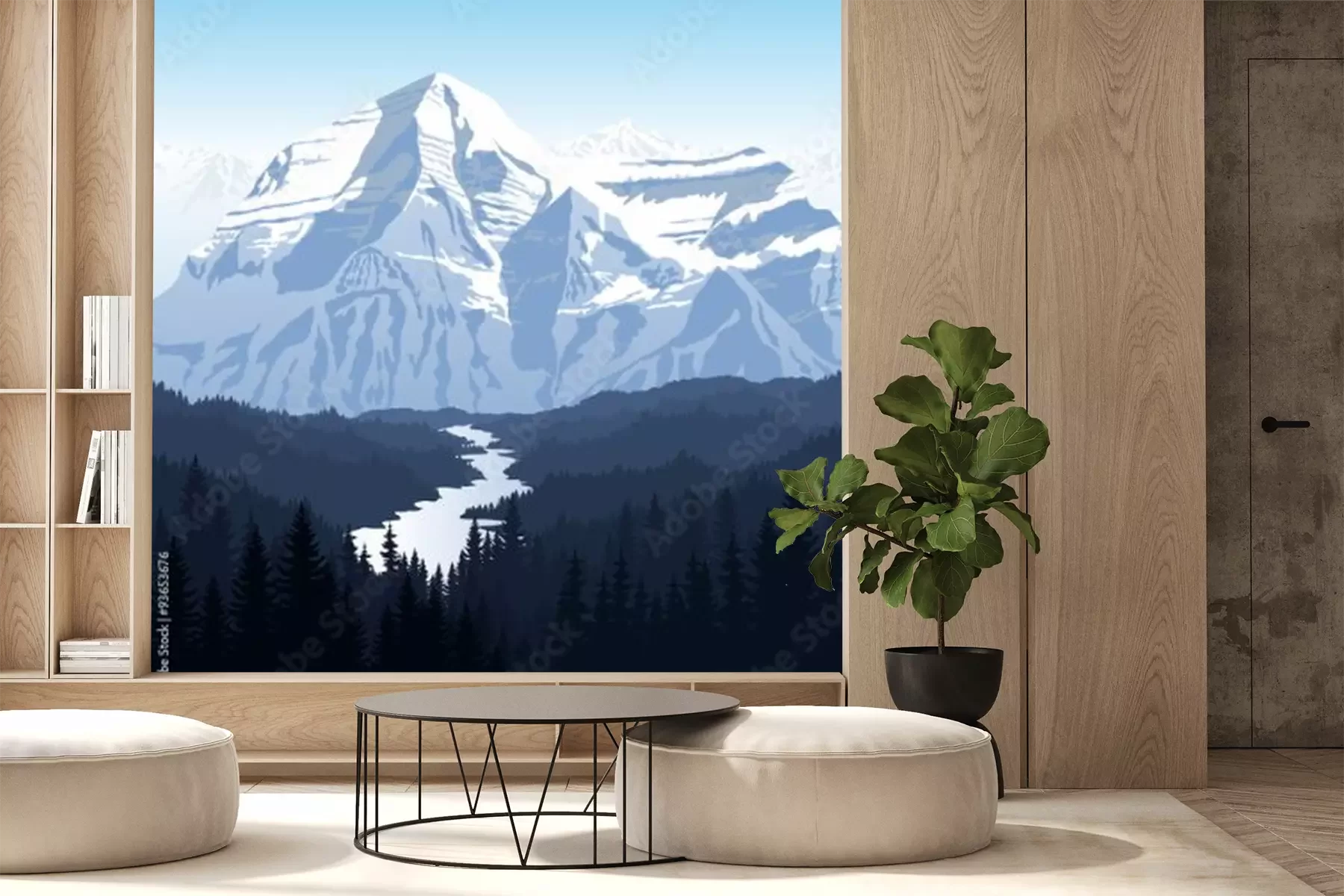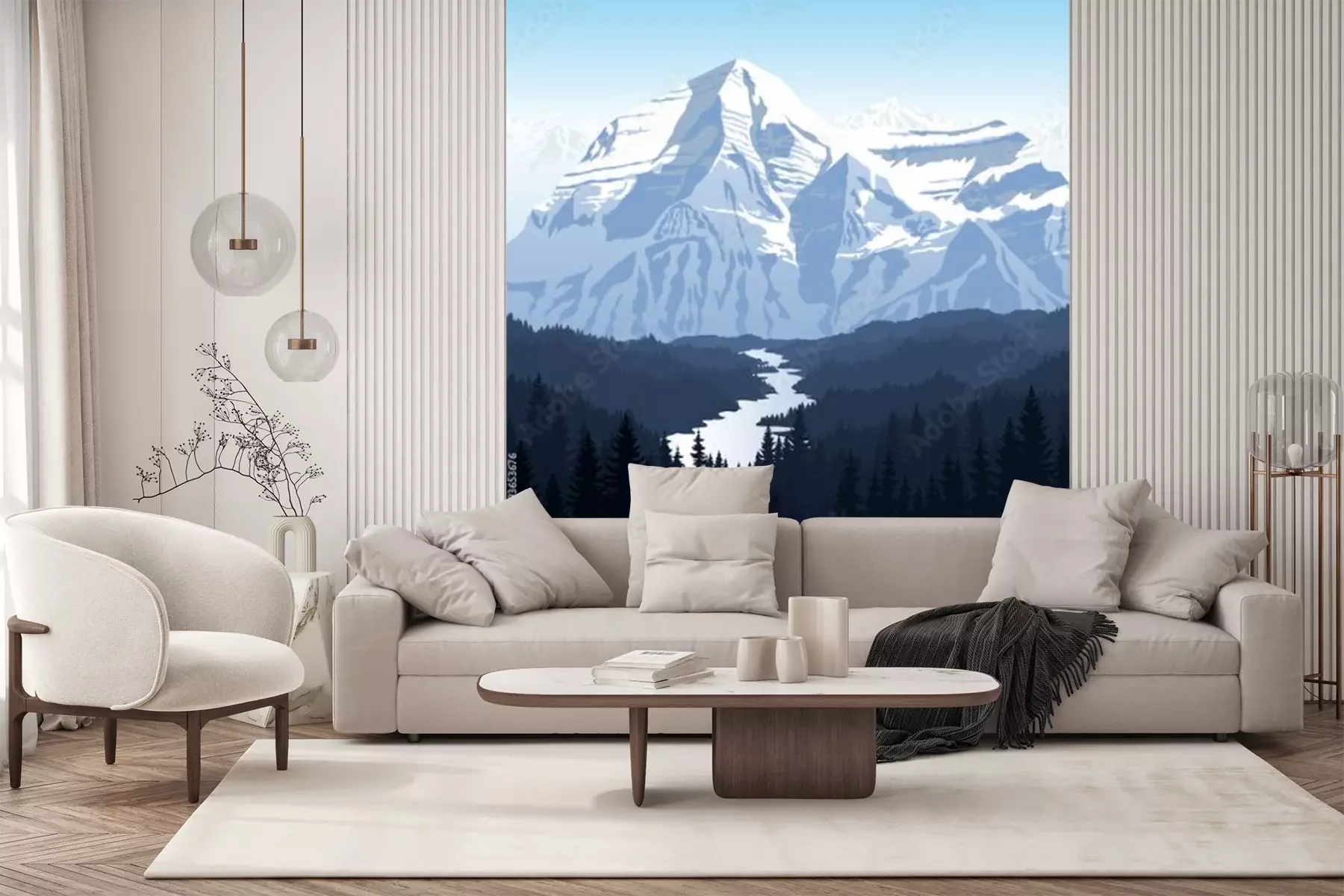 Sticker Vektor-Morgen in schönen Bergen Fluss