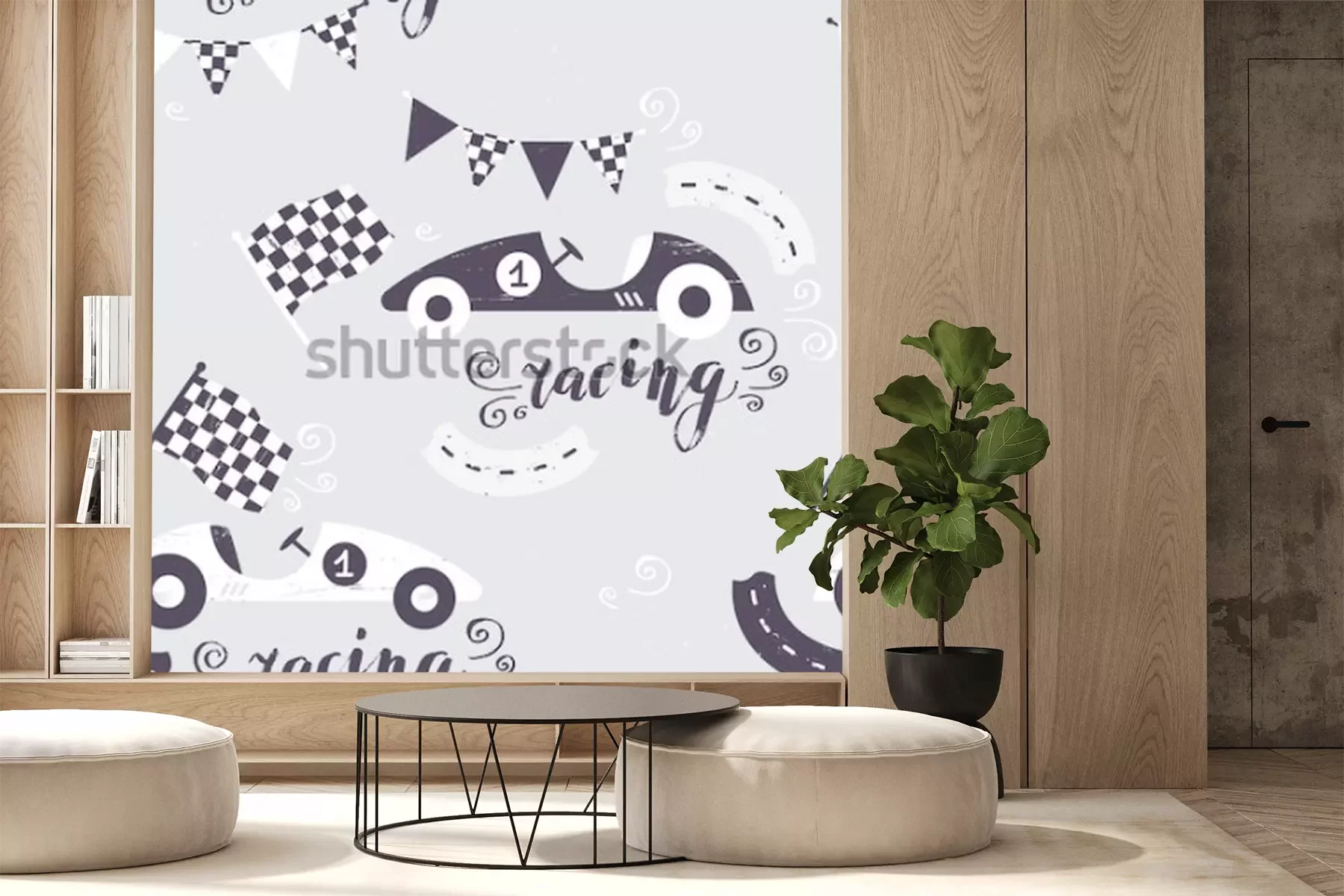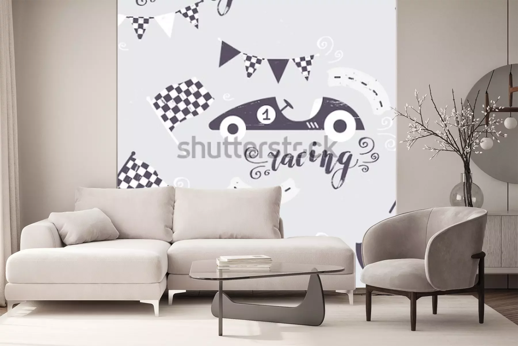 Sticker Vektor nahtloses Retro-Muster, Vintage-Rennwagen