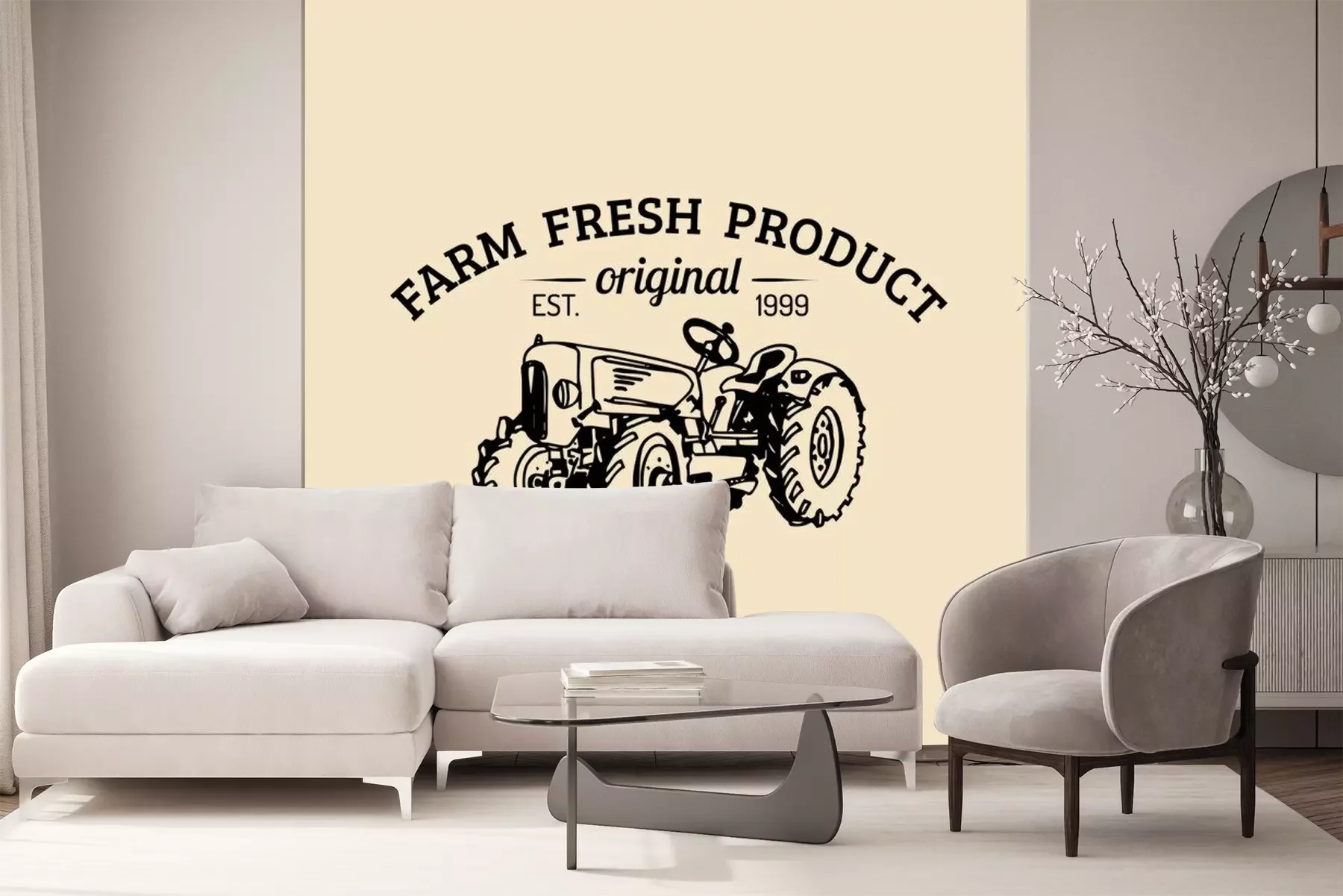 Sticker Vektor Retro Bauernhof frischen logotype.Organic Premium-Qualität Produkte logo.Eco Lebensmittel Zeichen.Vintage Hand skizziert Traktor-Symbol.