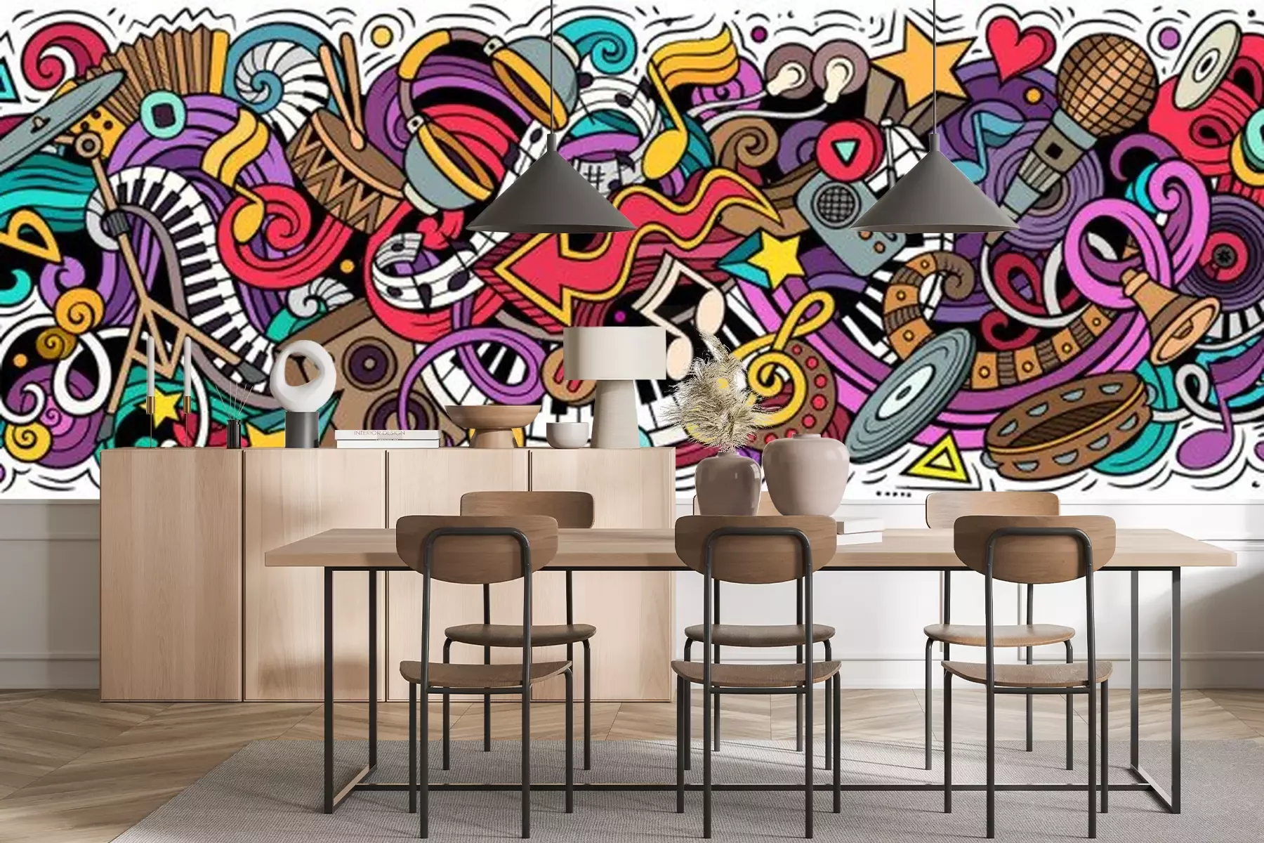 Noten und Instrumente bunte KompositionProblemlose Lieferung durch vertrauenswürdige Spediteure