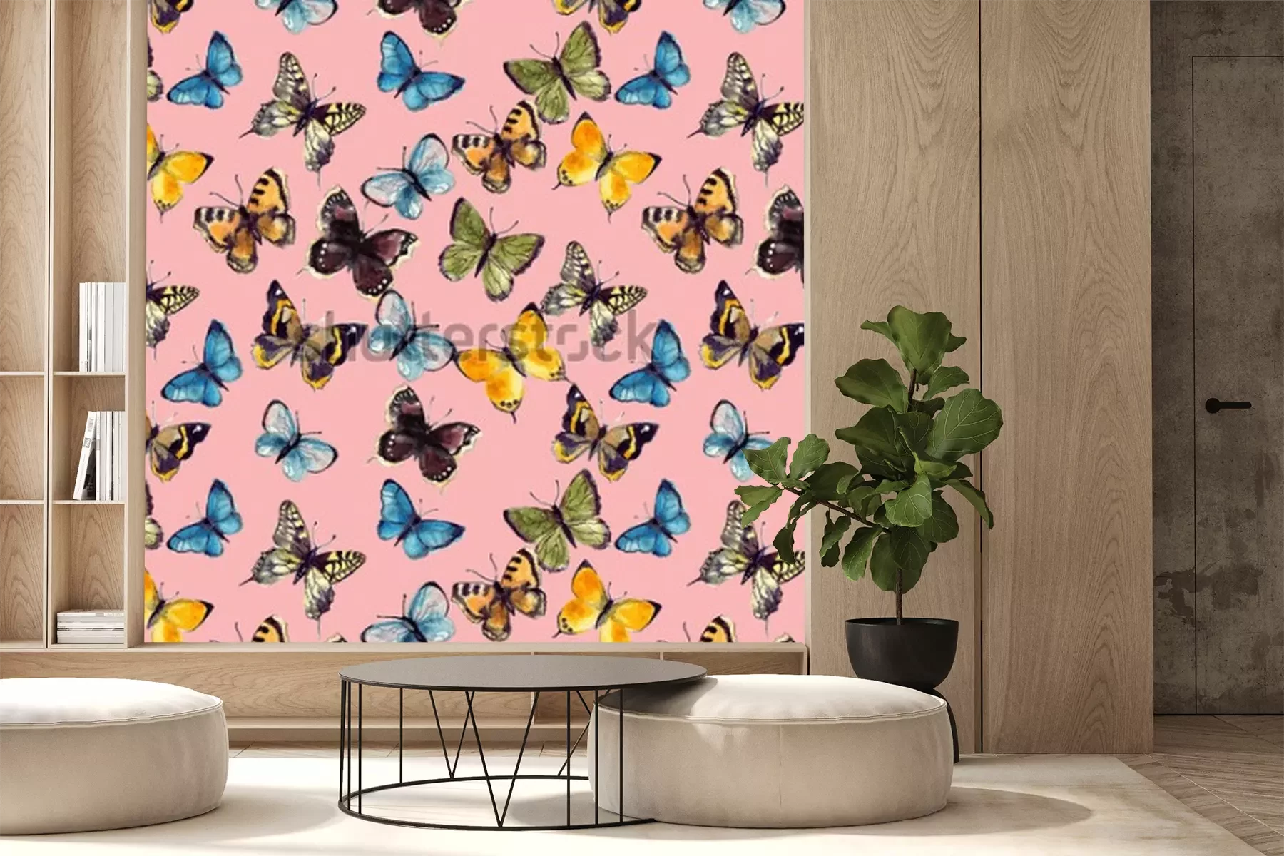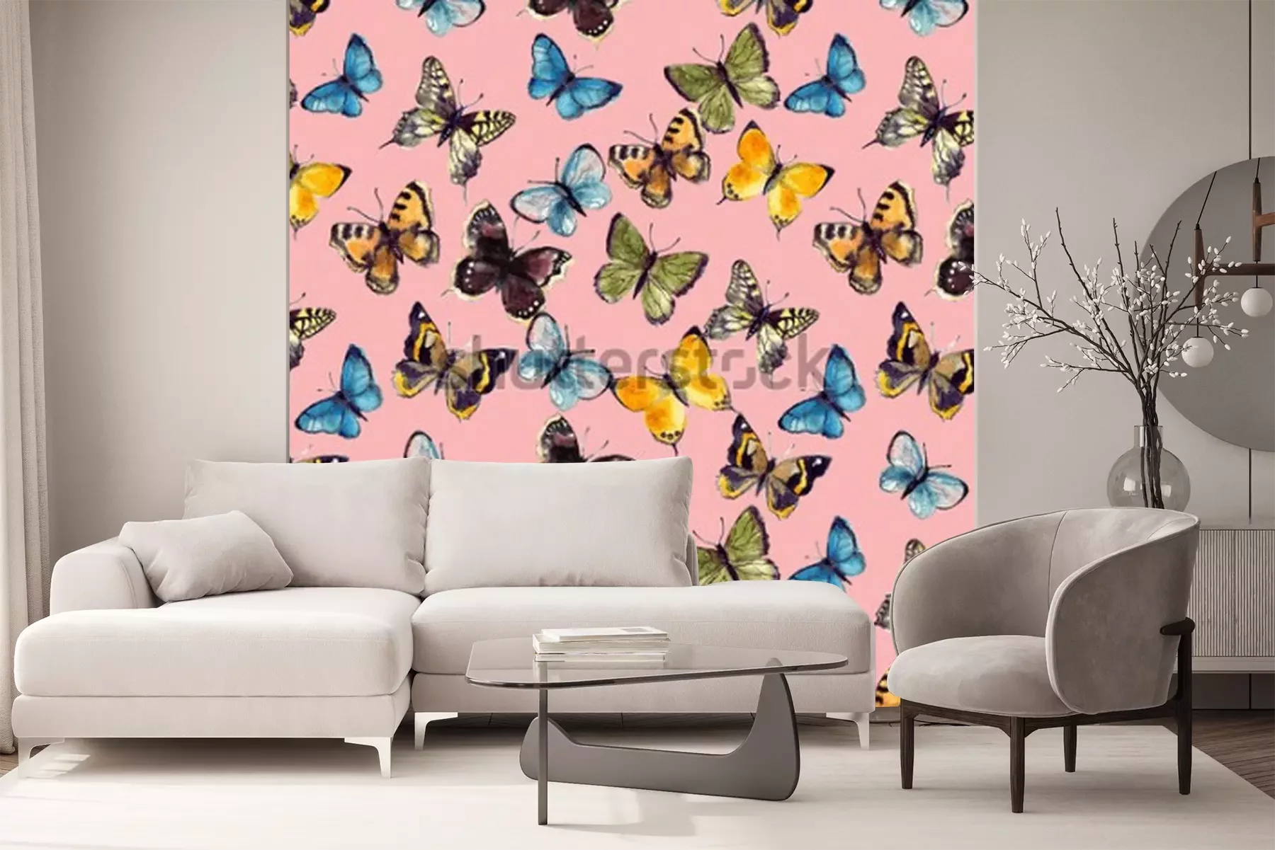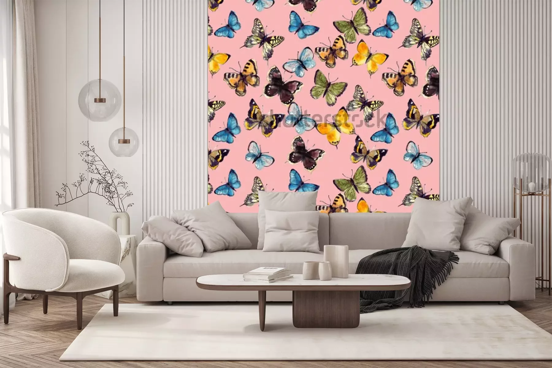 Sticker Verschiedenfarbige Schmetterlinge auf rosa Hintergrund