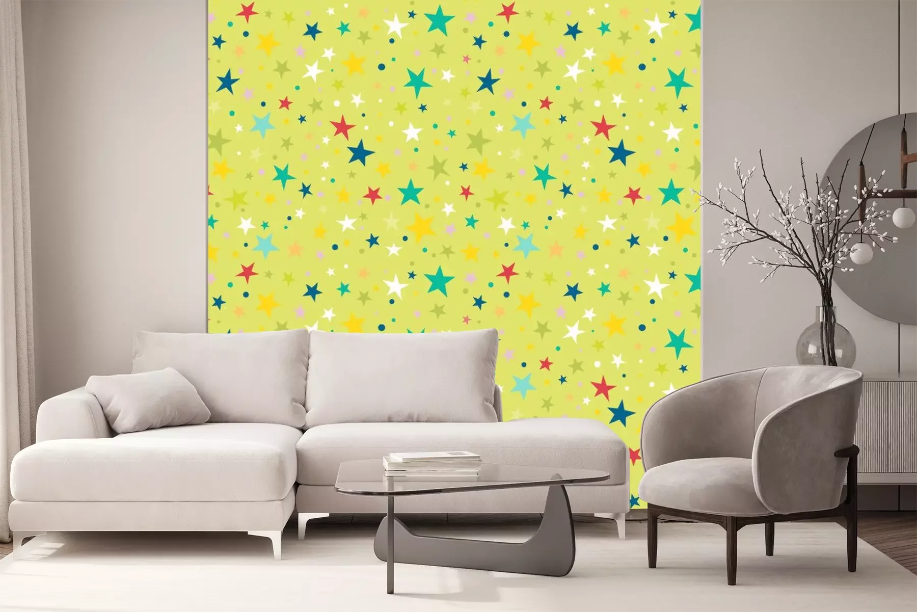 Sticker Verschiedenfarbige Sterne auf grünem Hintergrund Grafik