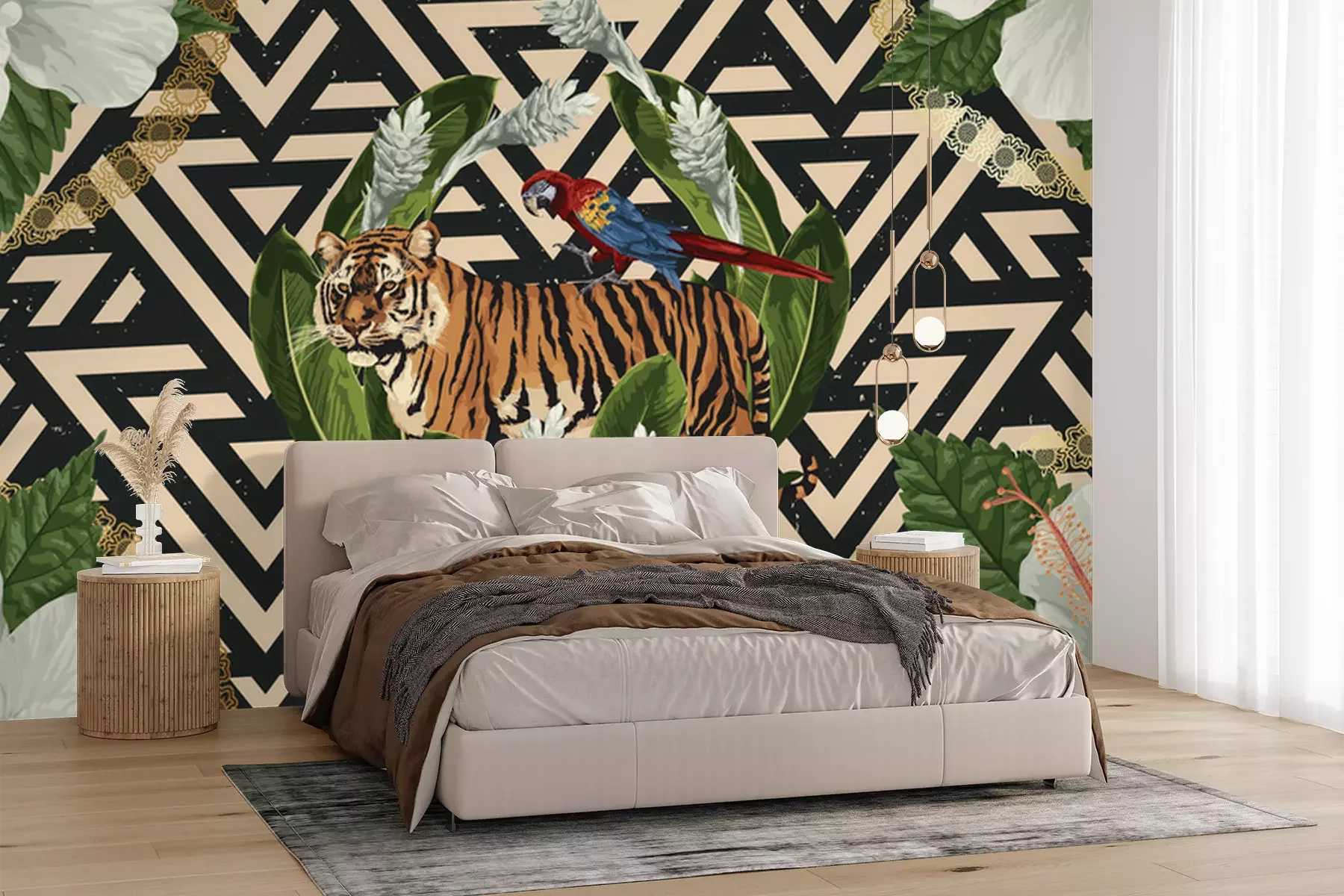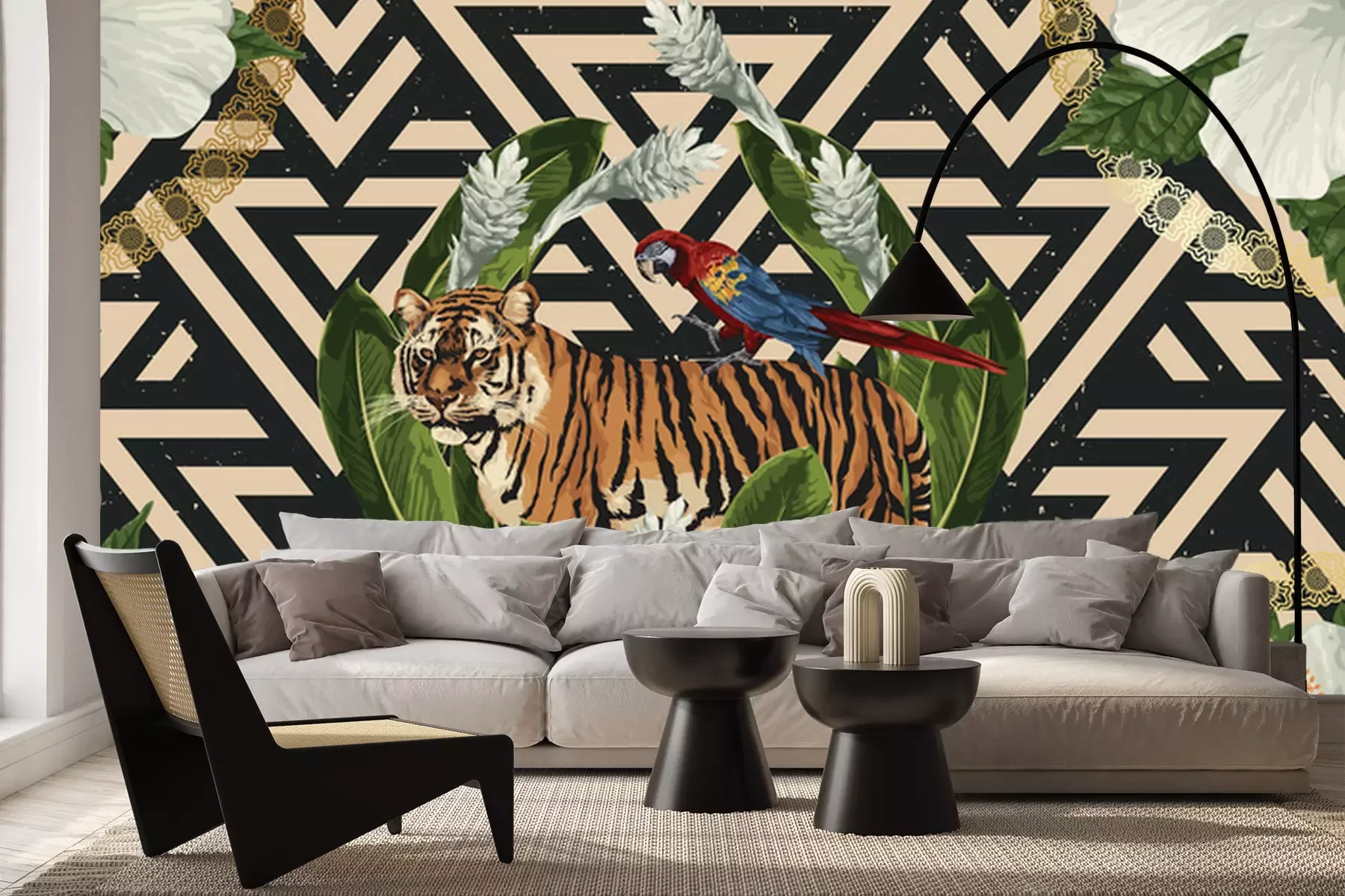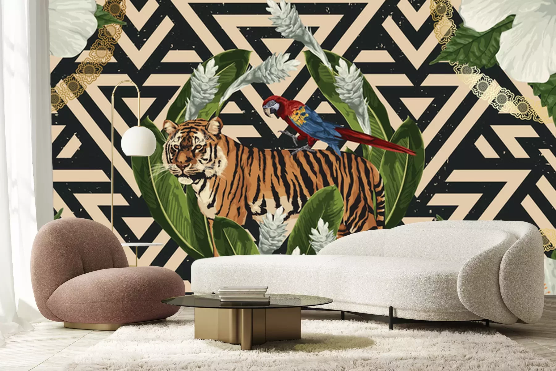 Sticker Vintage Beautiful and trendy Seamless Tropical Pattern design in super high resolution. Pattern Decoration Texture. Vintage Style Design for Fabric Print, Wallpaper Background.