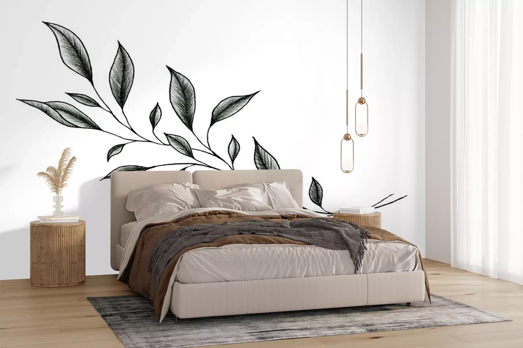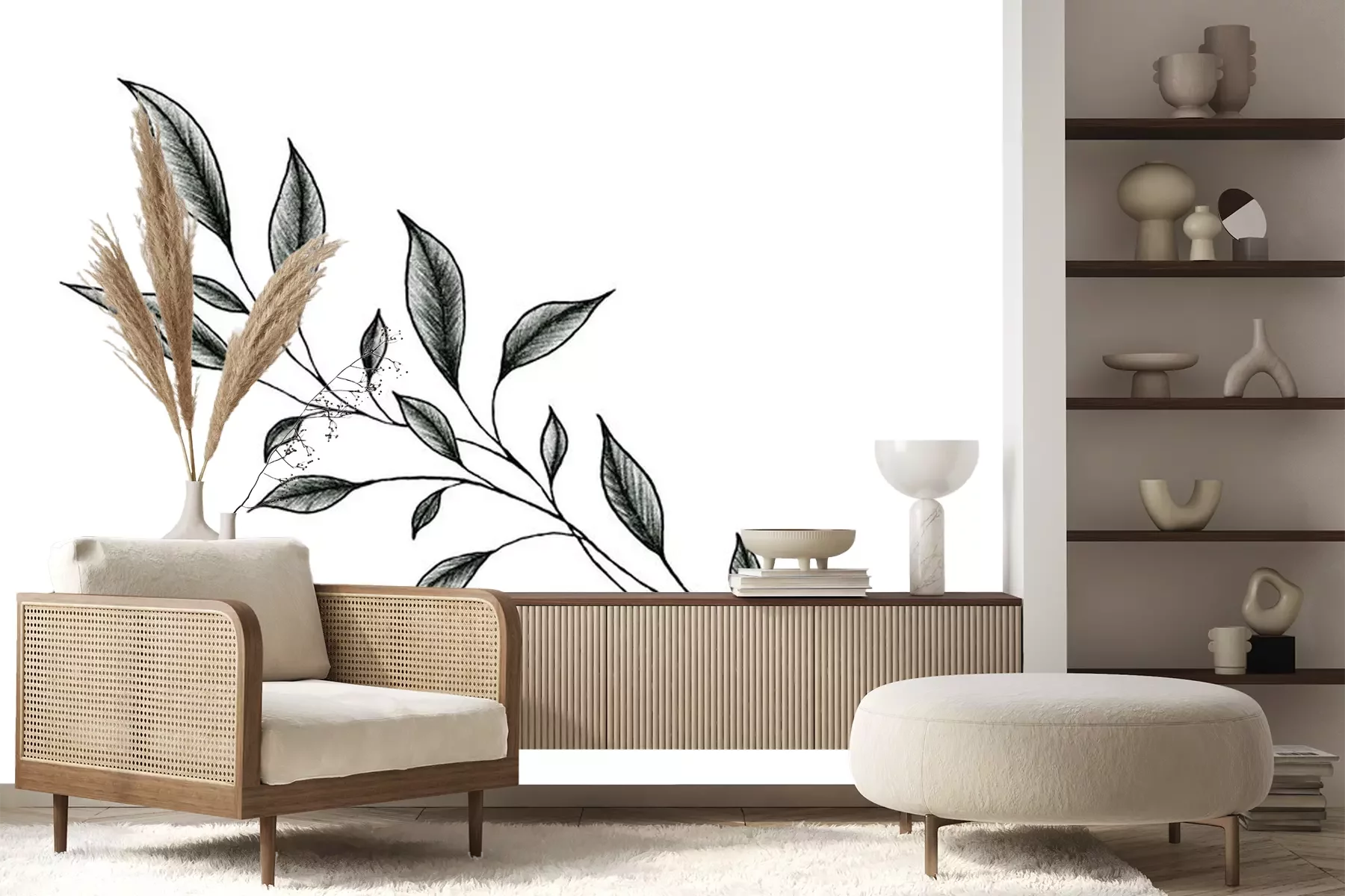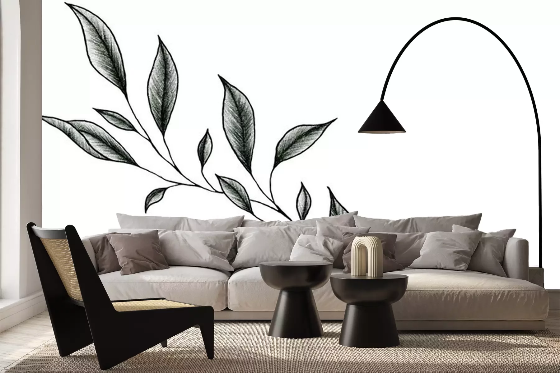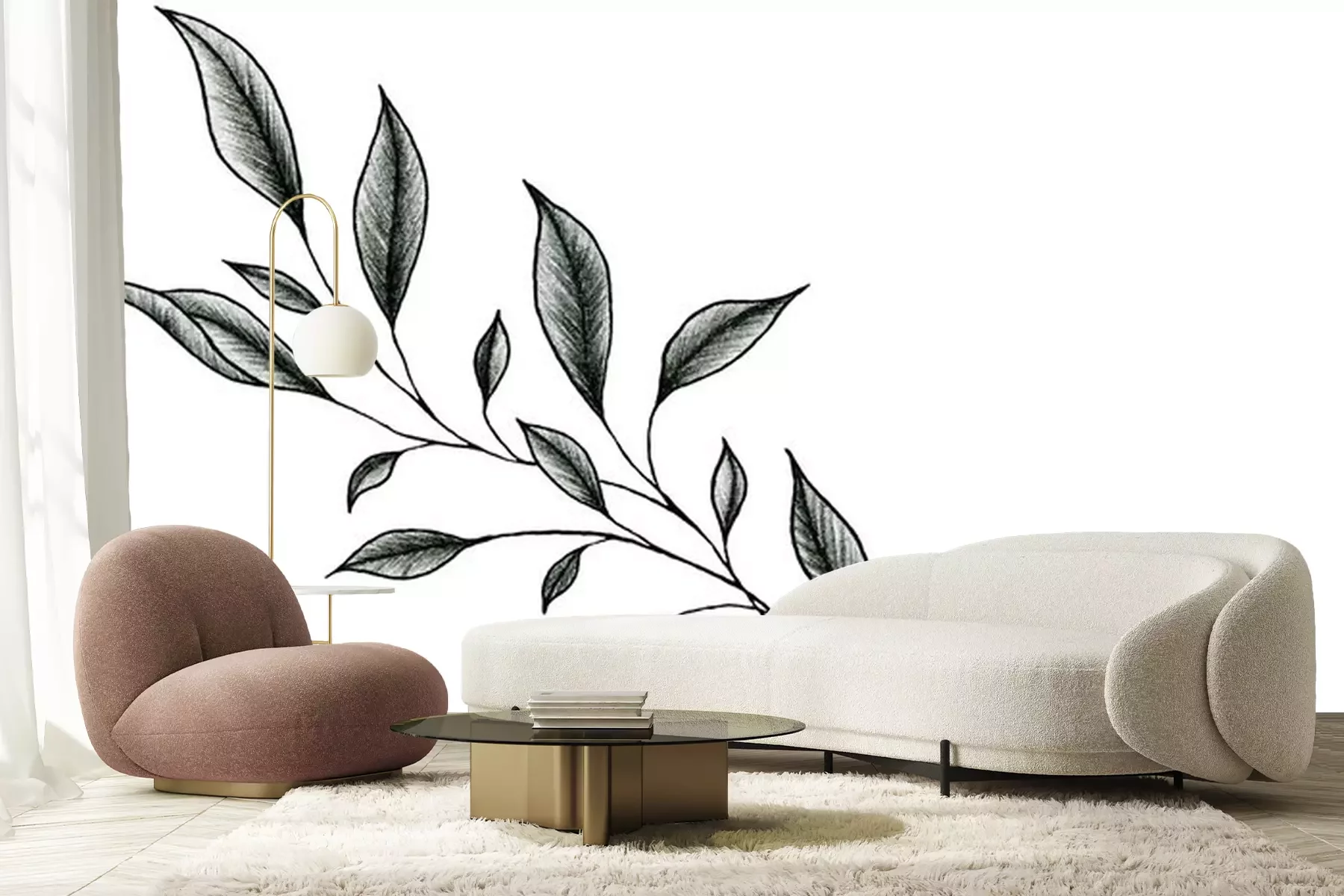 Sticker vintage leaf drawing isolated on white, ink  hand drawn botanical illustration of a plant branch, black floral sketch