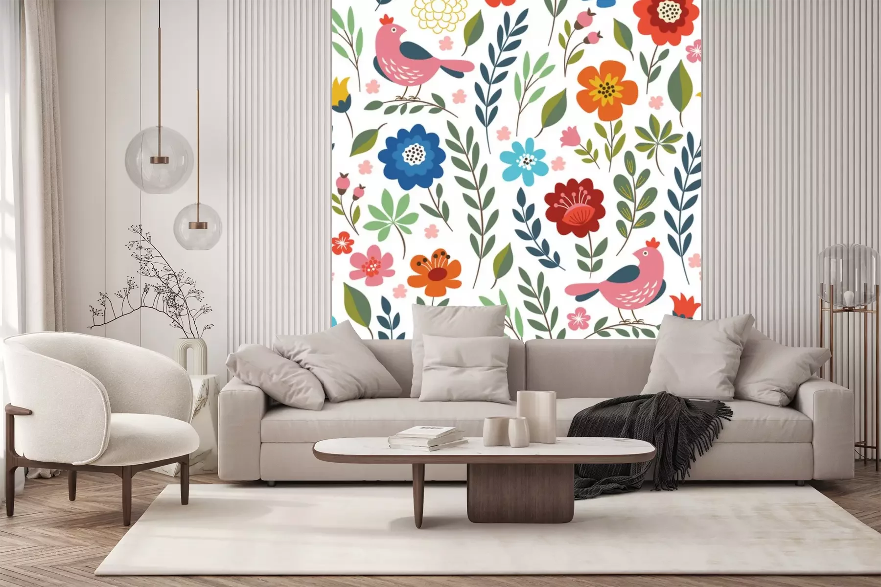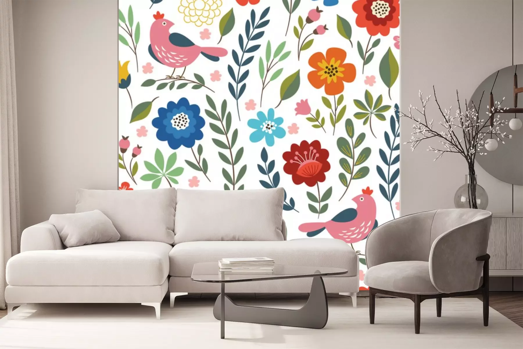 Sticker Vögel und Pflanzen im Folklorestil