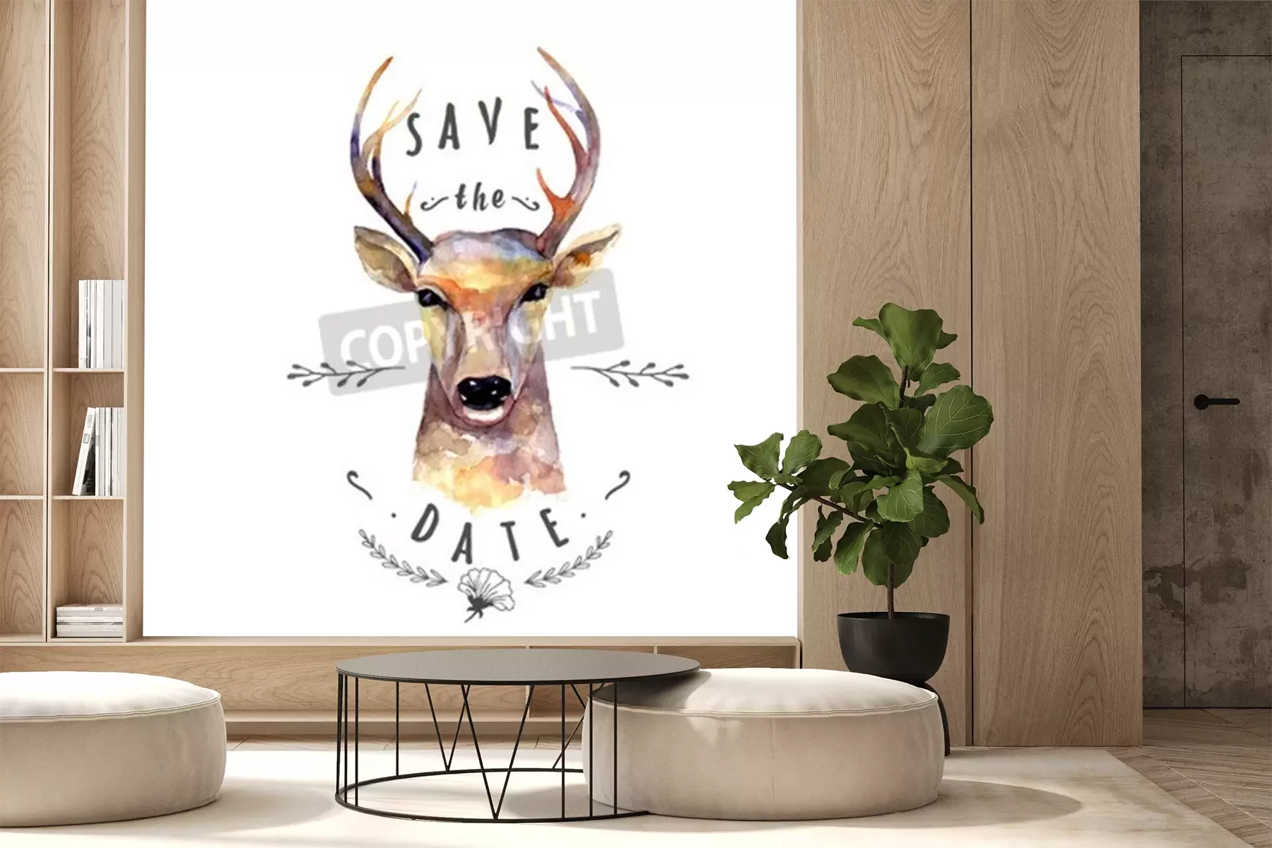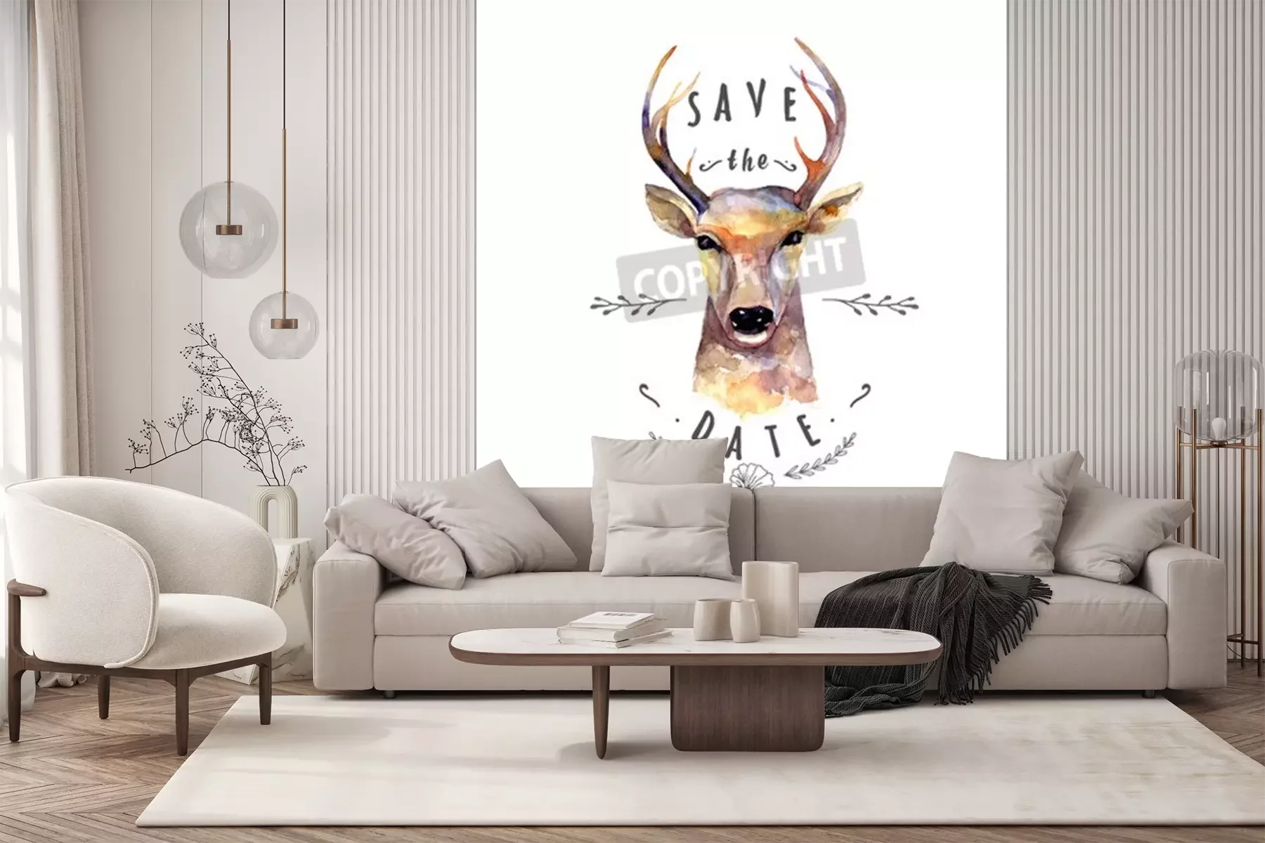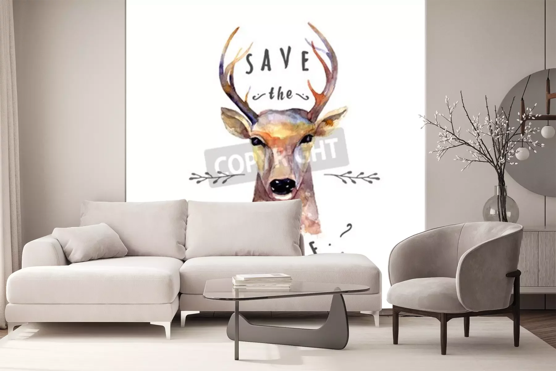 Sticker Waldtiere Hirschkopf Aquarell Grundfarben