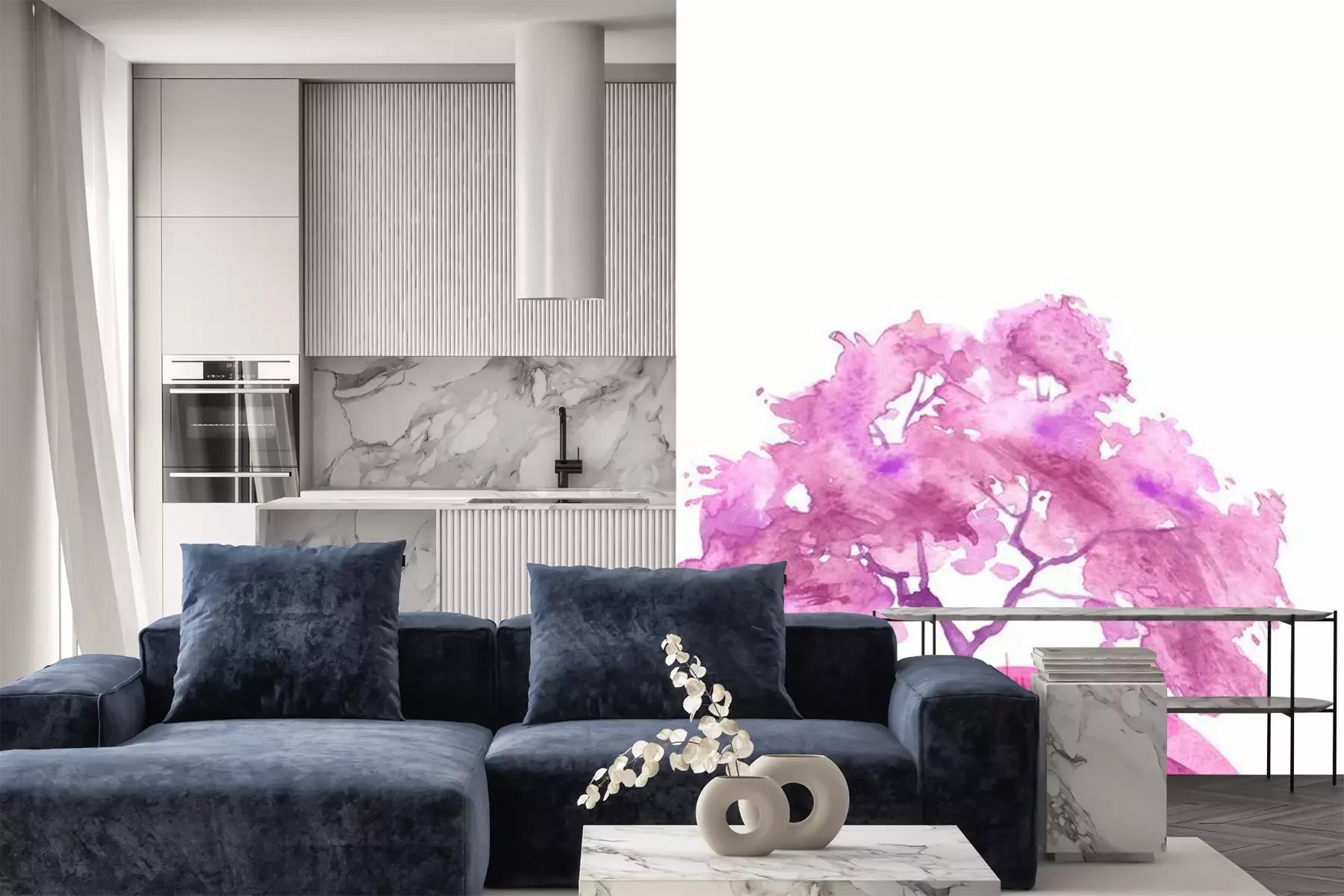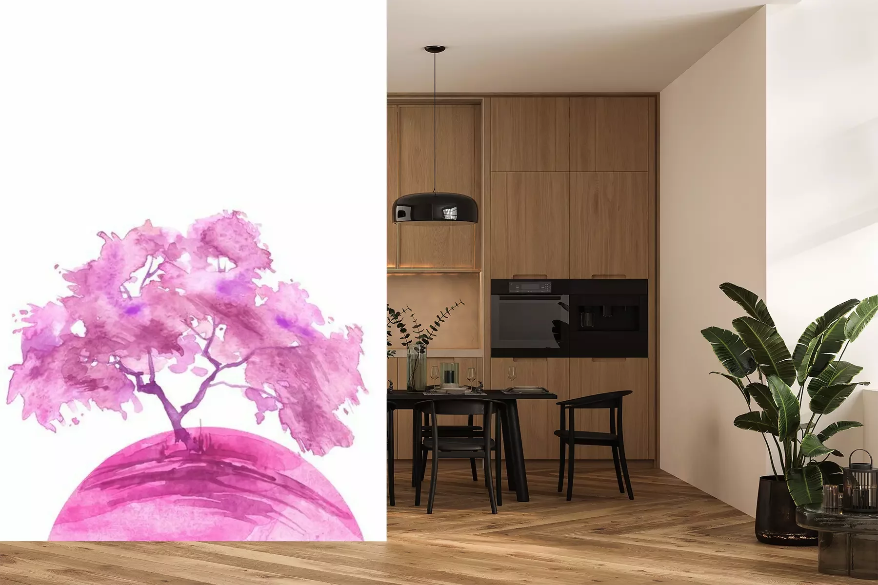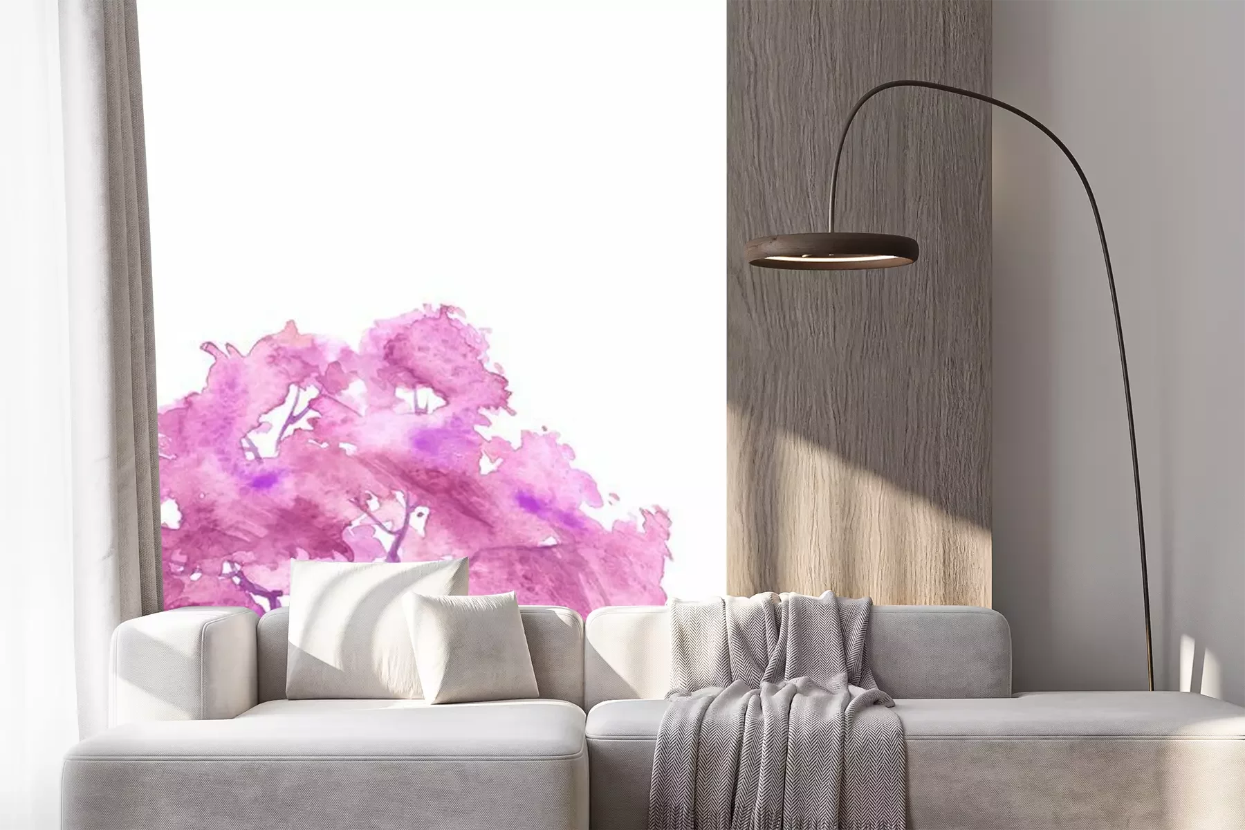 Sticker Watercolor abstract round spot, blot on white isolated background. purple, pink trees on the planet Earth. purple, pink colors. Ecological abstract art illustration. Blooming pink tree. Sakura, oak,