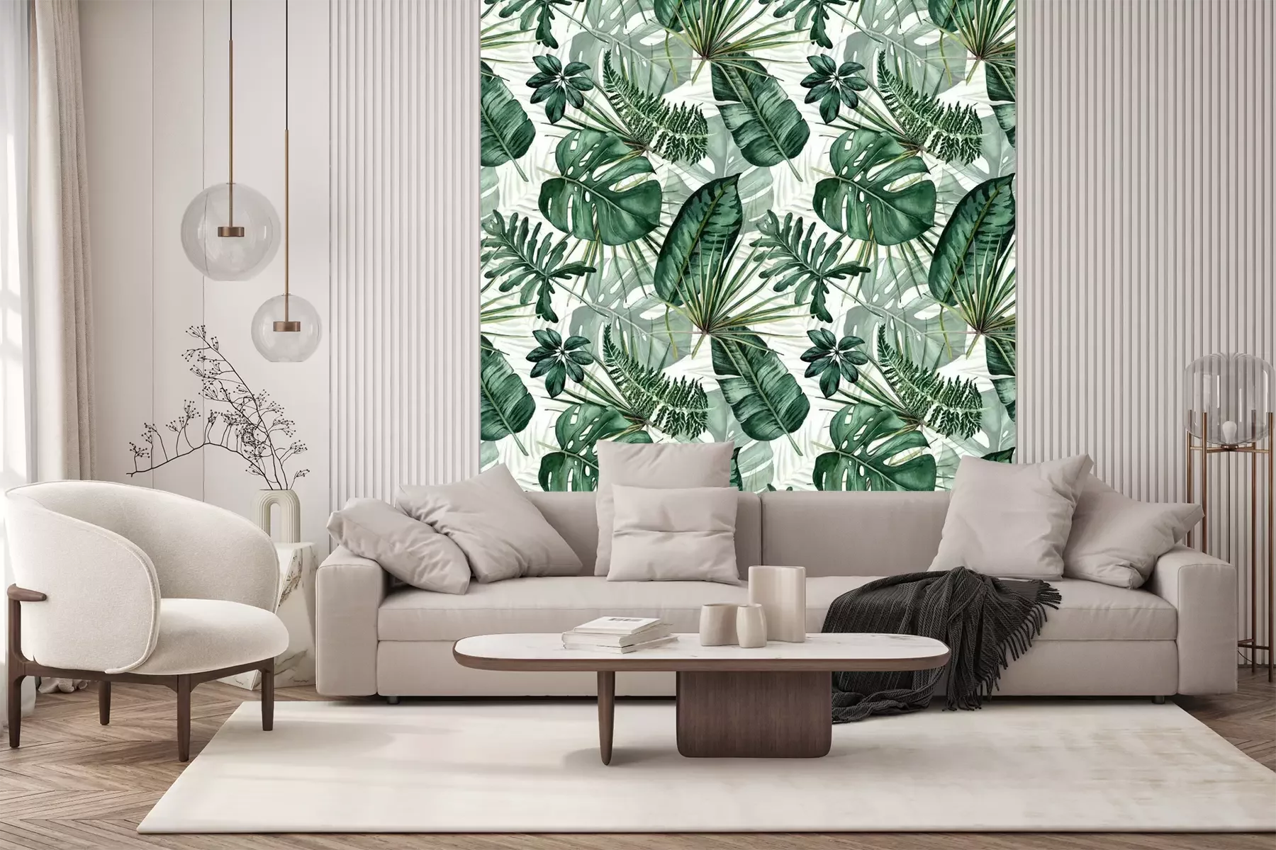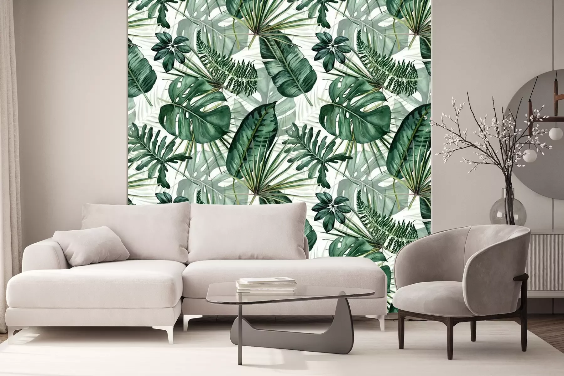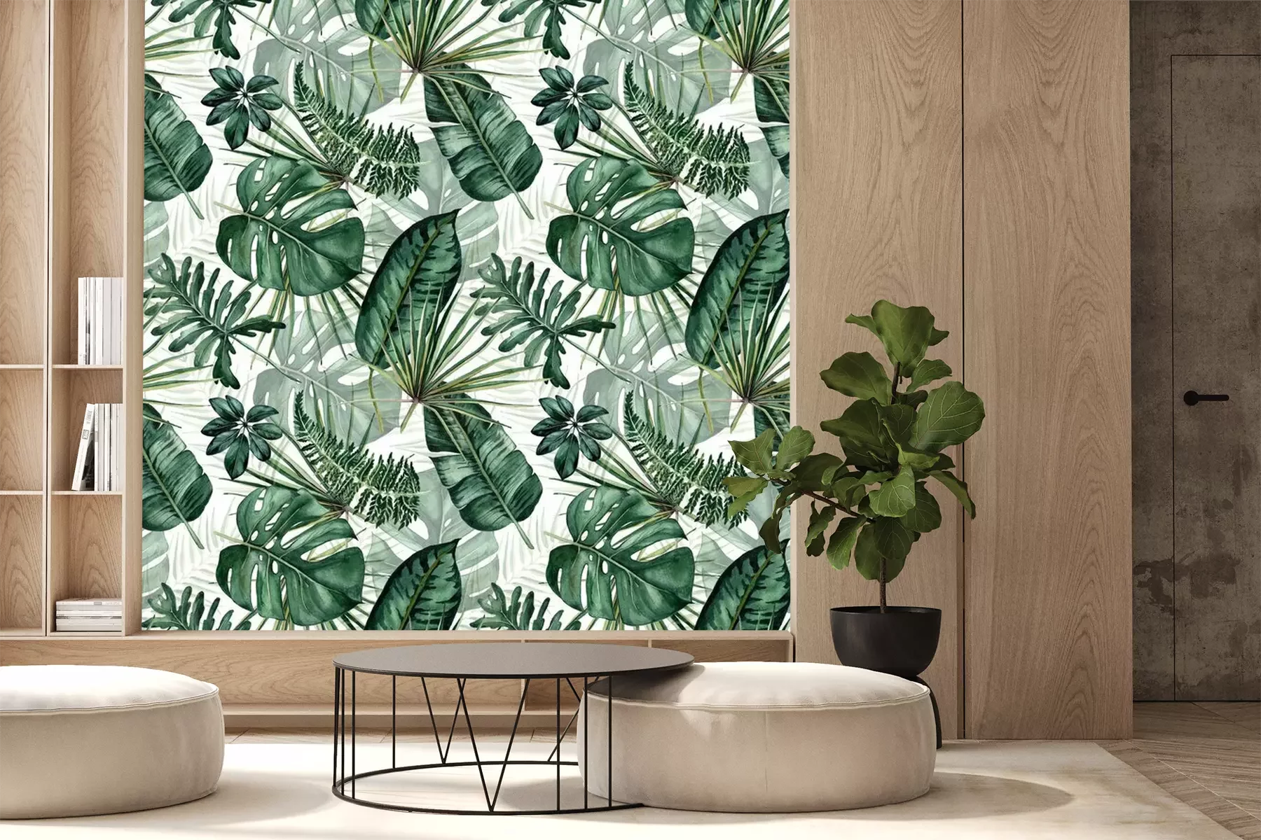 Sticker Watercolor seamless pattern with tropical leaves: palms, monstera, passion fruit.