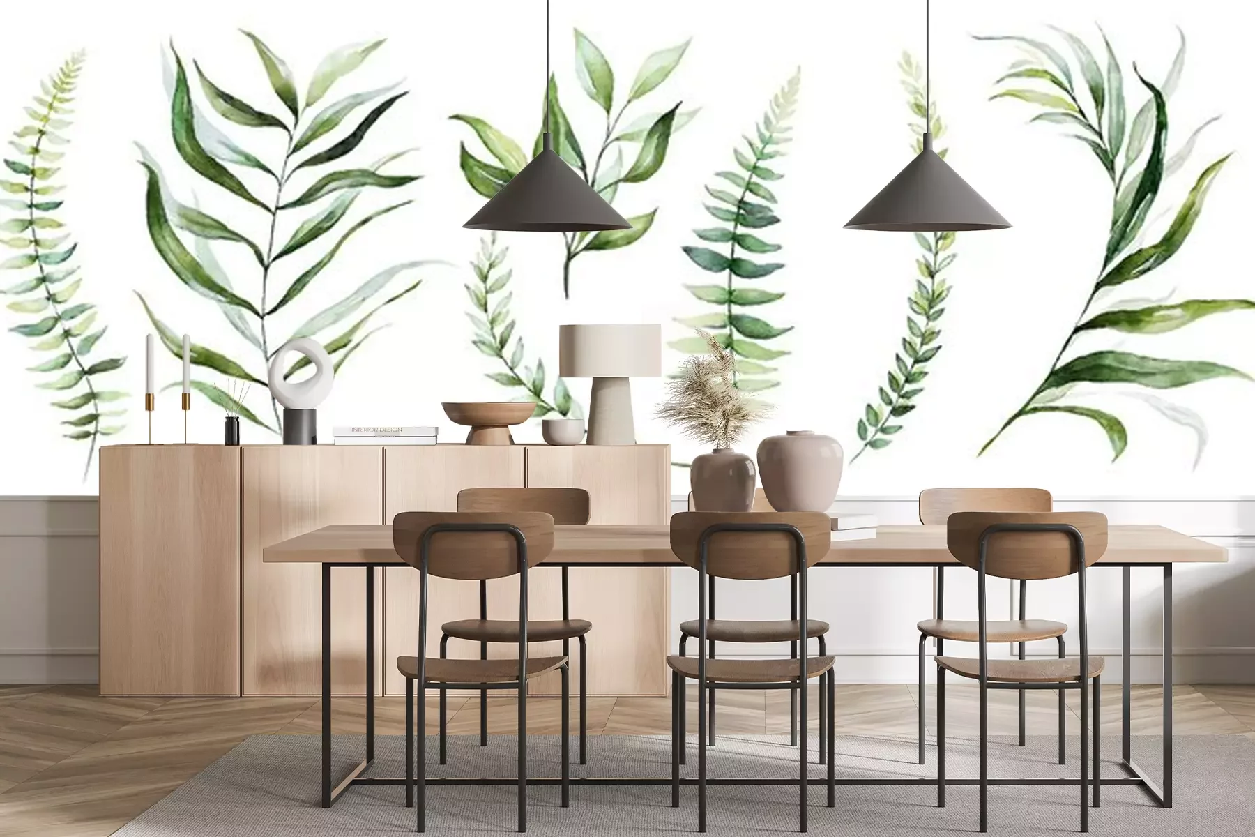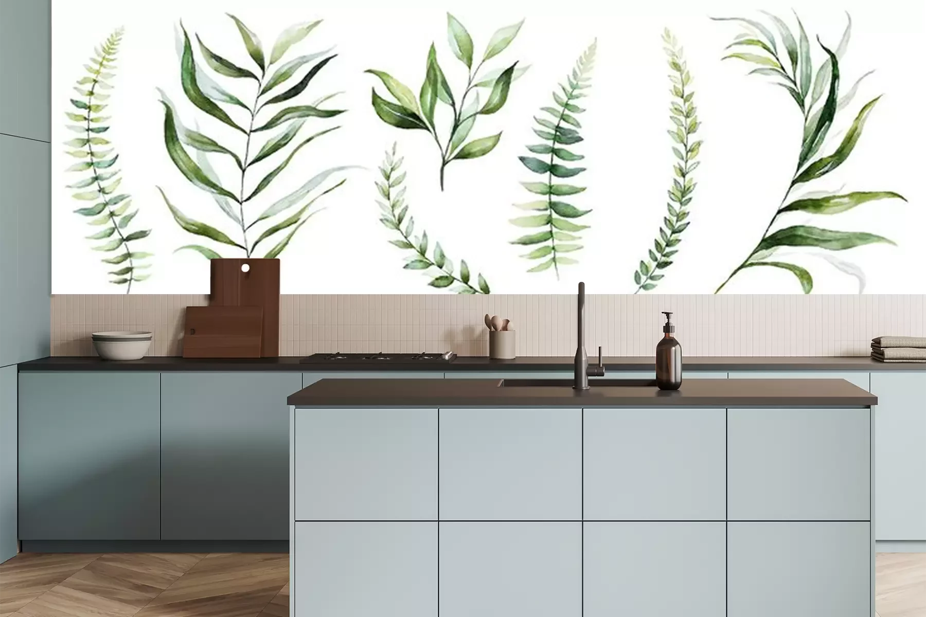 Sticker Watercolor tropical floral illustration set with green leaves for wedding stationary, greetings, wallpapers, fashion, backgrounds, textures, DIY, wrappers, postcards, logo, etc.