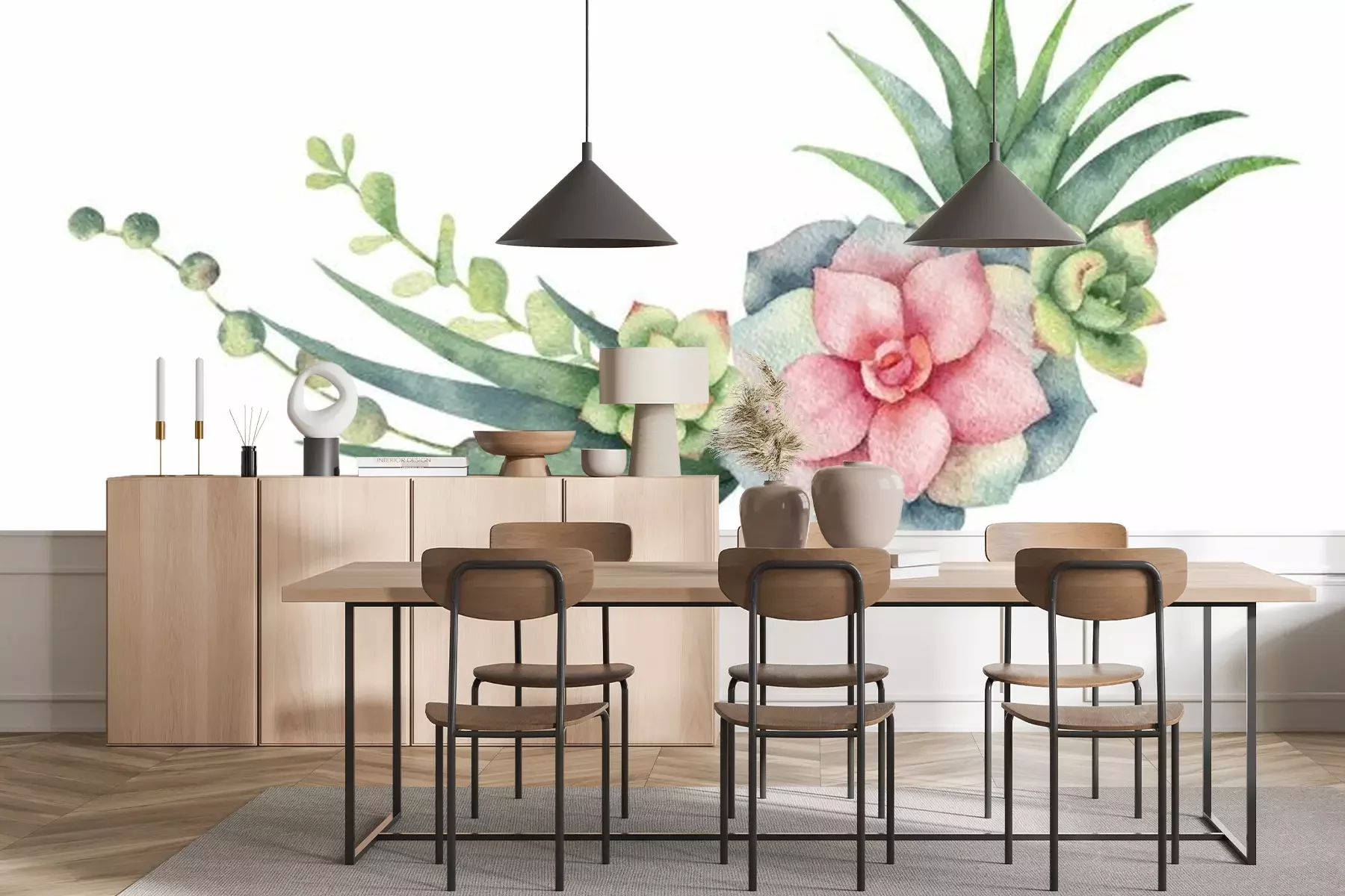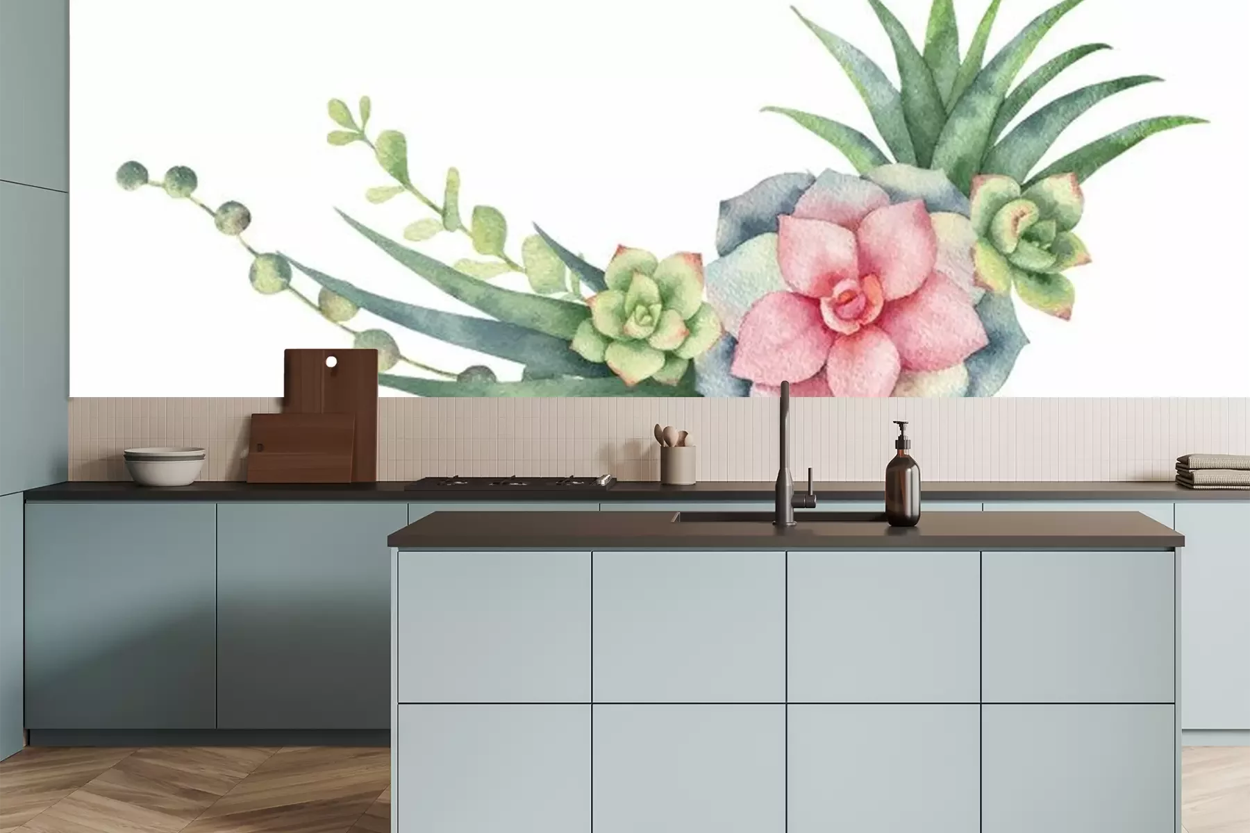 Sticker Watercolor vector wreath of cacti and succulent plants isolated on white background.