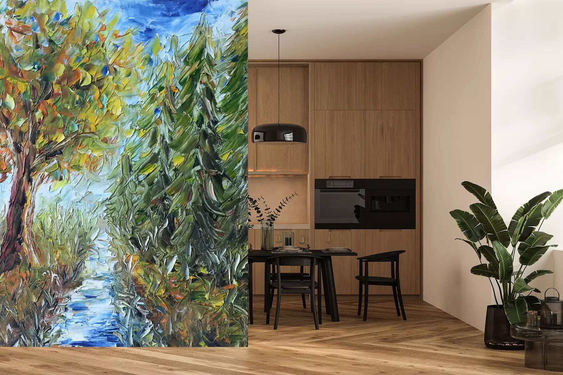 Straße im Sommer Wald, ÖlgemäldeProblemlose Lieferung durch vertrauenswürdige Spediteure