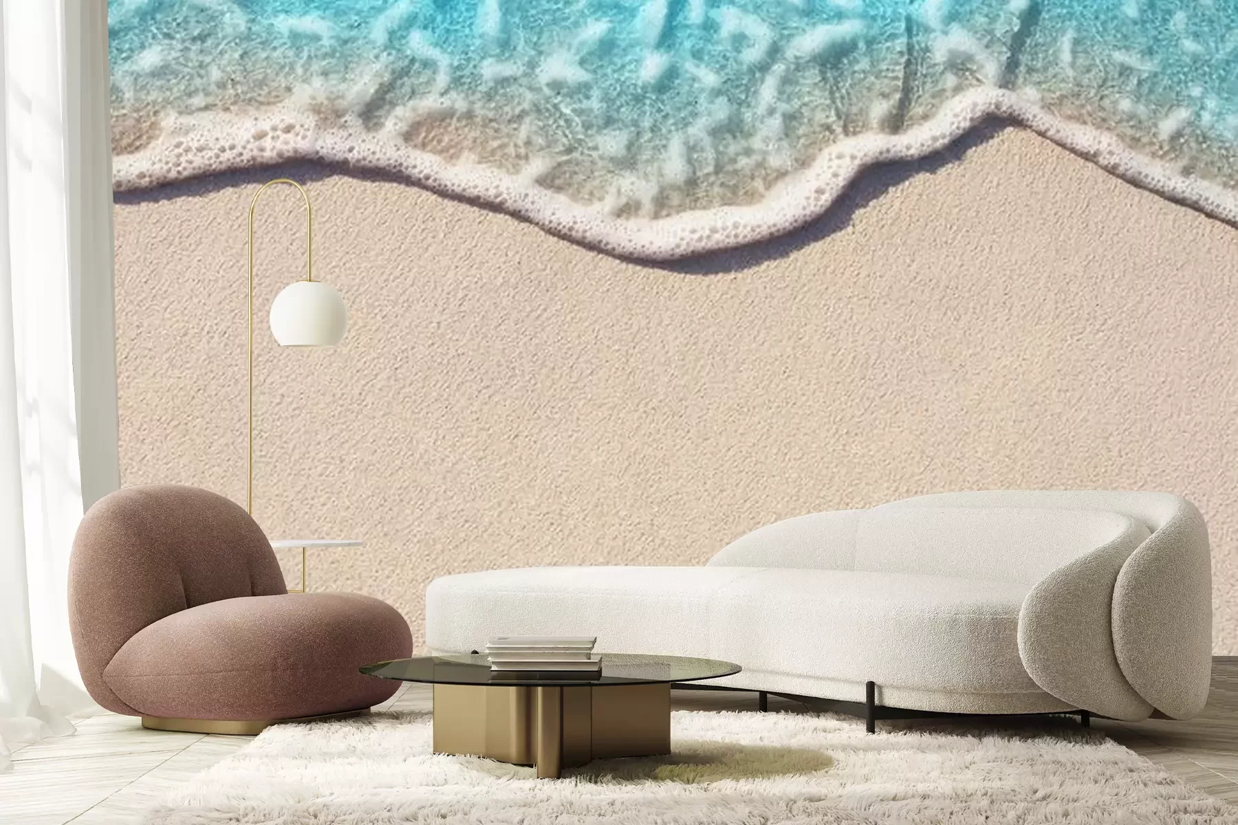 Sticker Weiche Ozeanwelle auf dem sandigen Strand, Hintergrund.
