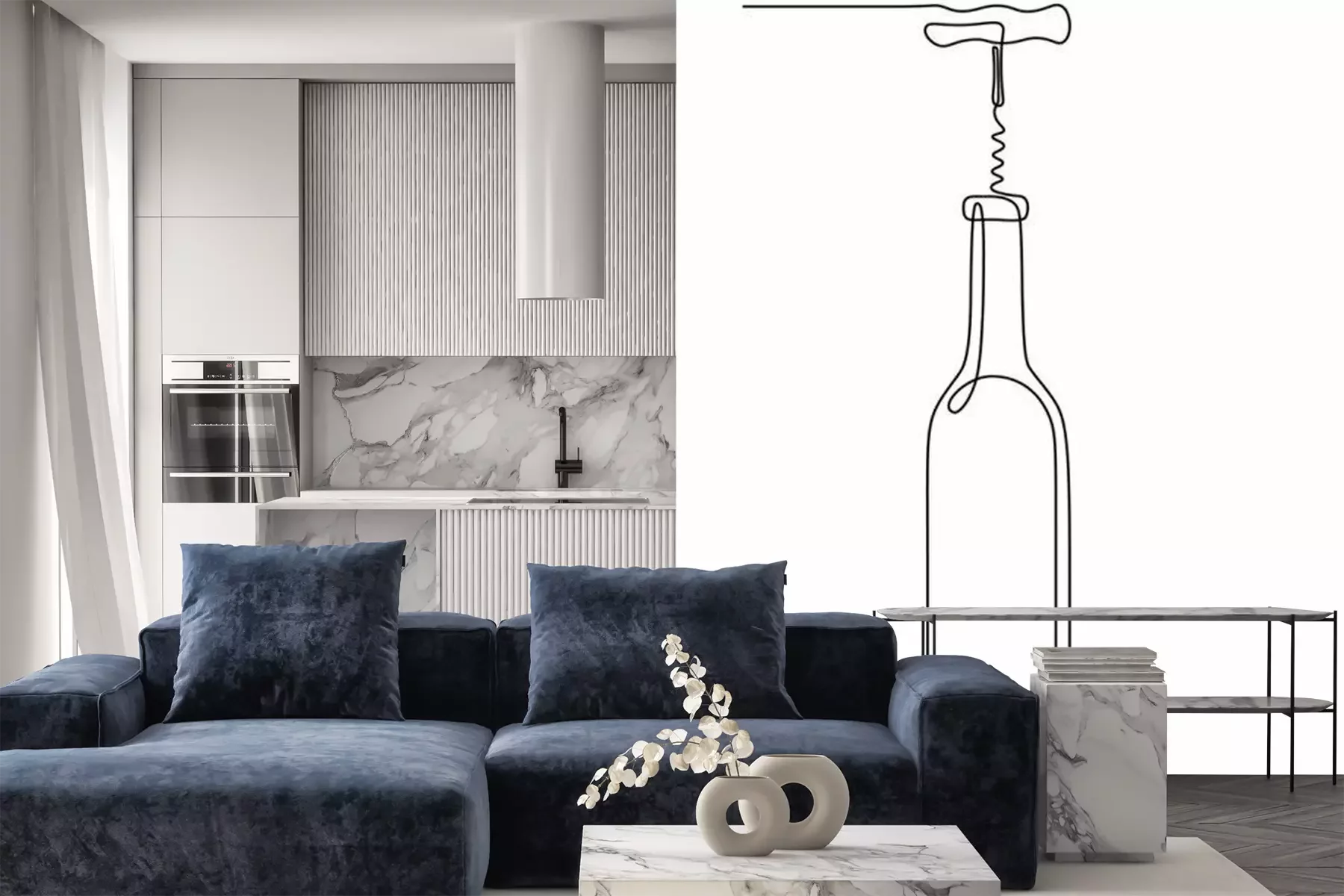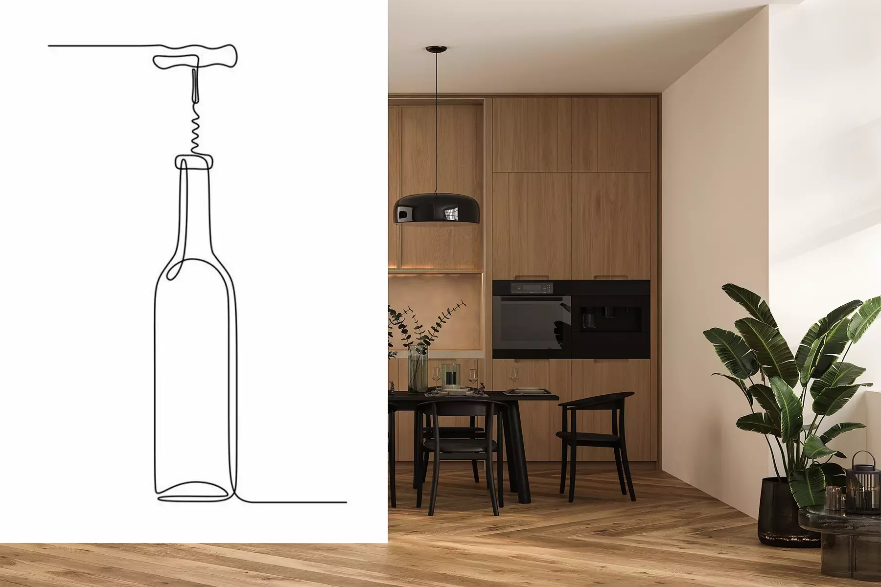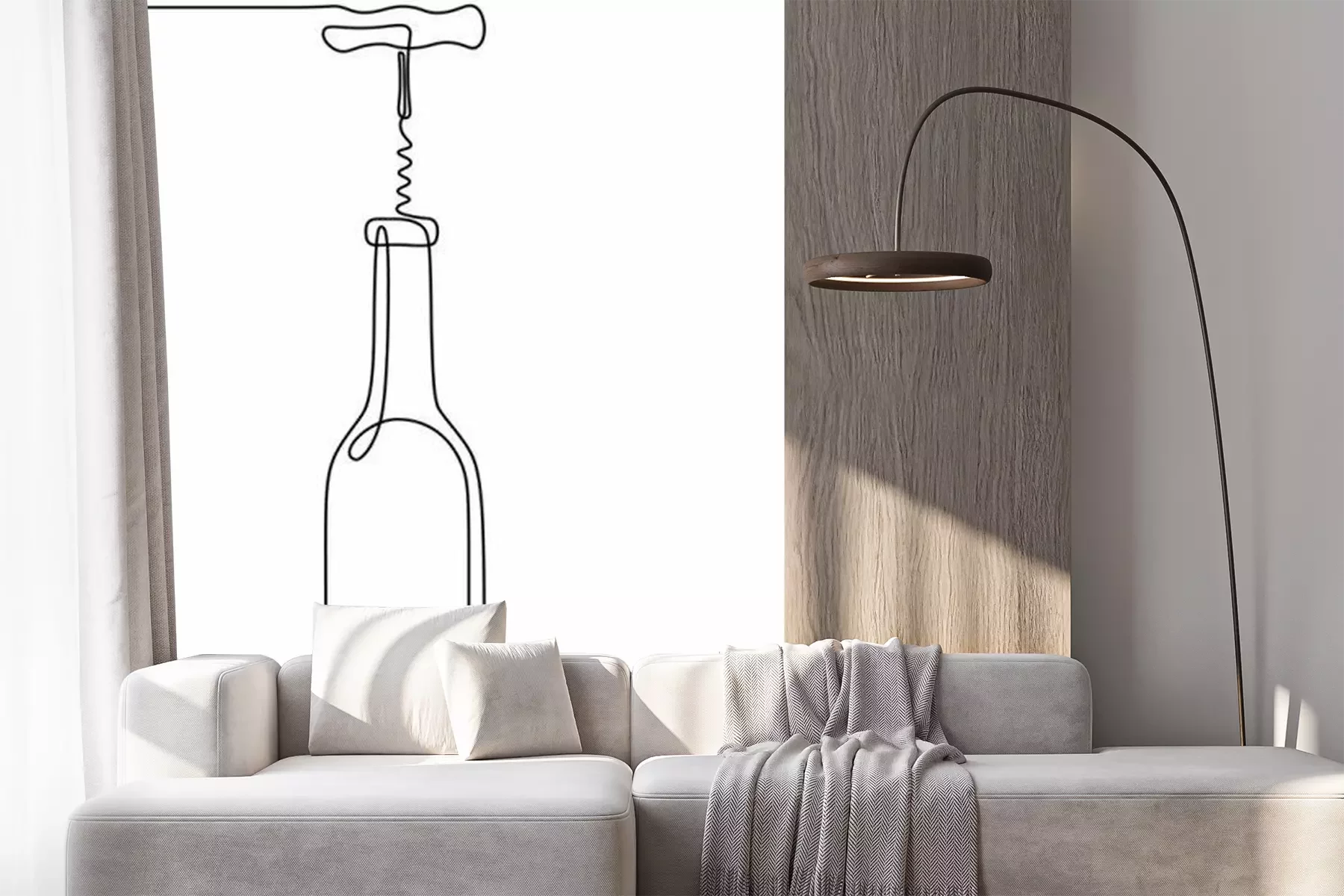 Sticker Wein mit einem Korkenzieher geöffnet mit einer einzigen Linie gemalt