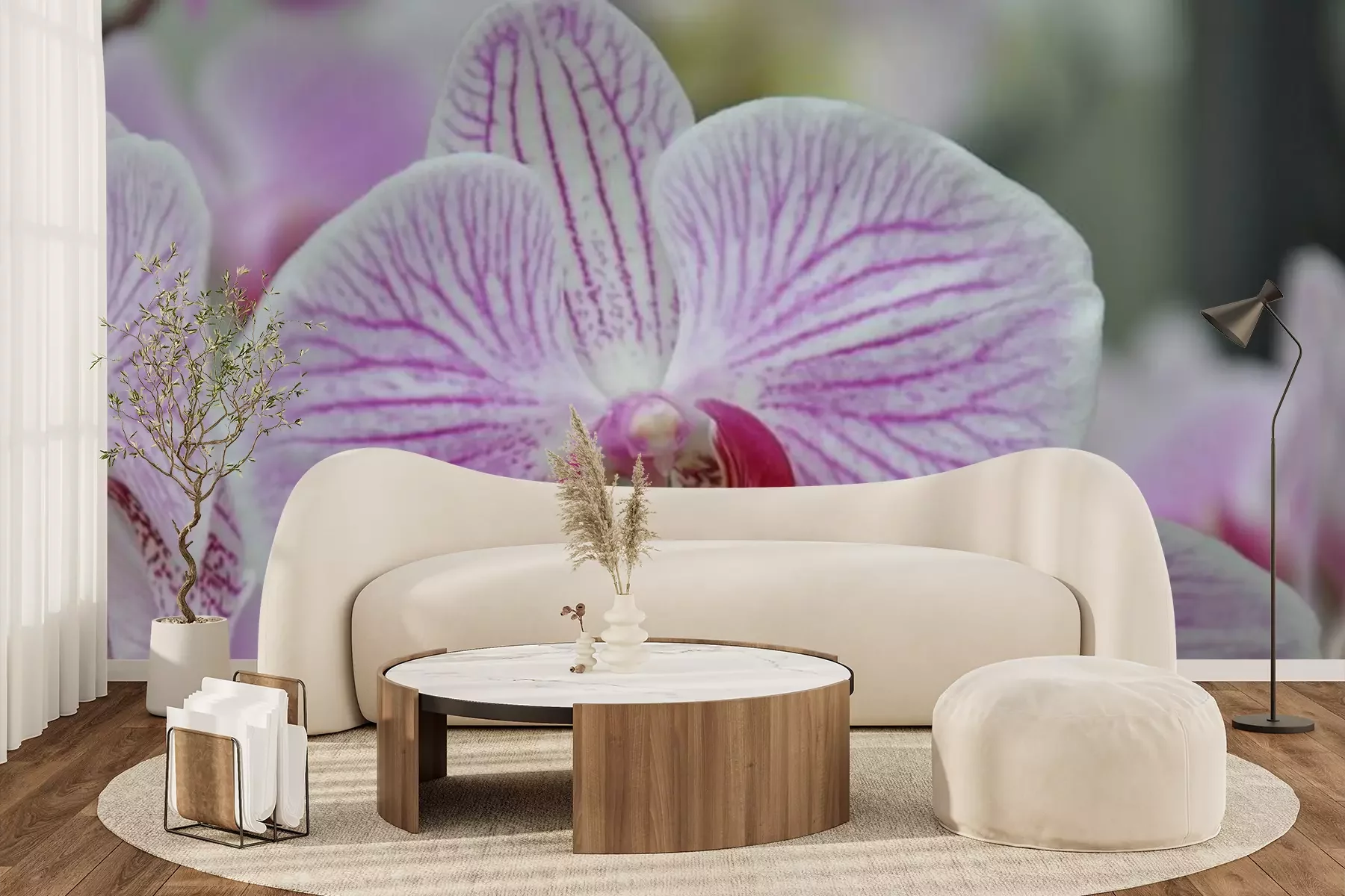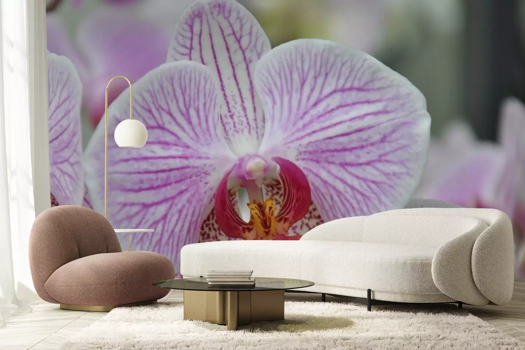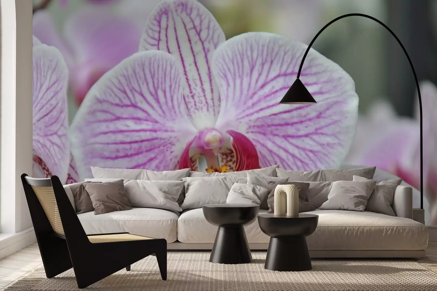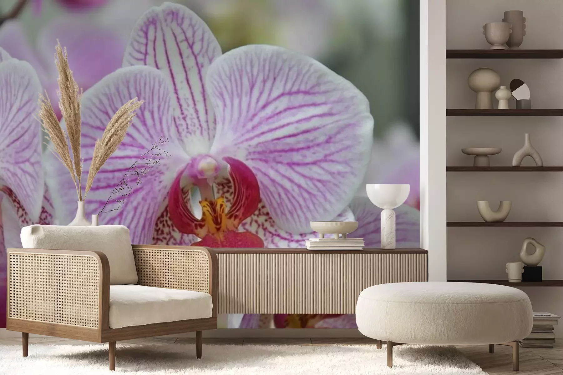 Sticker Weiß-rosa Orchidee in Nahaufnahme