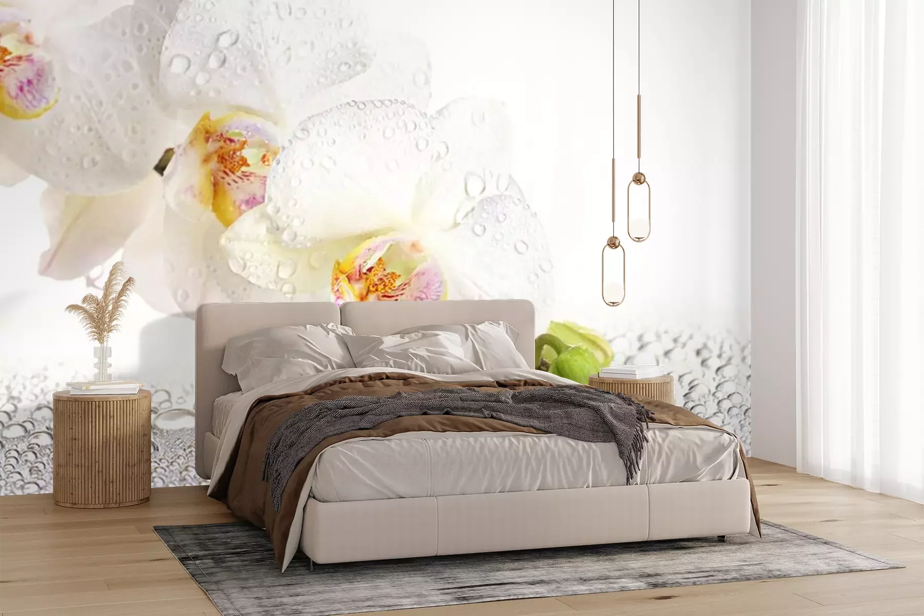 Schöne Orchideen auf WassertropfenFototapete
